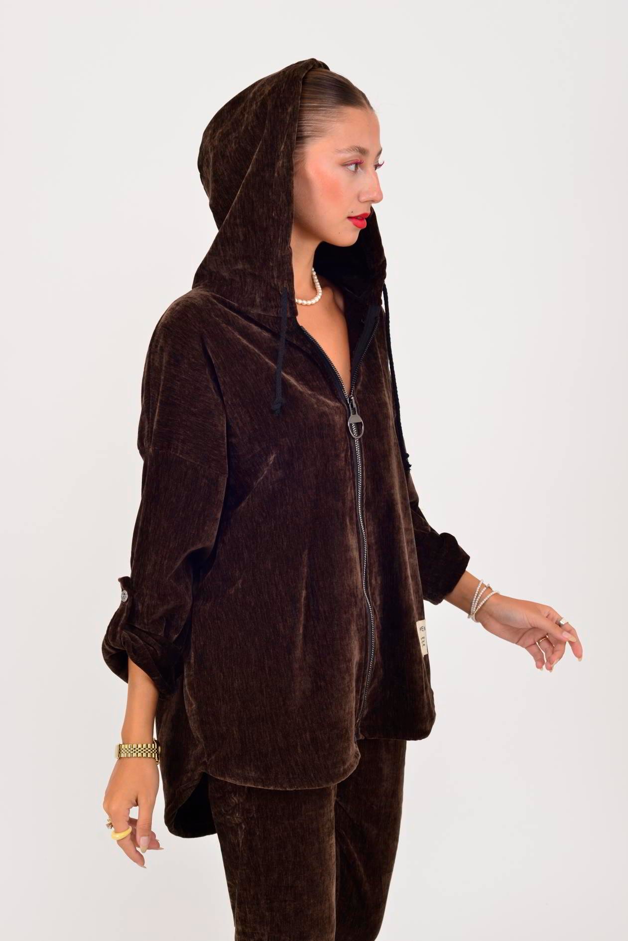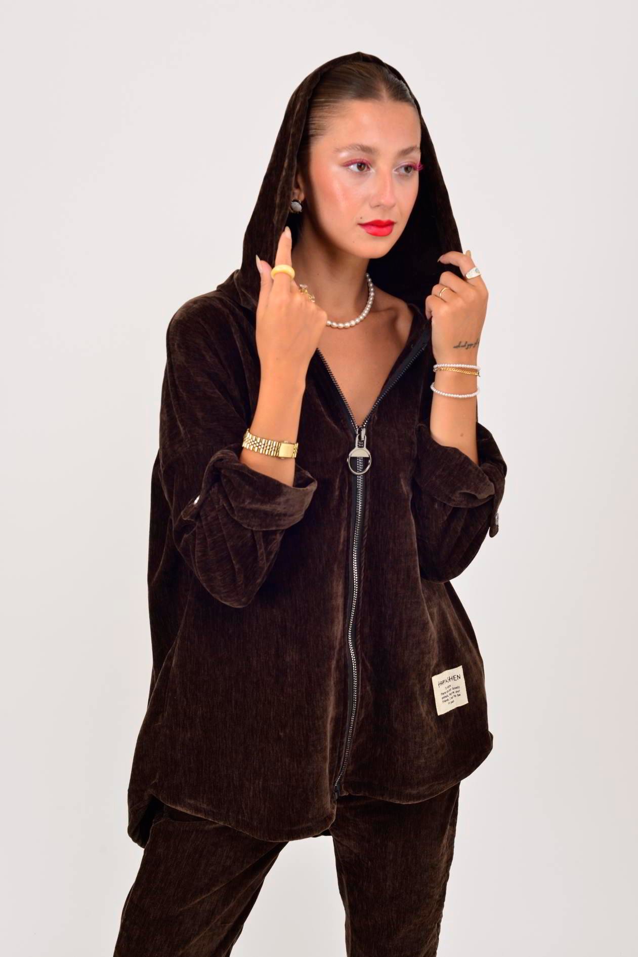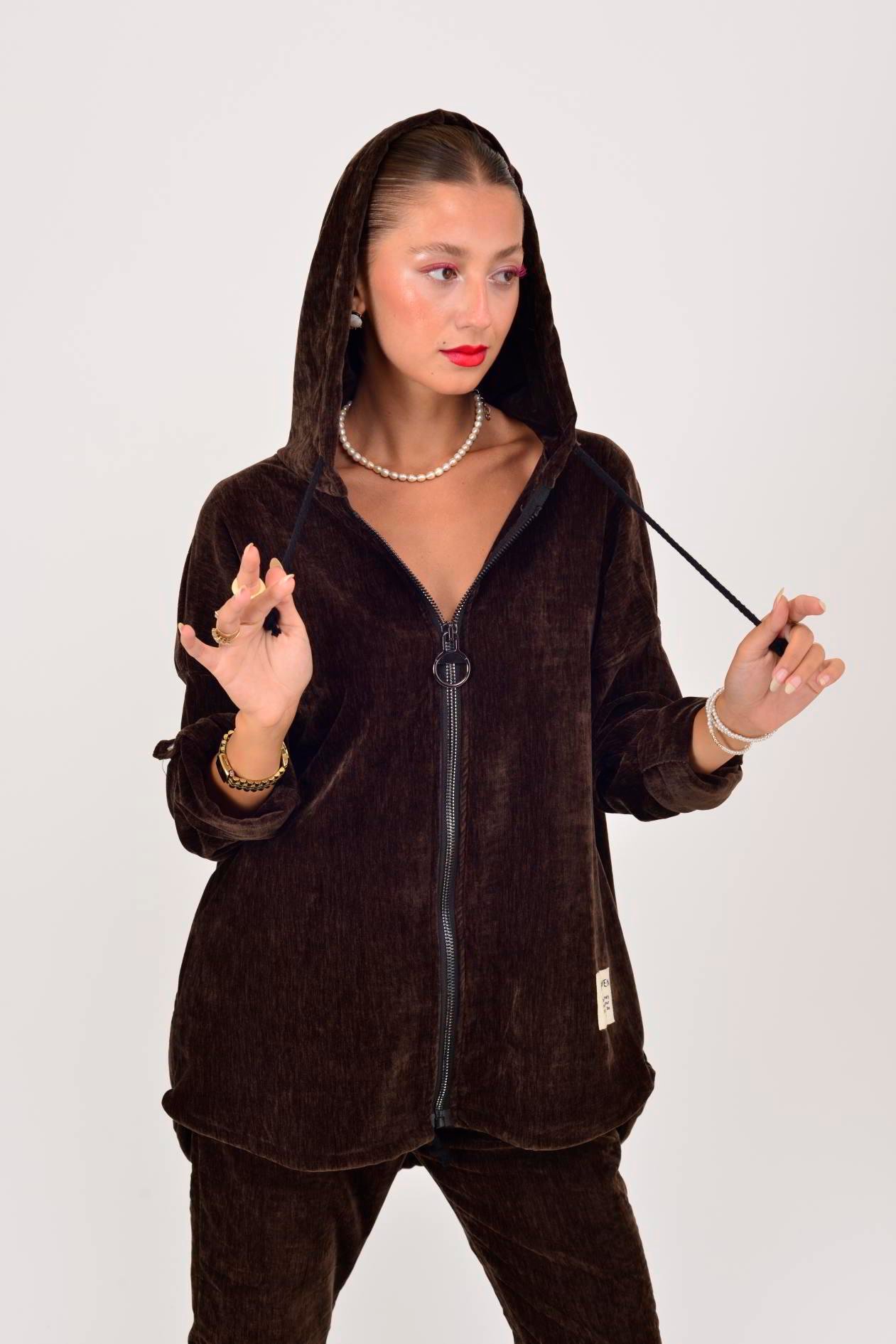 10971 KAPÜŞONLU FERMUARLI KADİFE SWEATSHIRT (25K.T.KAP.00044-005)