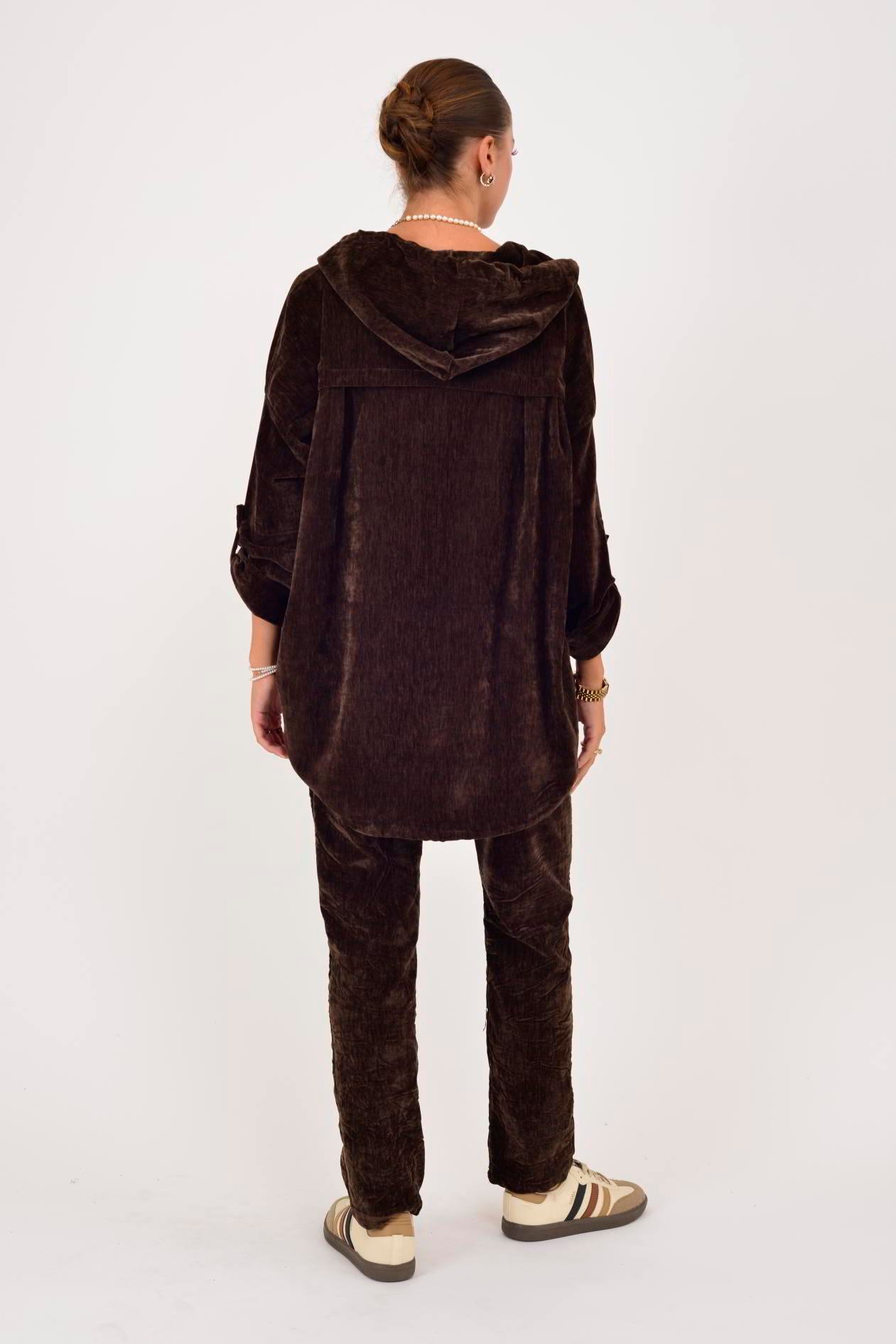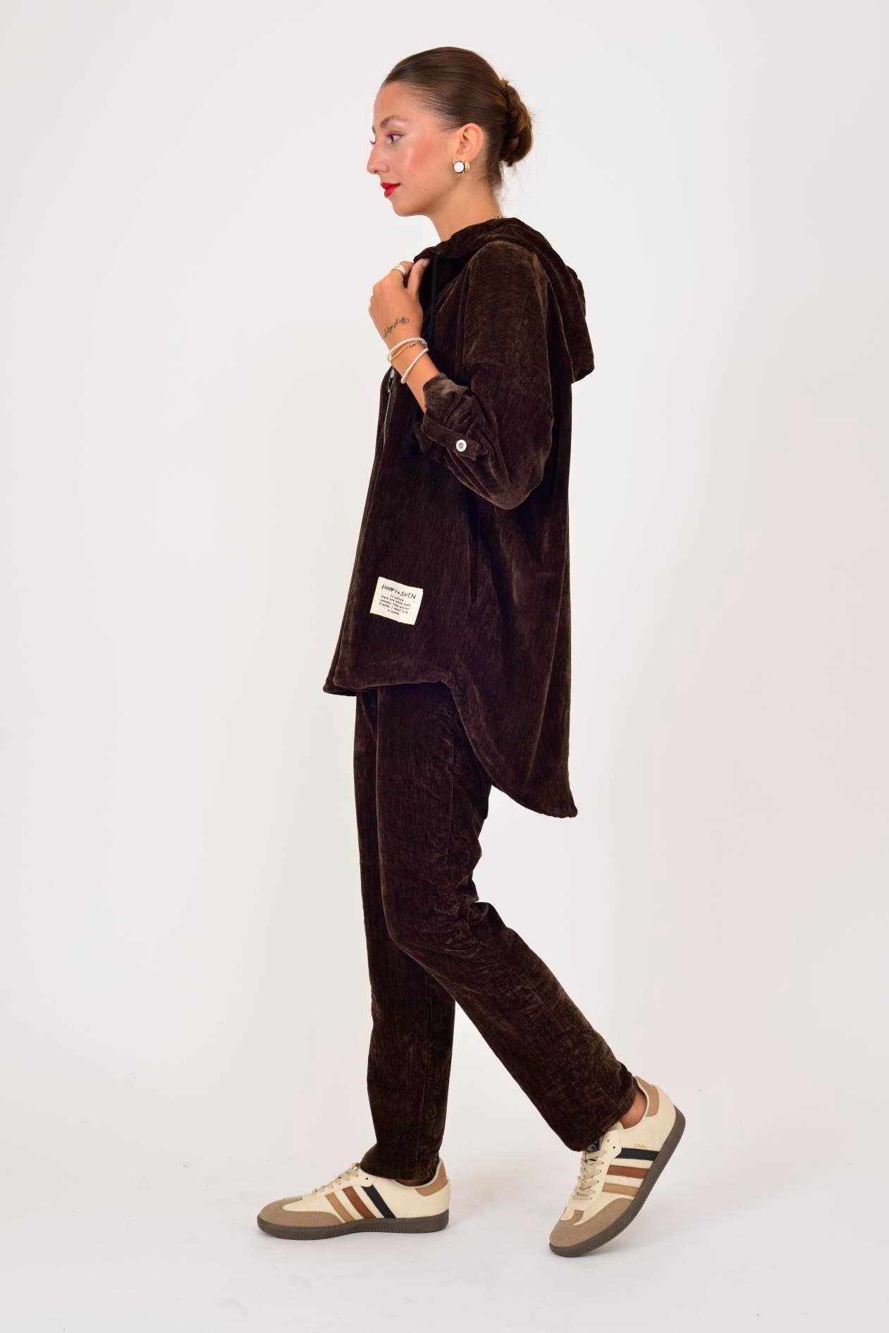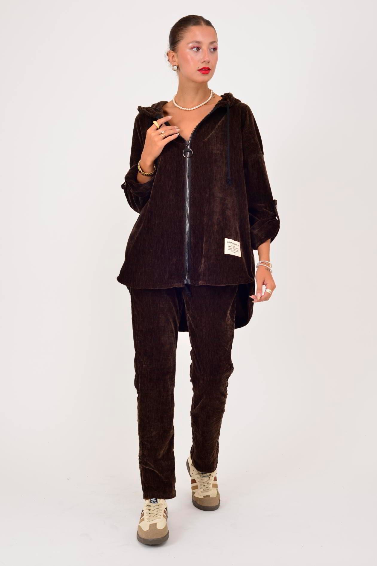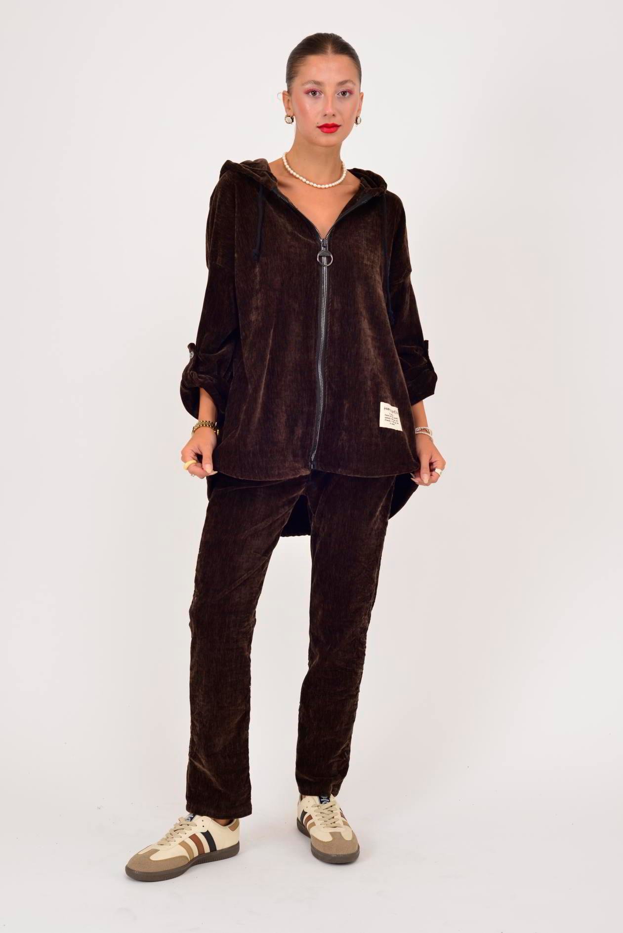 10971 KAPÜŞONLU FERMUARLI KADİFE SWEATSHIRT (25K.T.KAP.00044-005)