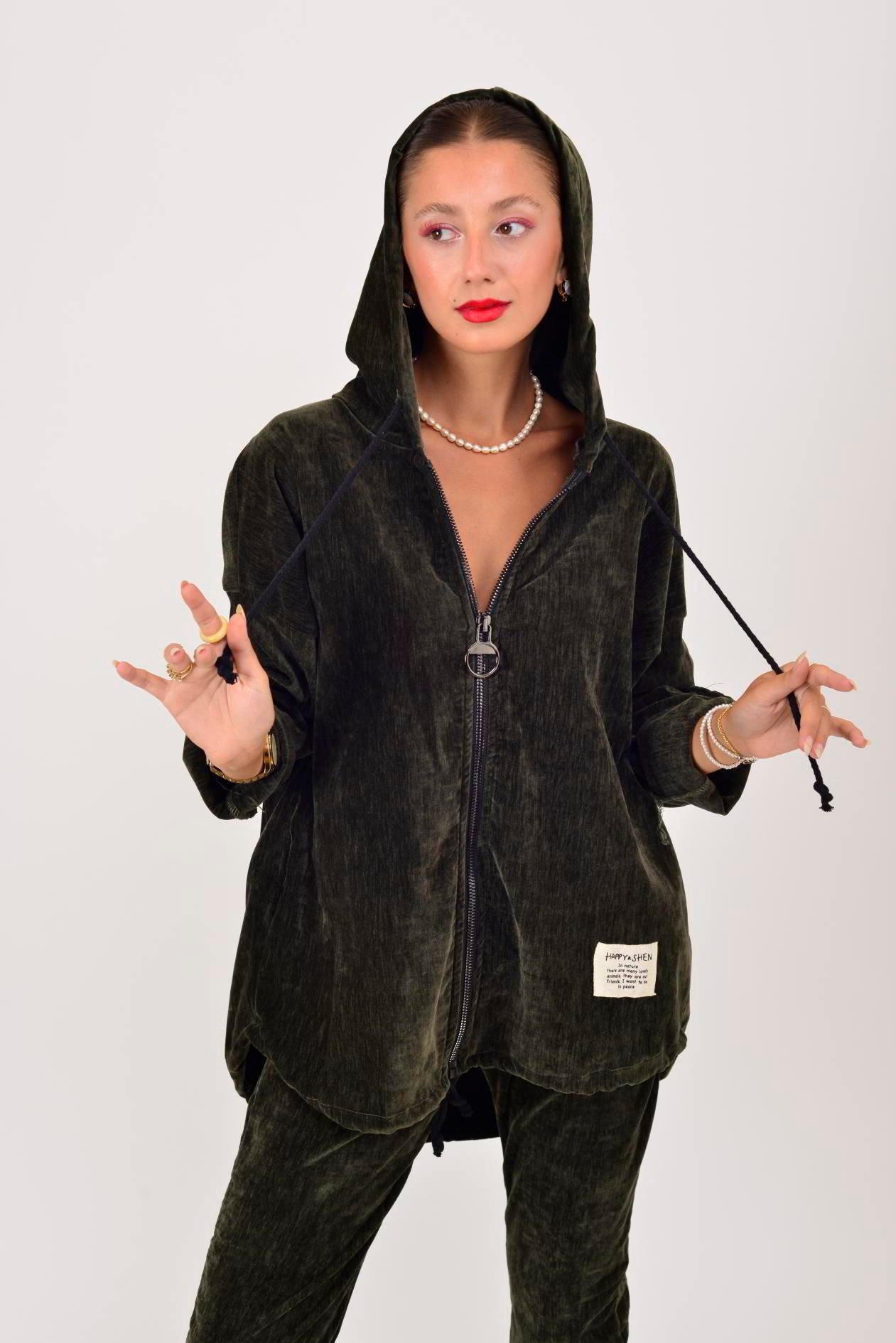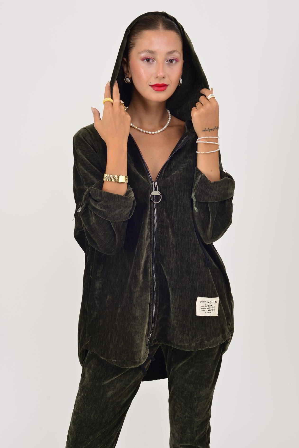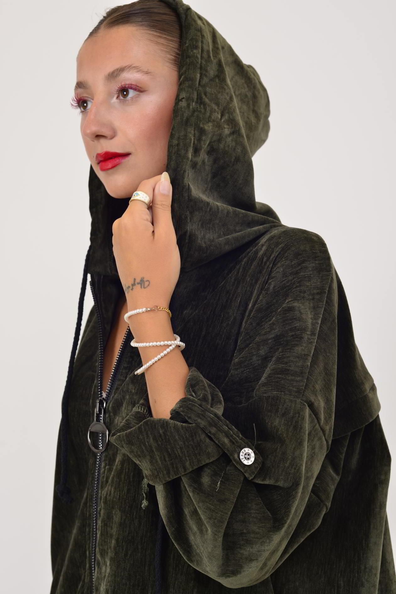 10971 KAPÜŞONLU FERMUARLI KADİFE SWEATSHIRT (25K.T.KAP.00044-020)
