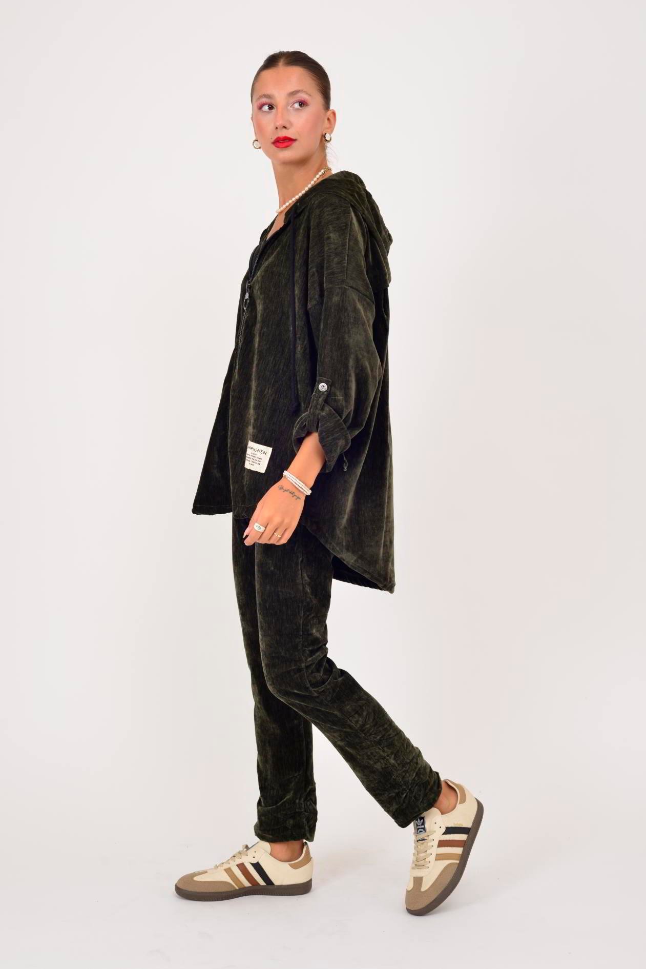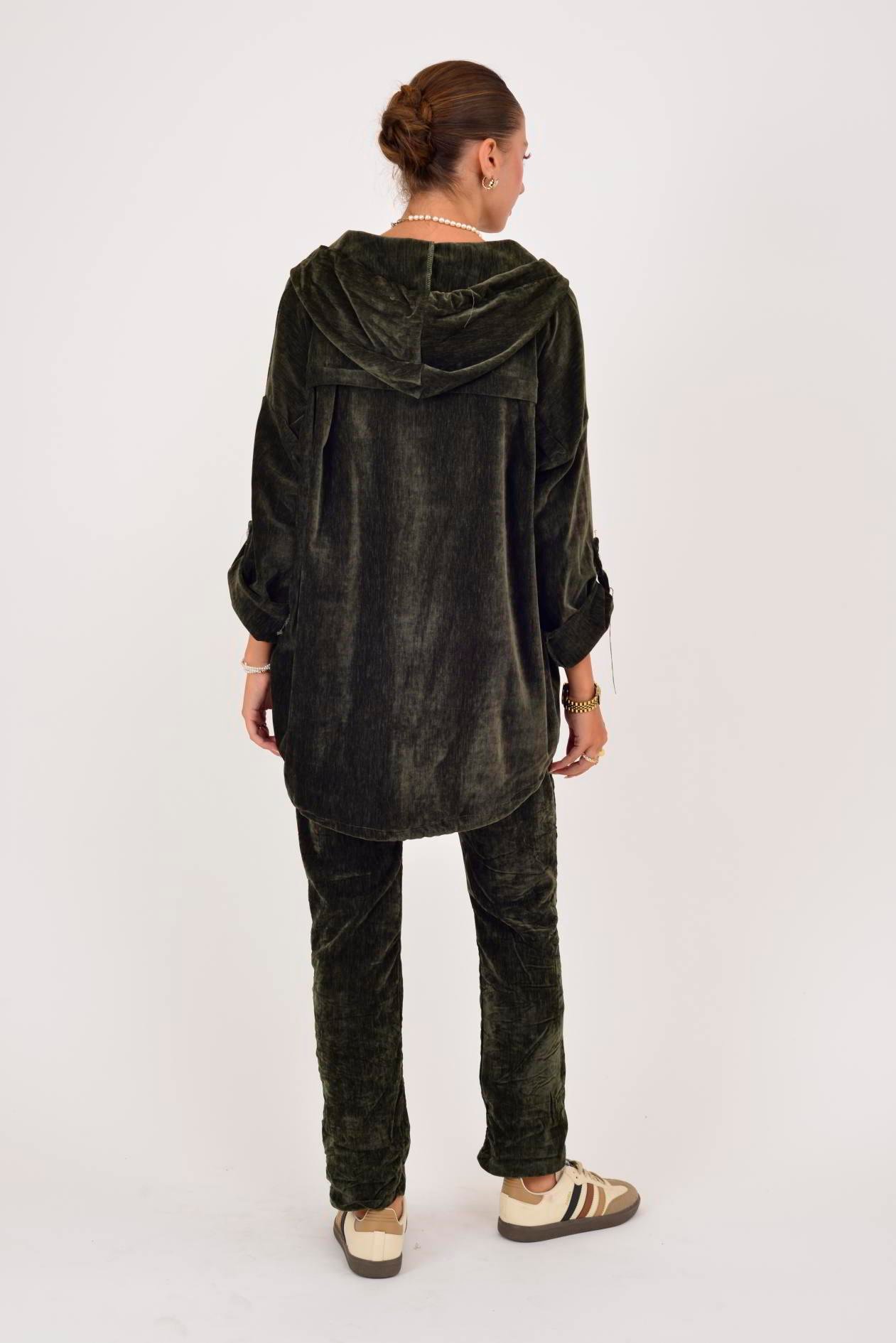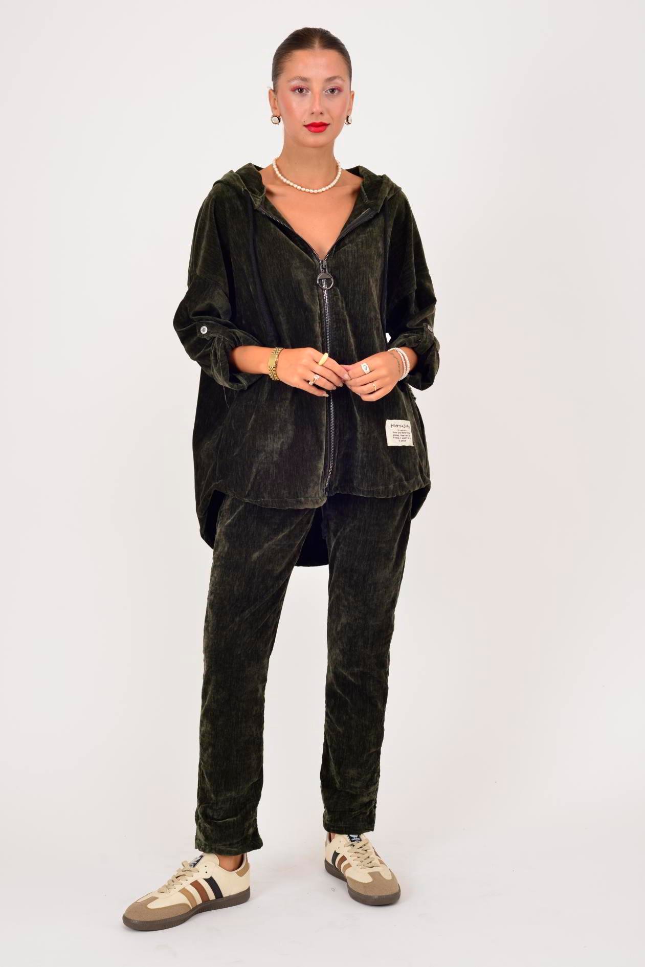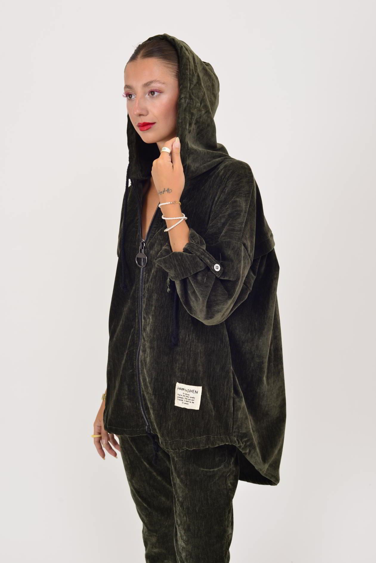 10971 KAPÜŞONLU FERMUARLI KADİFE SWEATSHIRT (25K.T.KAP.00044-020)