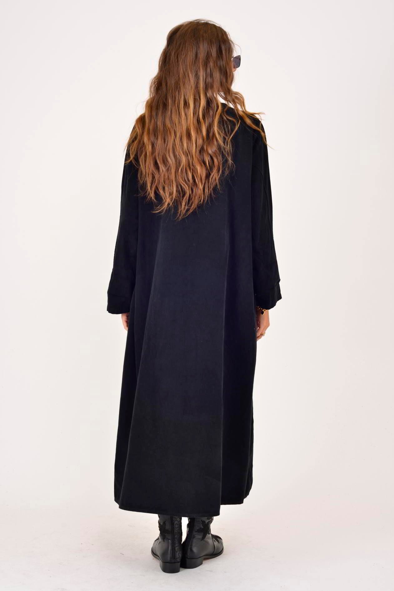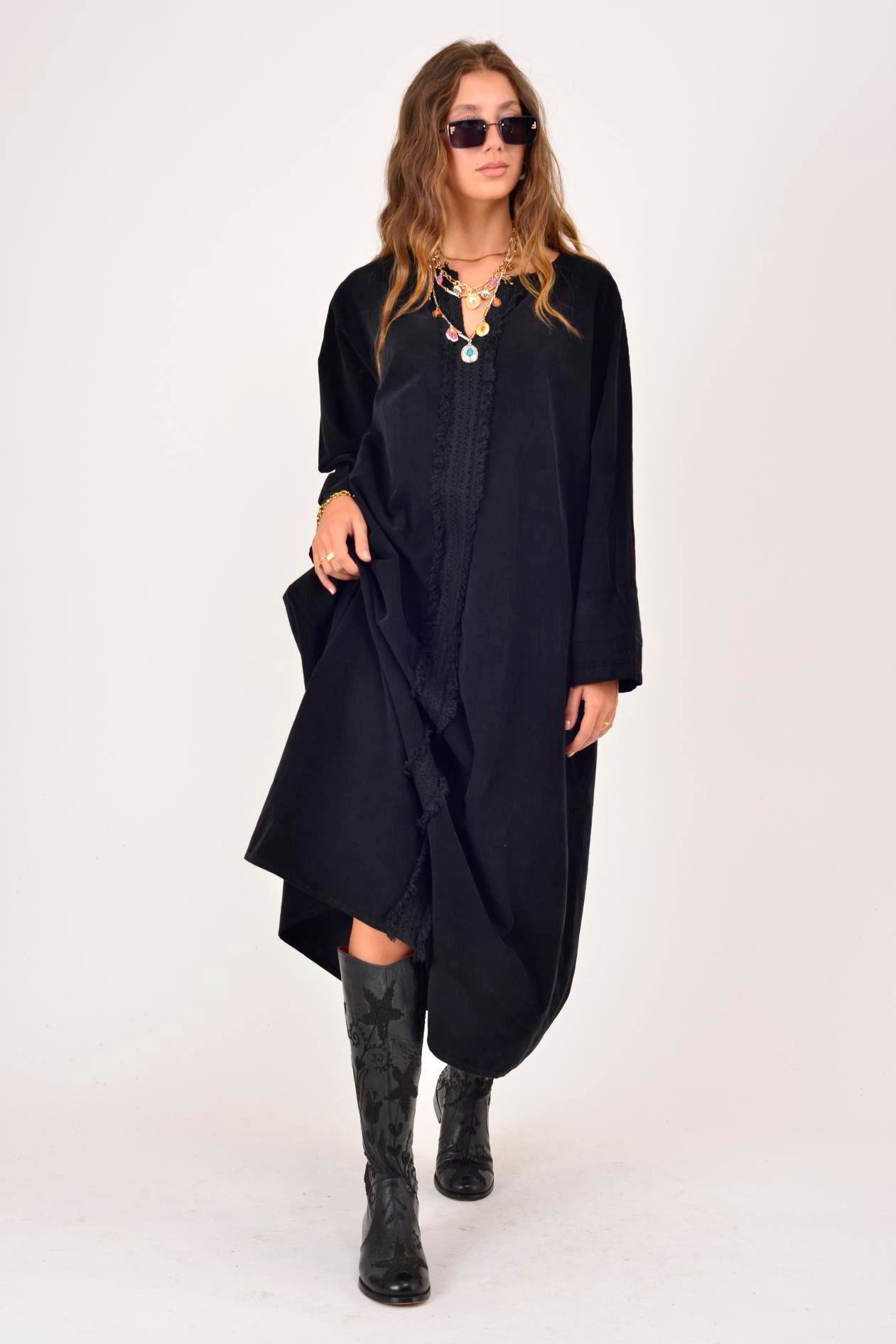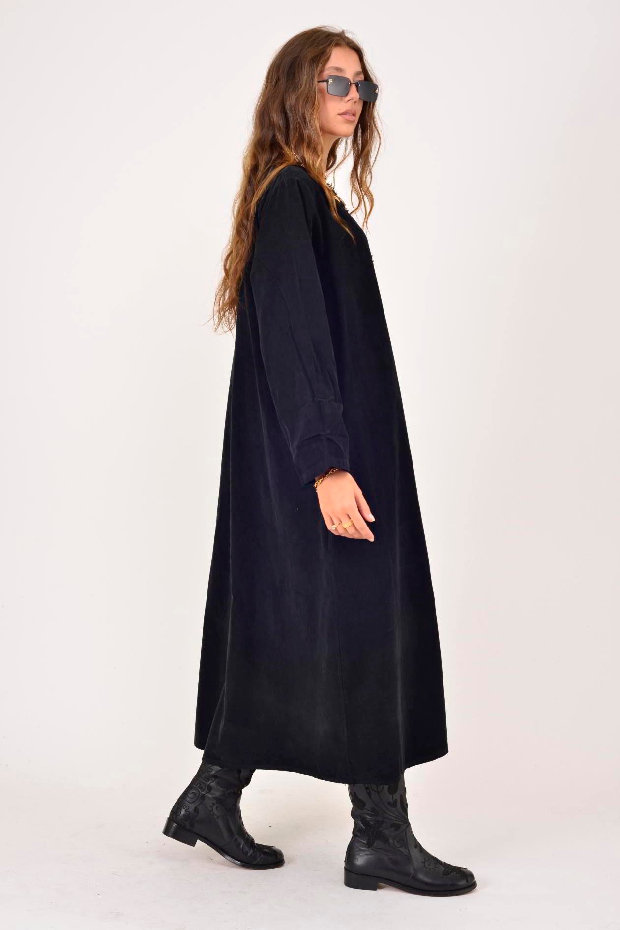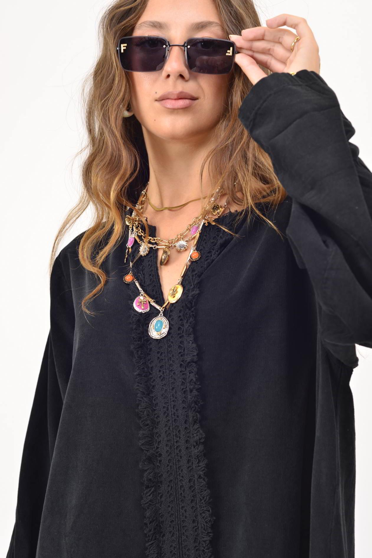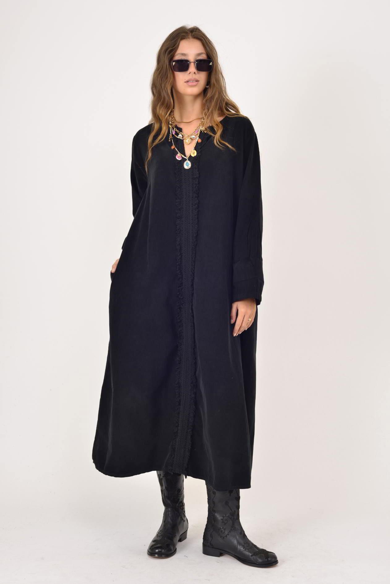 11393 LOVA SAÇAK DETAYLI V YAKA FİTİLLİ ELBİSE (25K.T.ELB.00034-001)