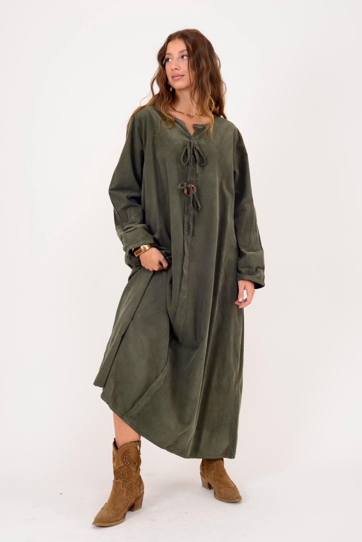 11411 LOVA DÜĞME DETAYLI FİTİLLİ ELBİSE (25K.T.ELB.00031-020)