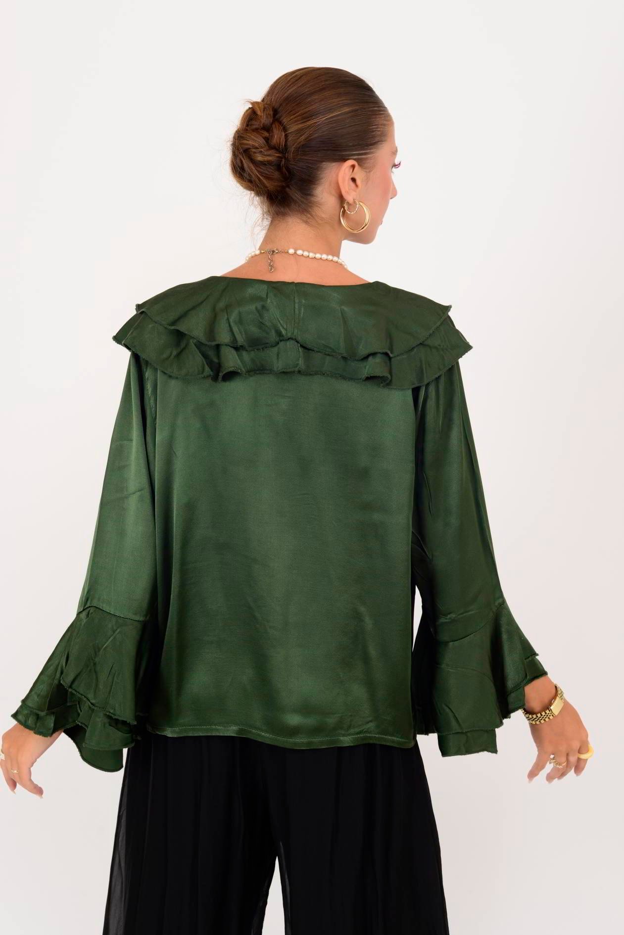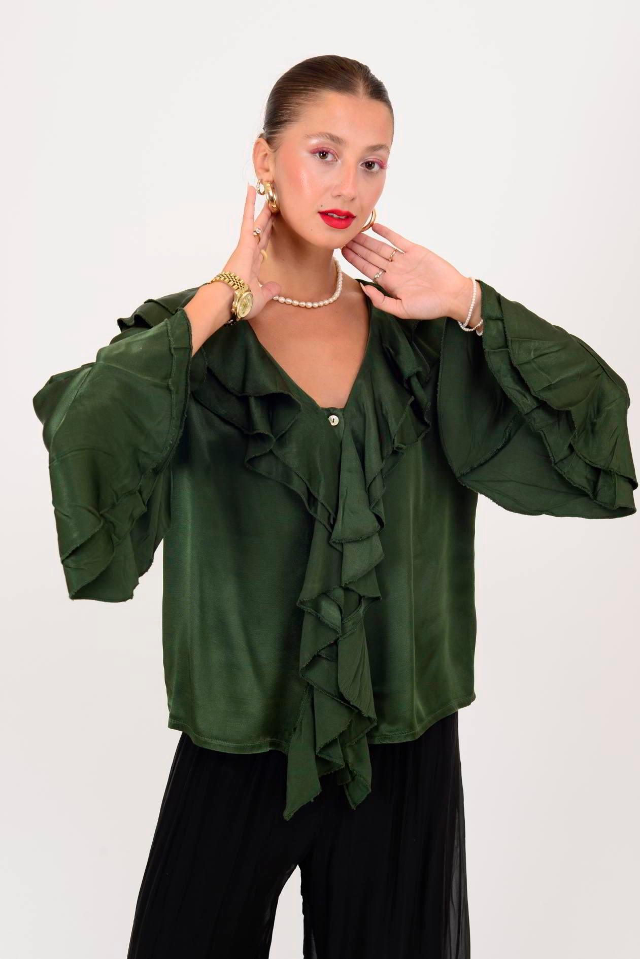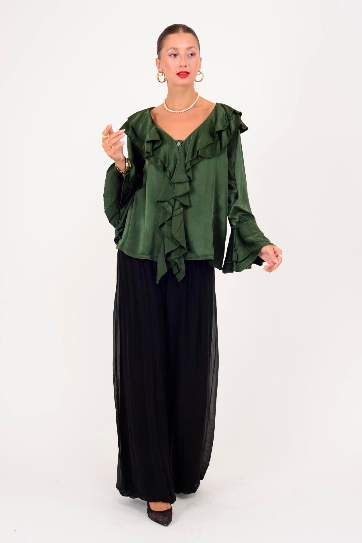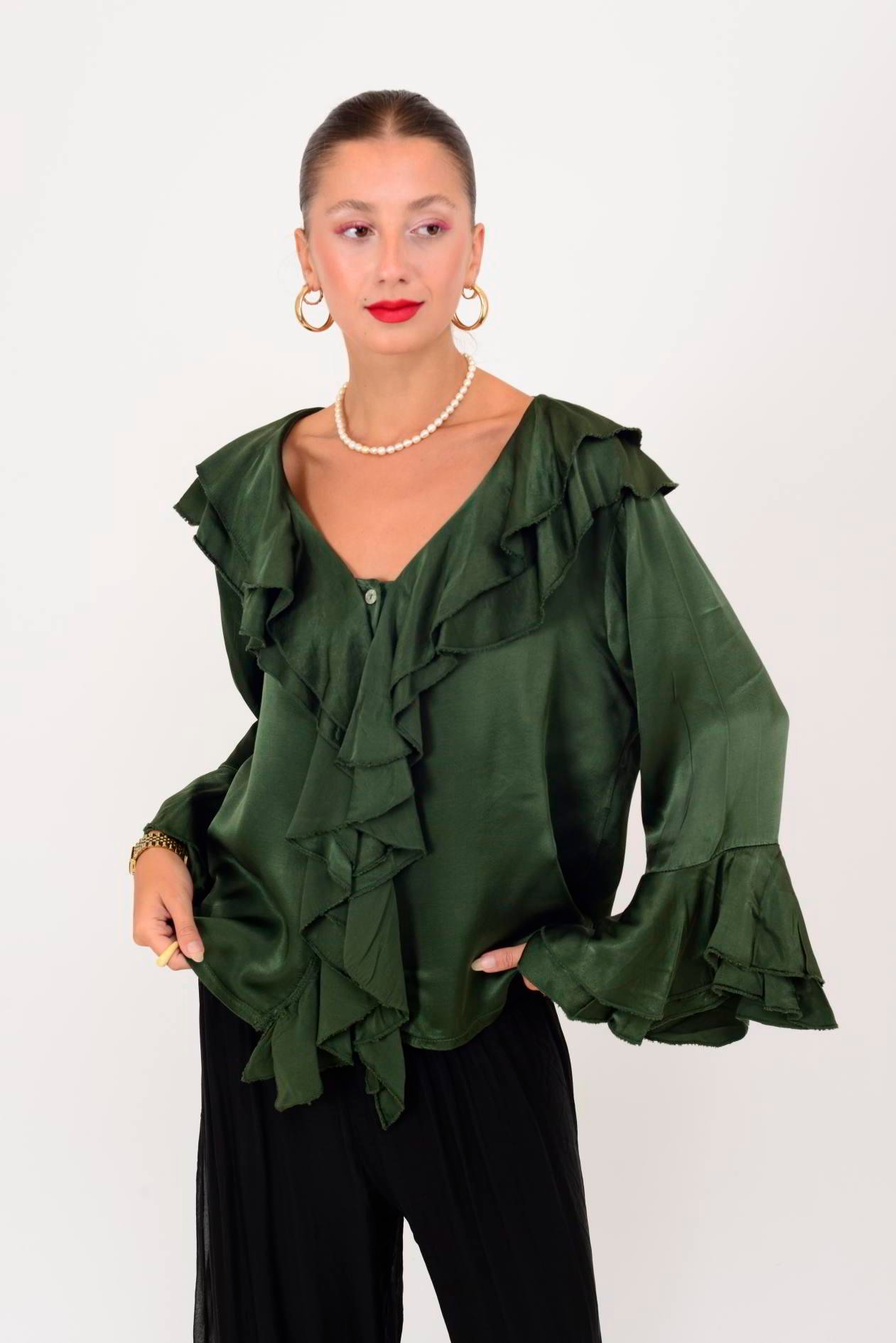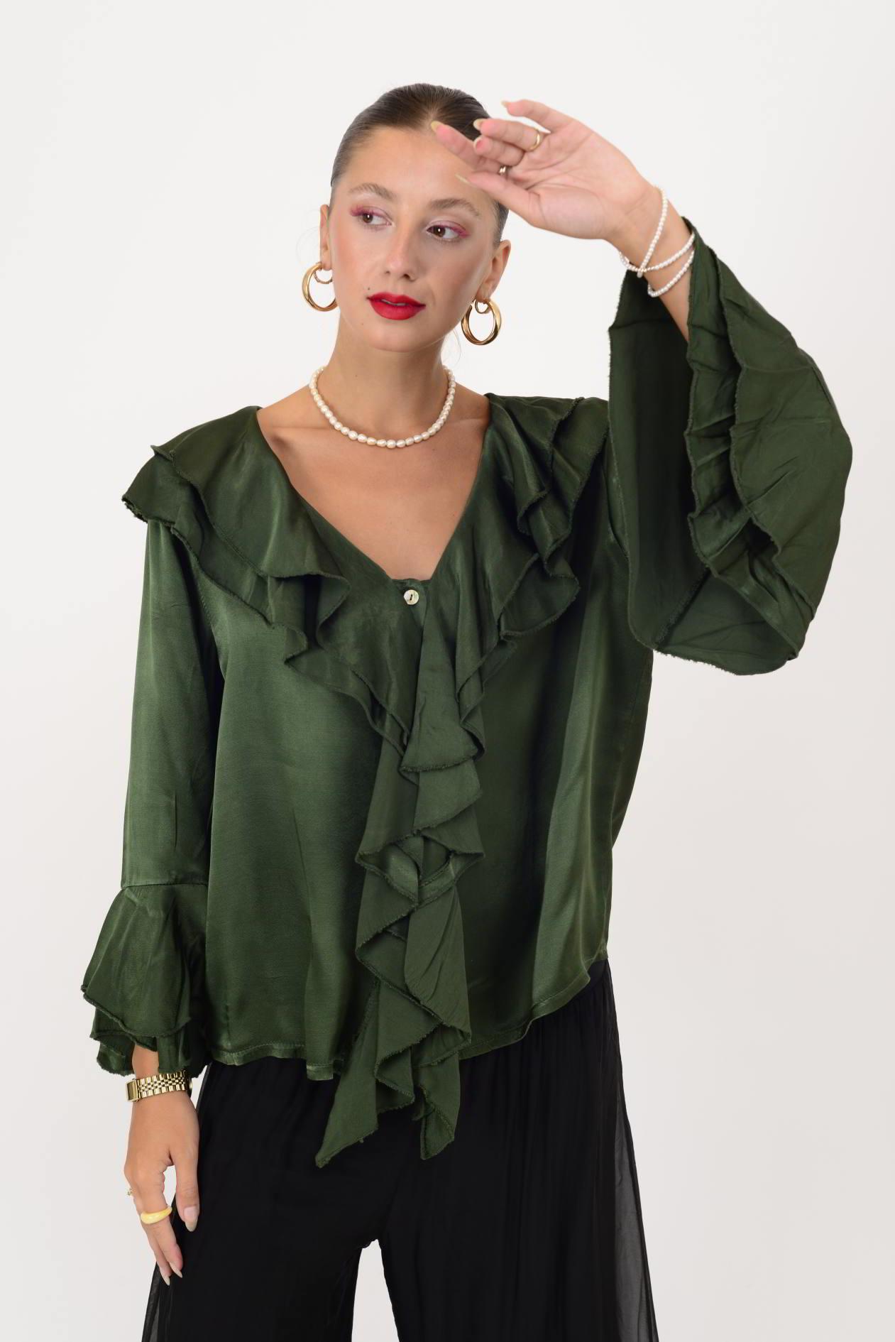 12186 COSTELLO VOLAN DETAYLI DÜĞMELİ SATEN BLUZ (25K.T.BLZ.00202-0ZY)