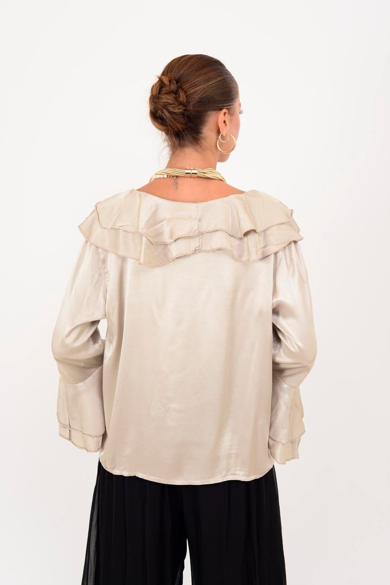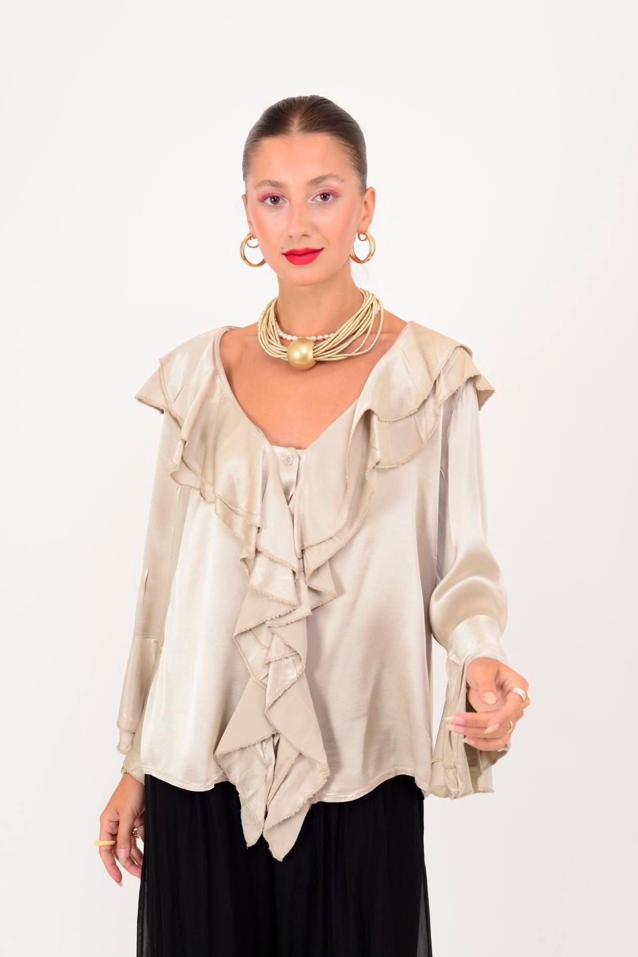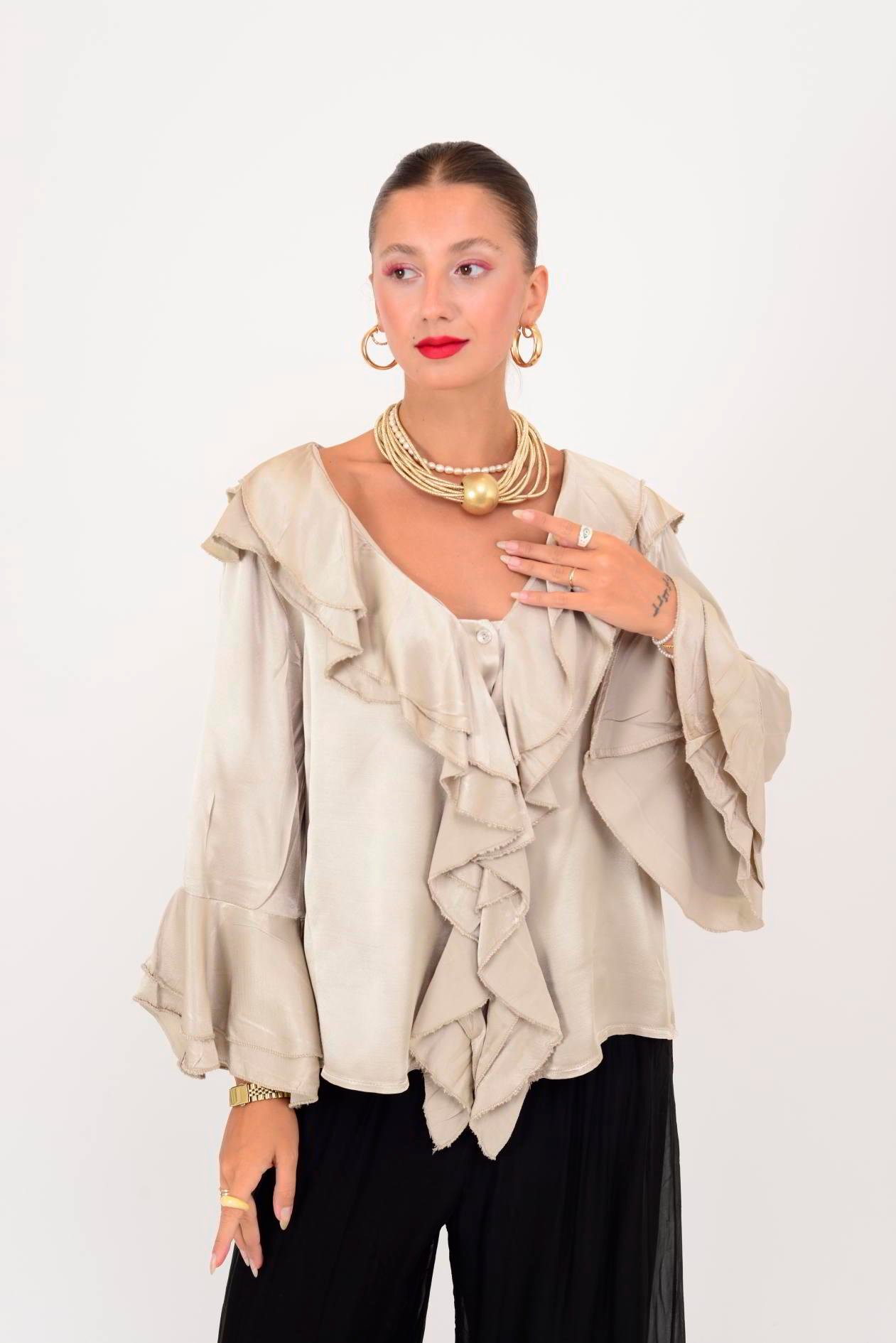12186 COSTELLO VOLAN DETAYLI DÜĞMELİ SATEN BLUZ (25K.T.BLZ.00202-31)