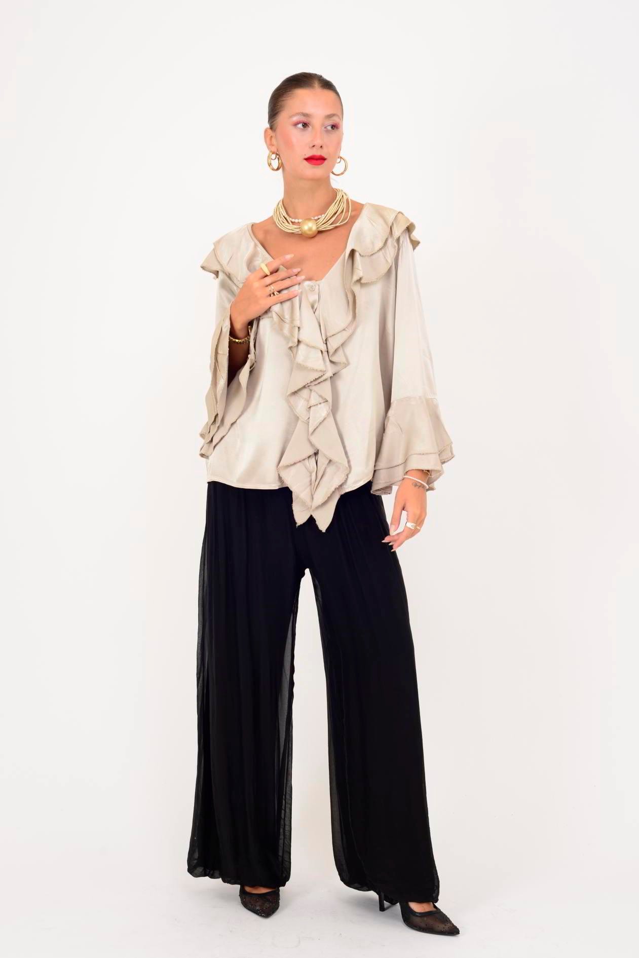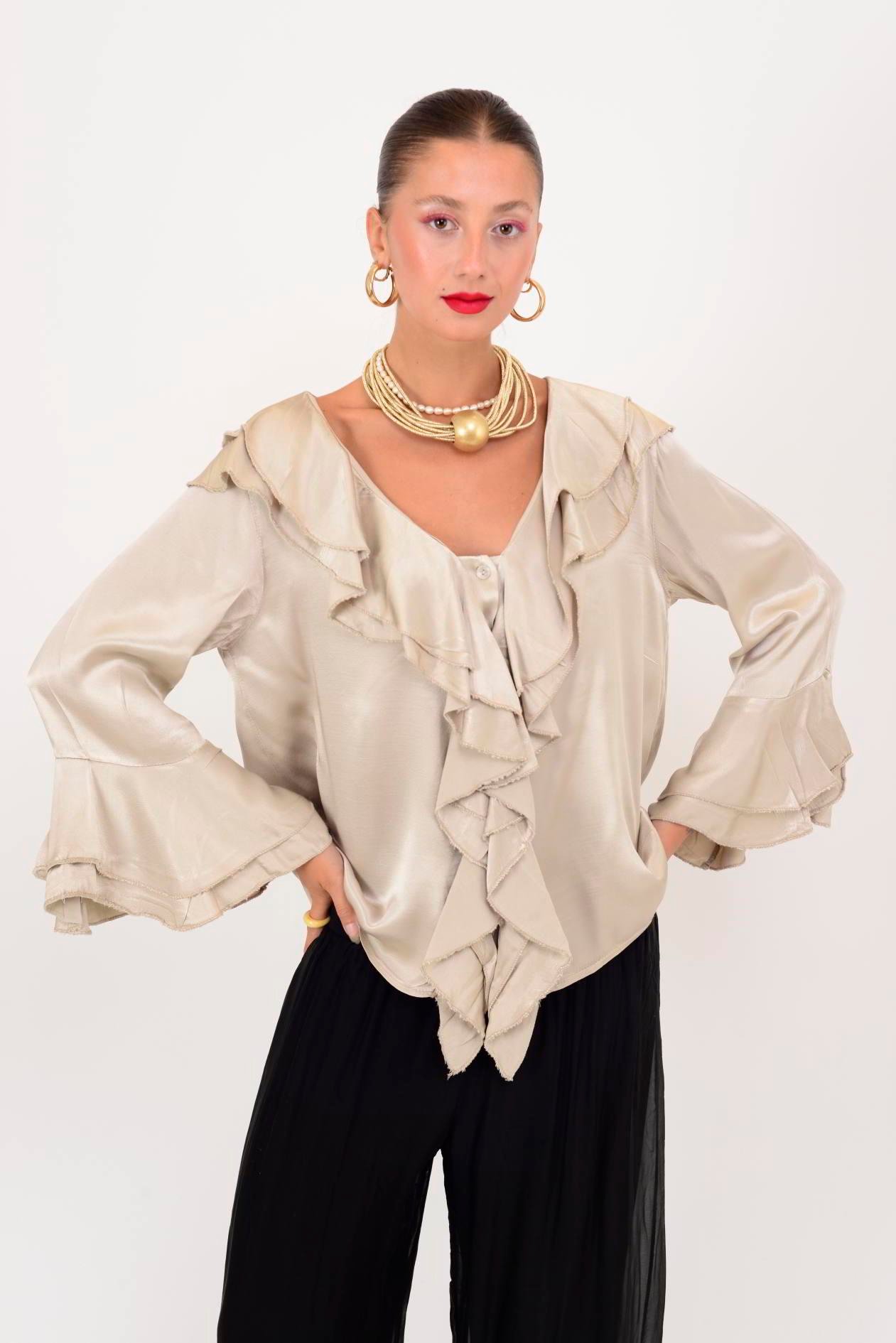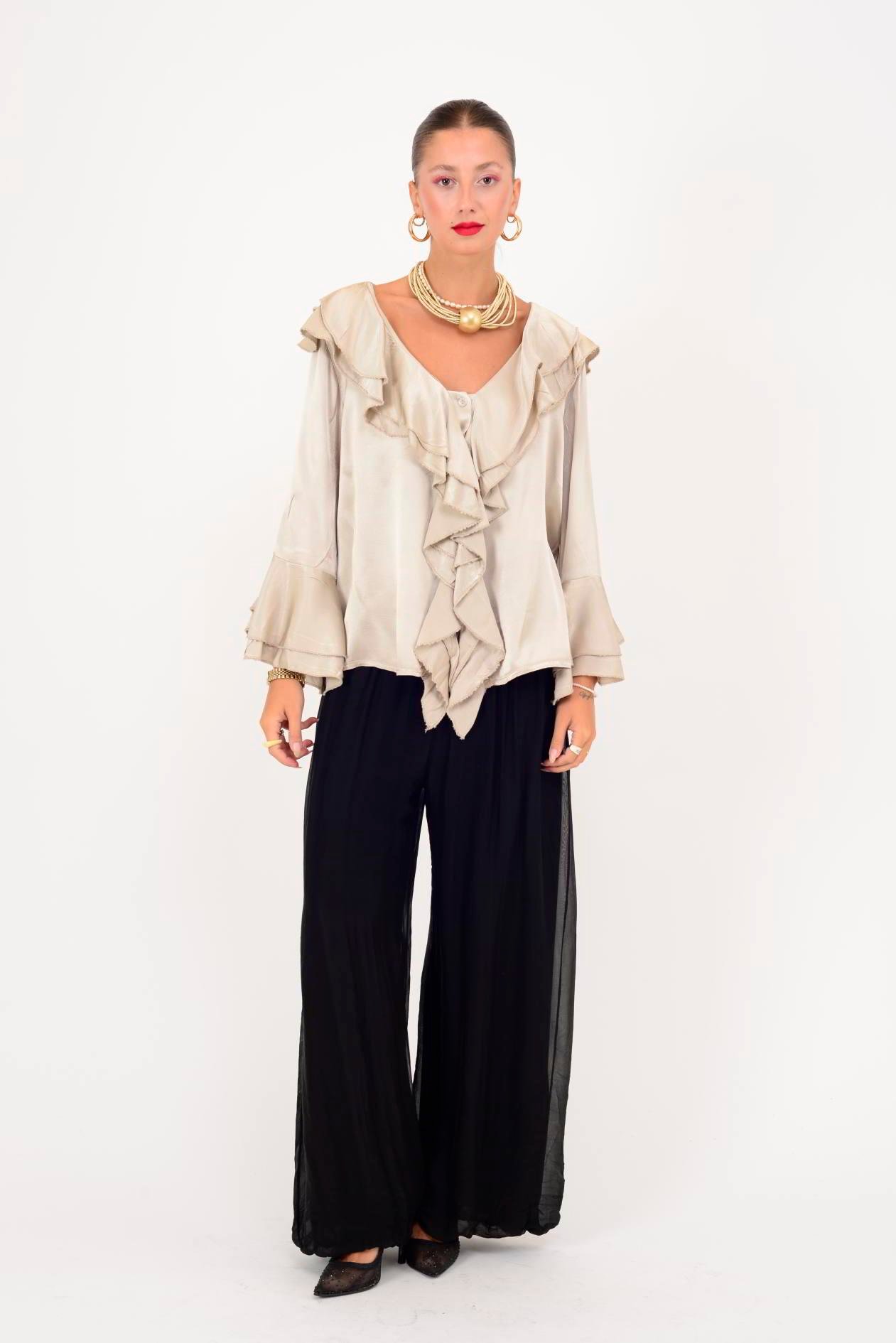 12186 COSTELLO VOLAN DETAYLI DÜĞMELİ SATEN BLUZ (25K.T.BLZ.00202-31)