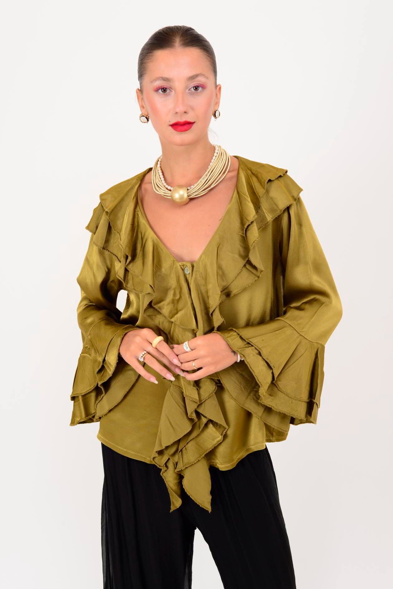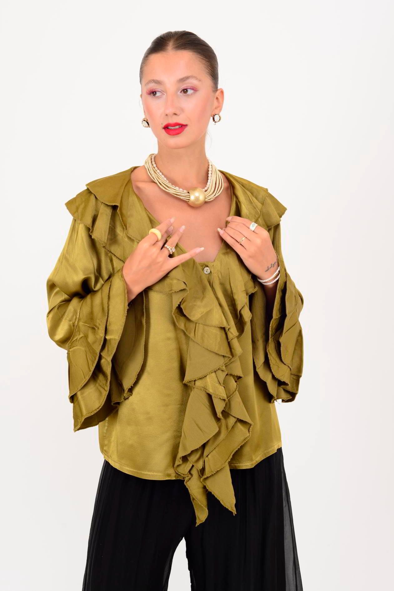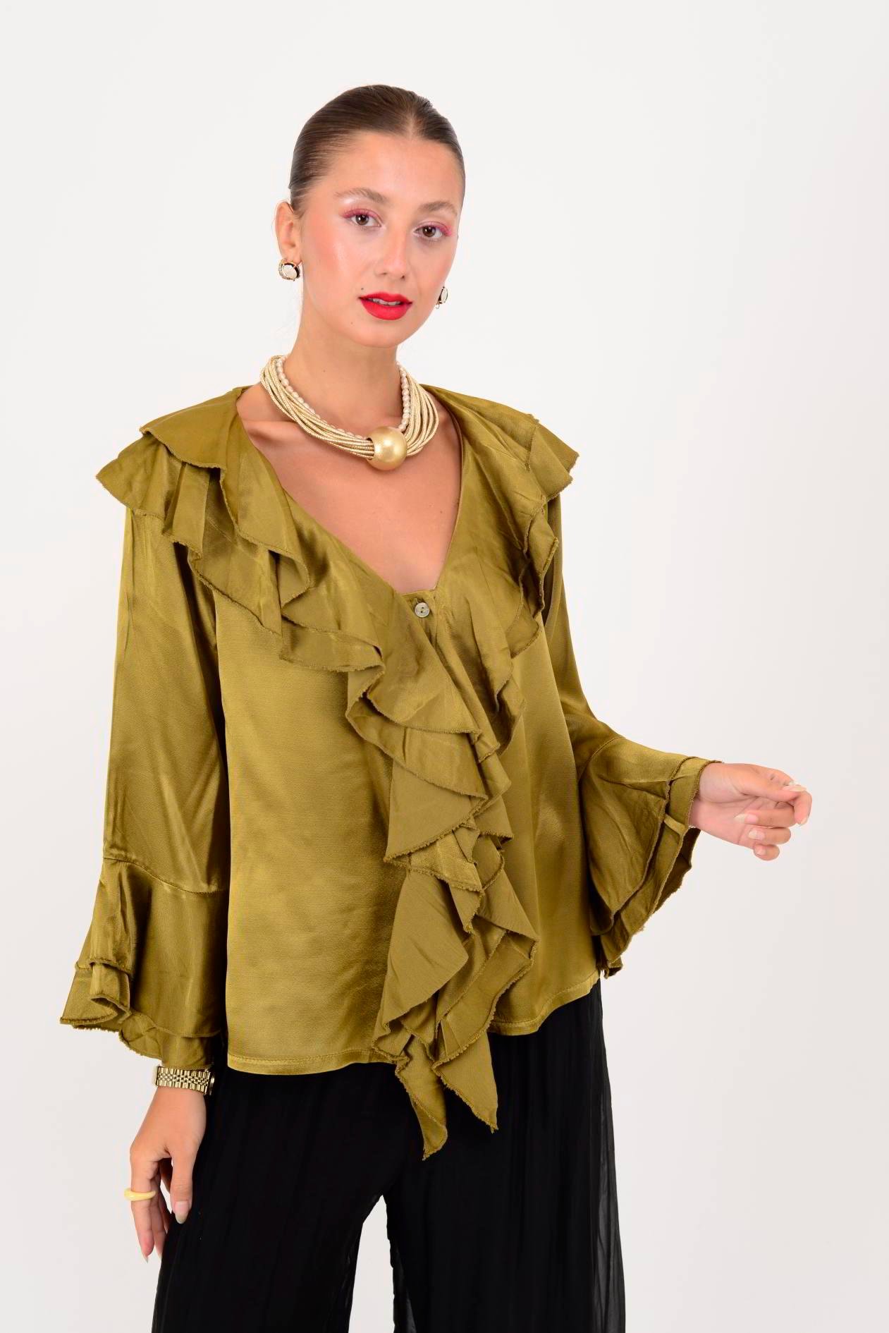 12186 COSTELLO VOLAN DETAYLI DÜĞMELİ SATEN BLUZ (25K.T.BLZ.00202-47)