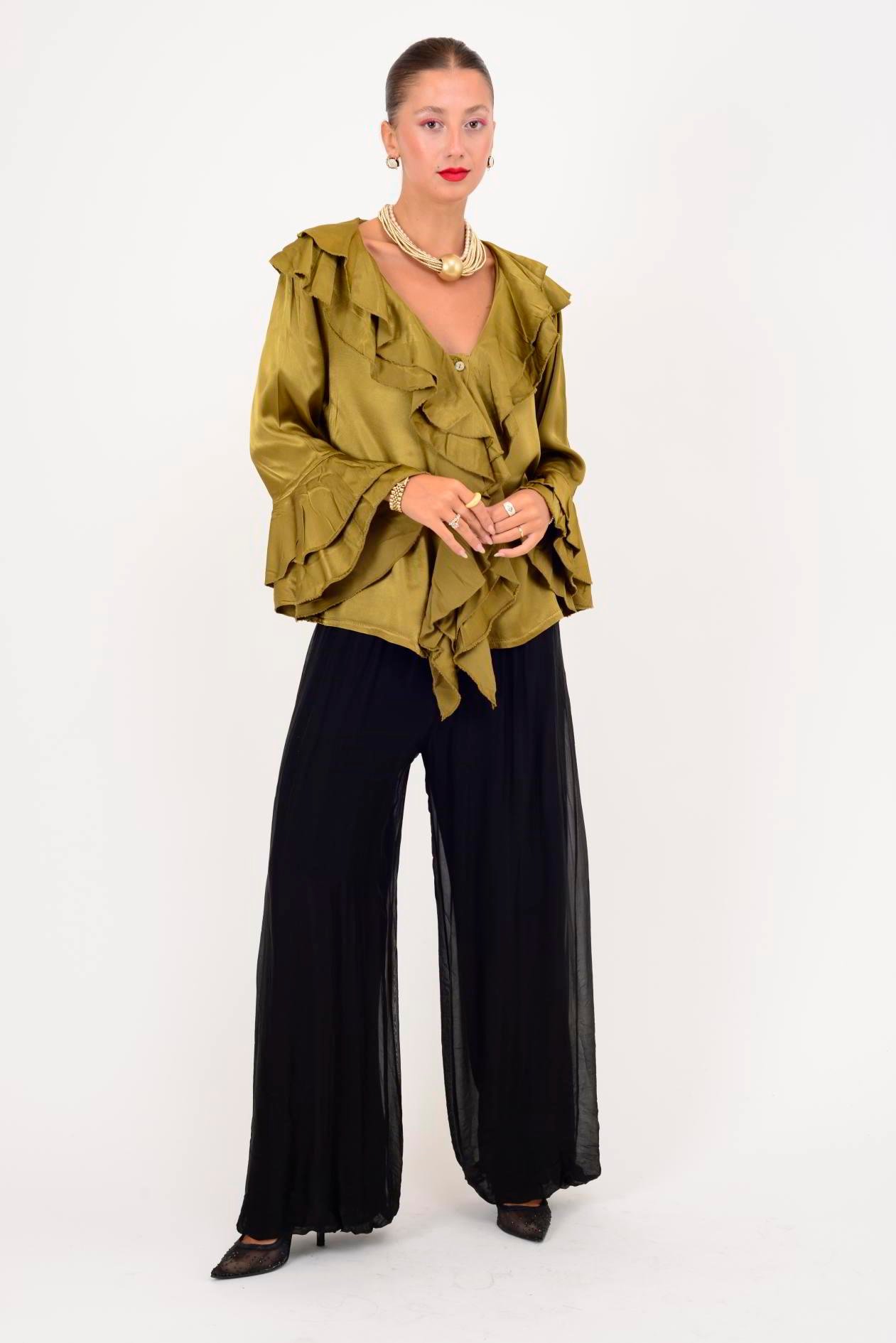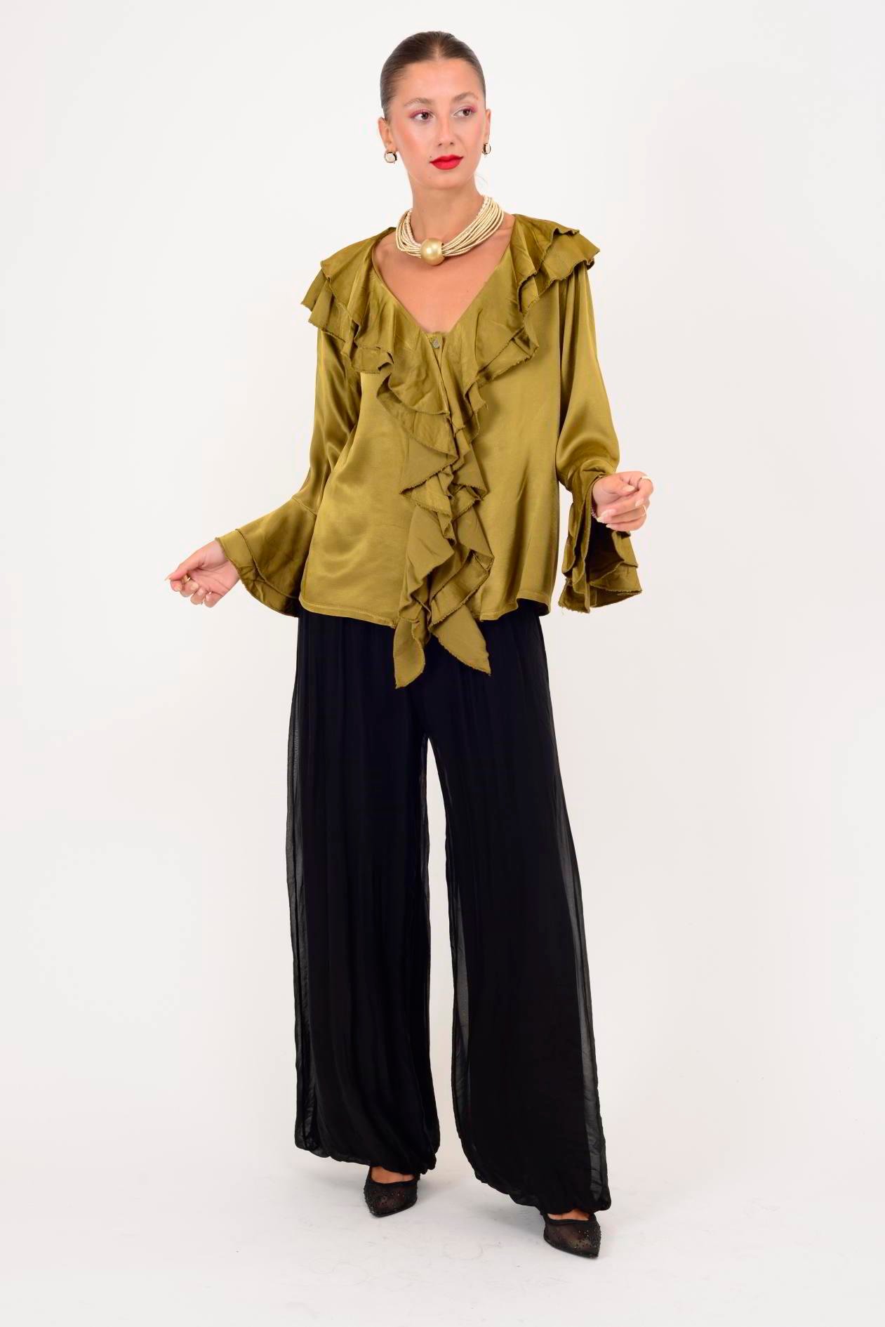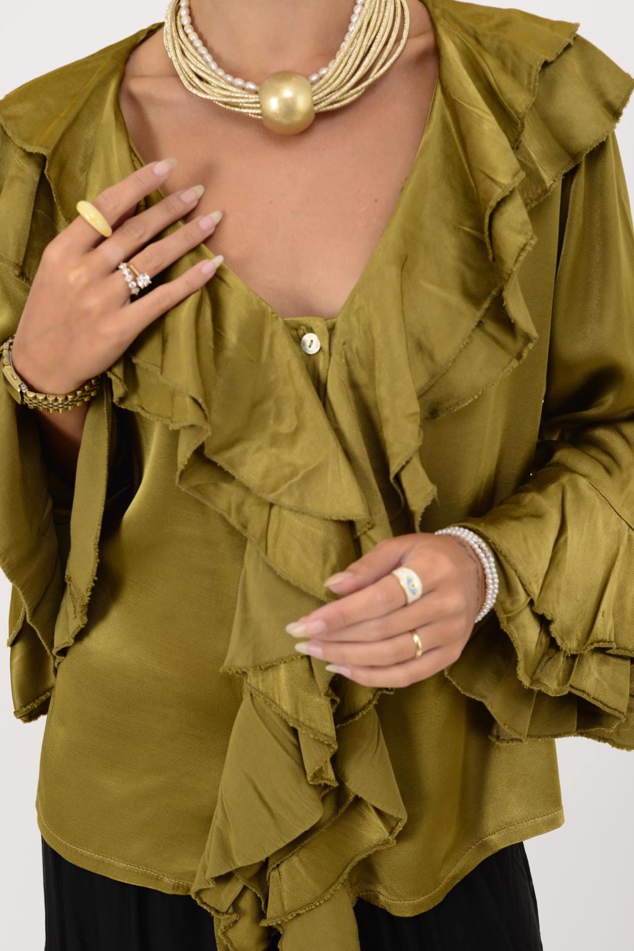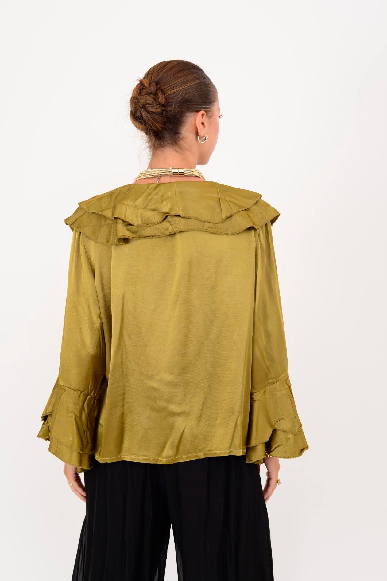 12186 COSTELLO VOLAN DETAYLI DÜĞMELİ SATEN BLUZ (25K.T.BLZ.00202-47)
