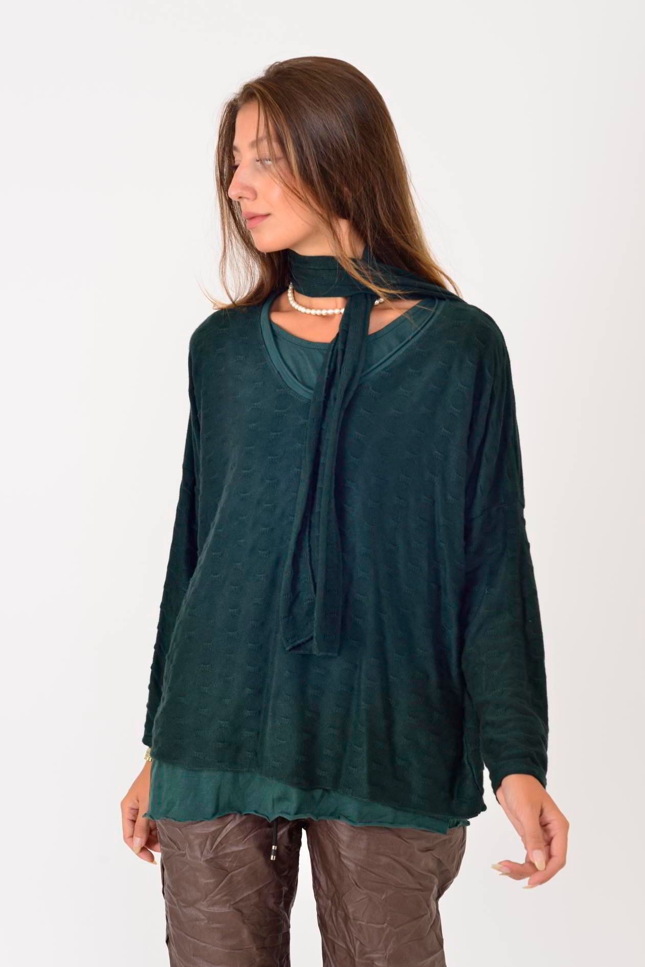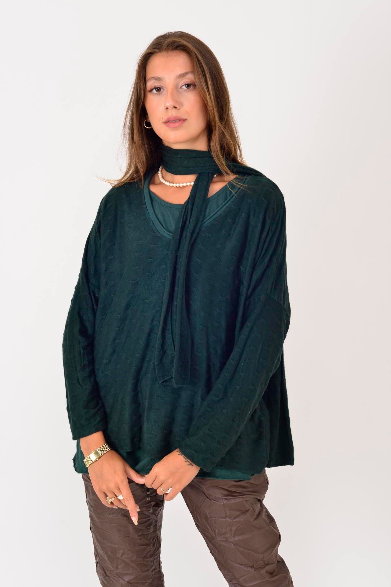 20406 KABARTMA DETAYLI FULARLI 2'Lİ BLUZ (25K.T.BLZ.00065-0ZY)