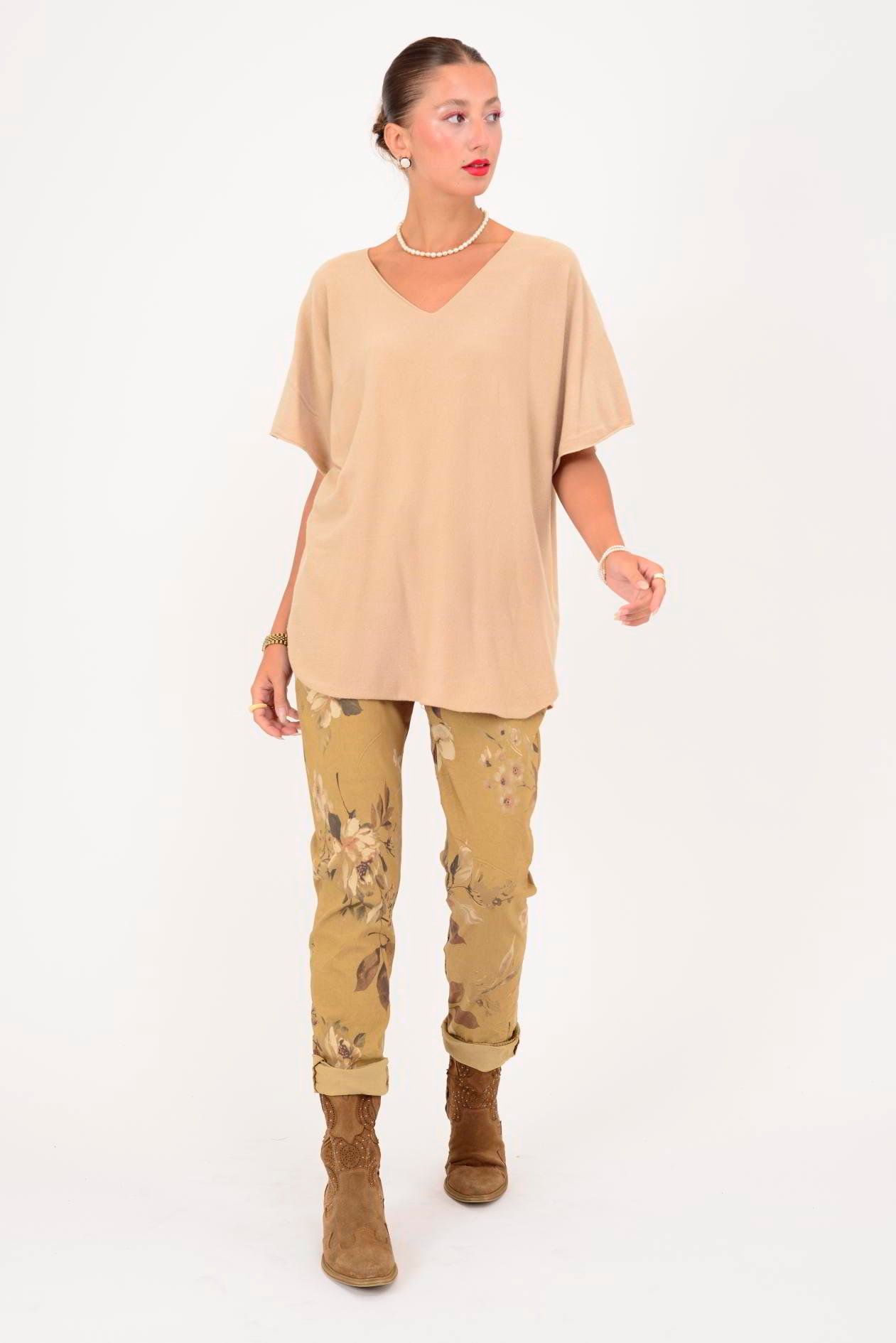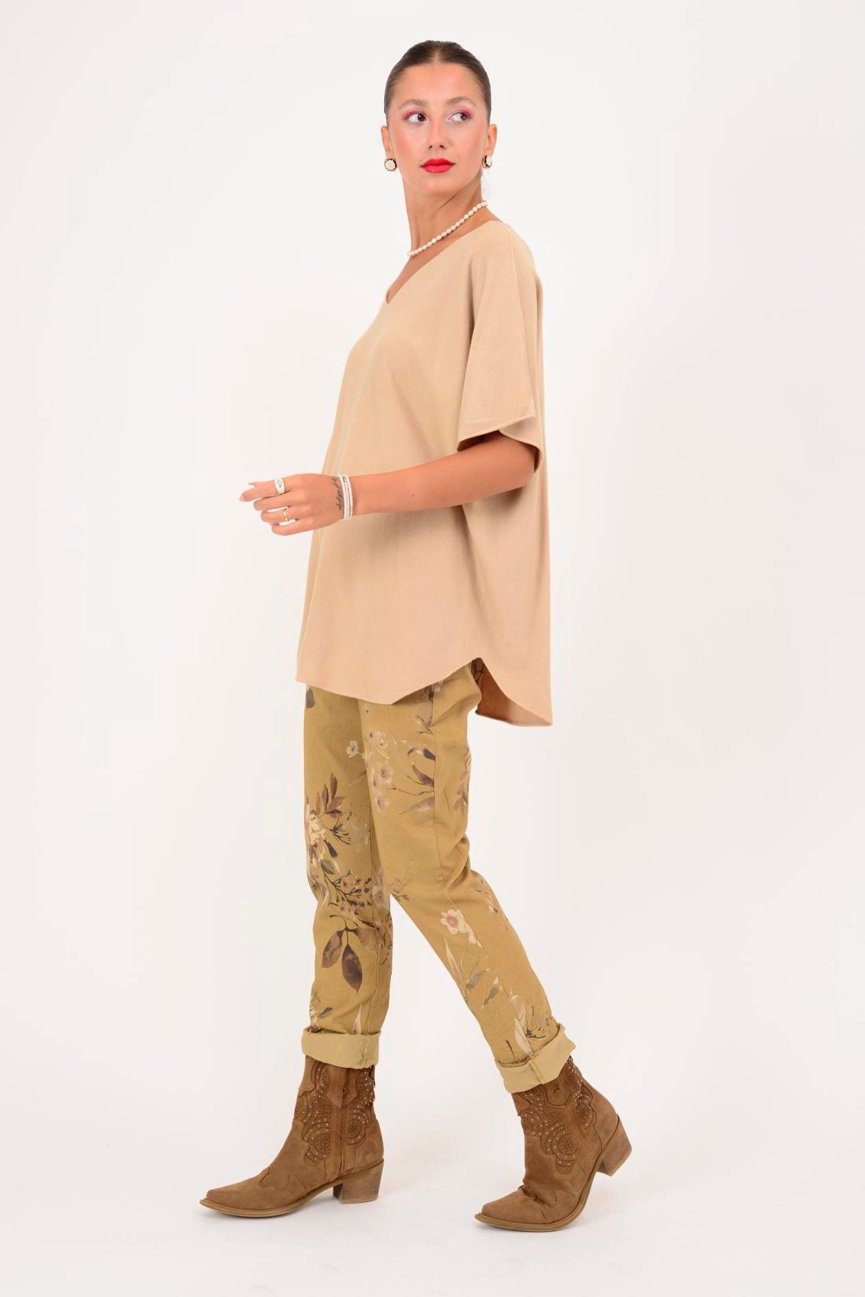 21989 ÇİÇEK DESEN GABARDİN PANTOLON (25K.T.PNT.00084-CAP)
