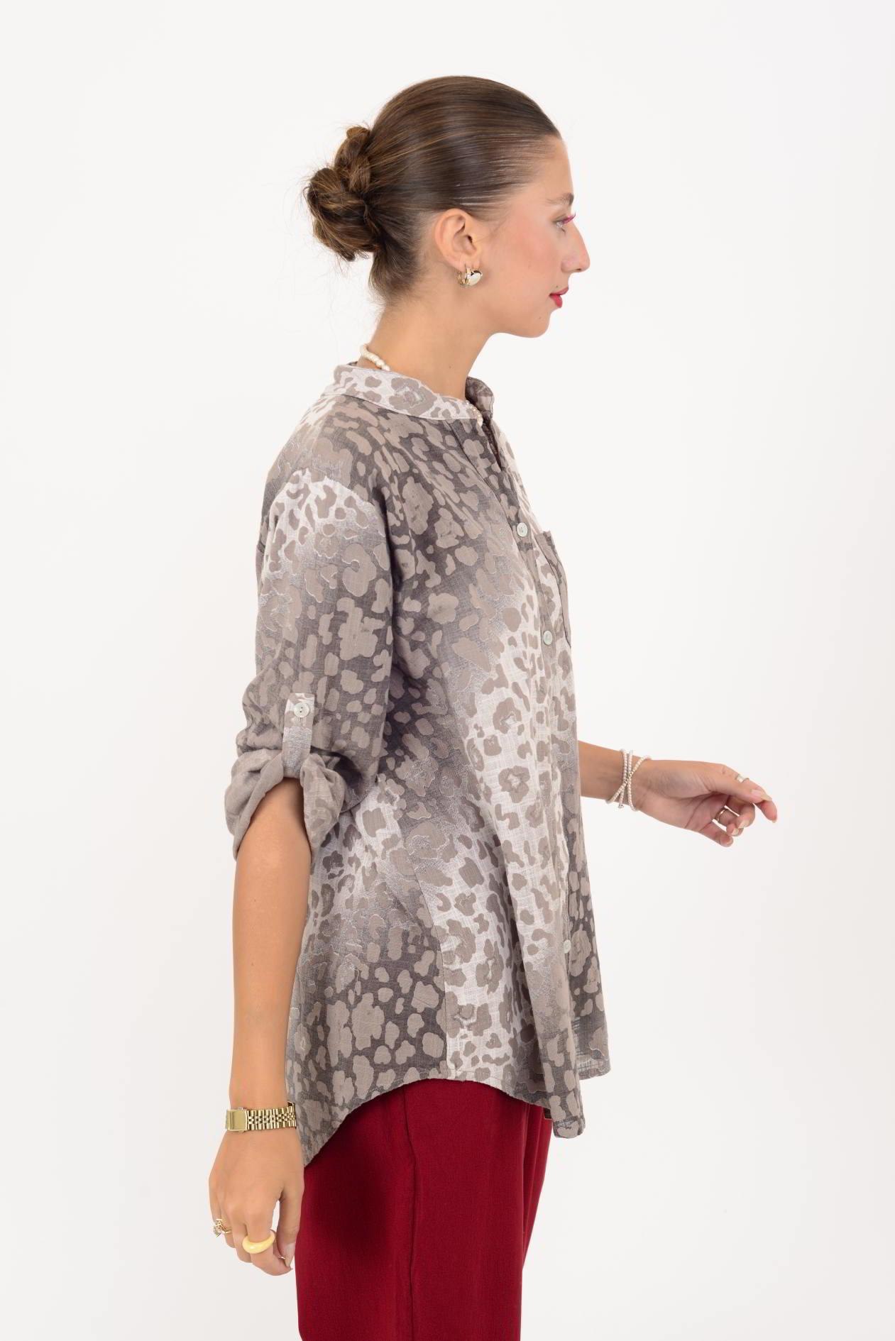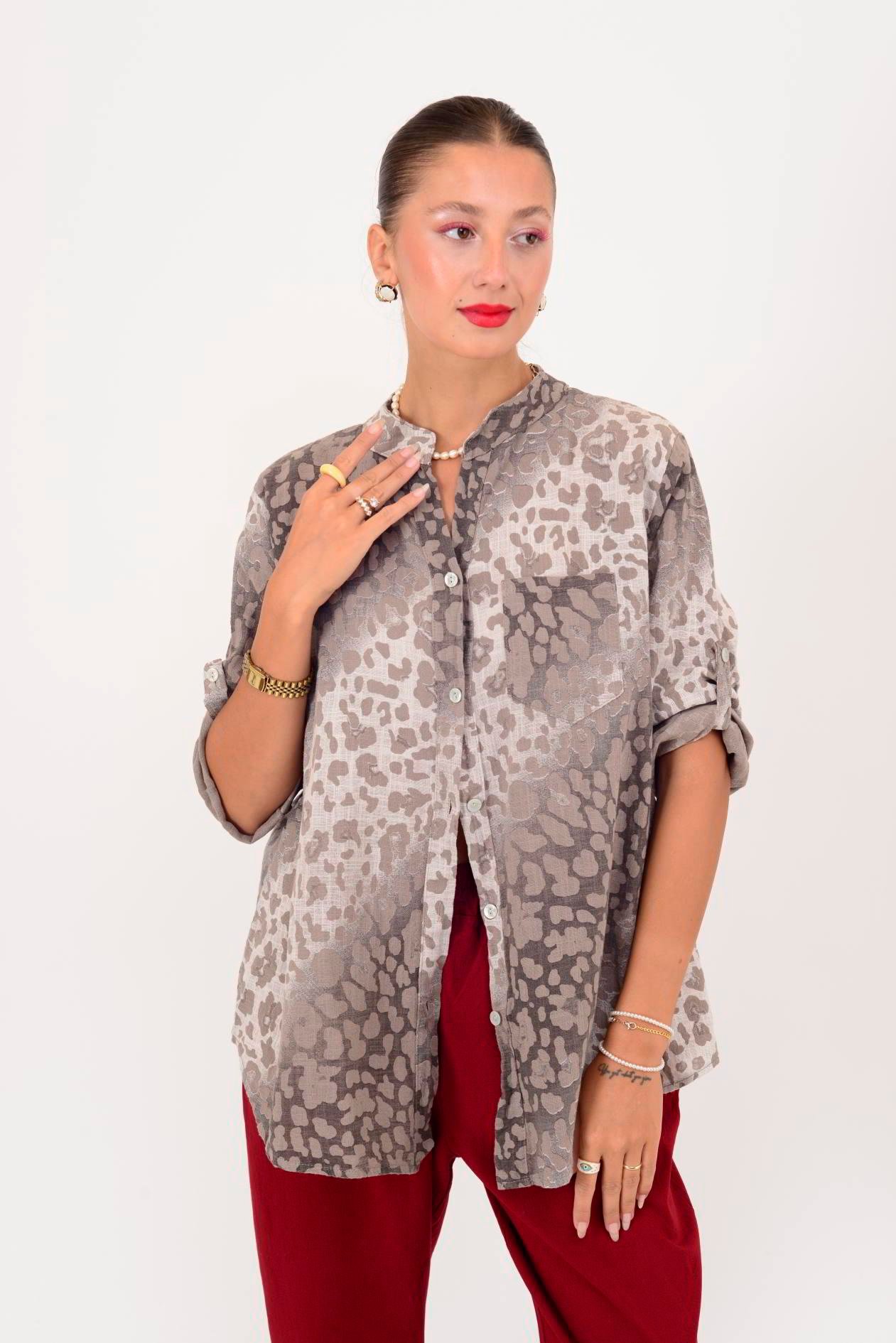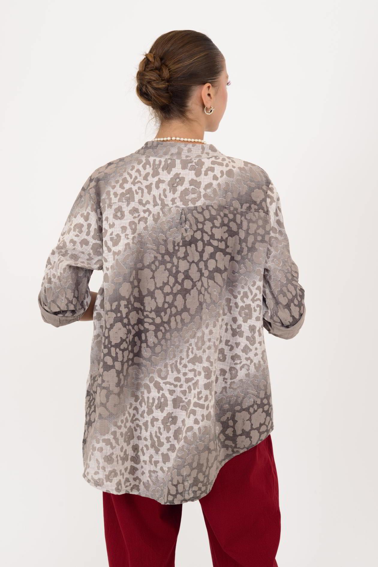 22045-4 BATİK LEOPAR DESEN HAKİM YAKA GÖMLEK (25Y.T.GML.00007-31)