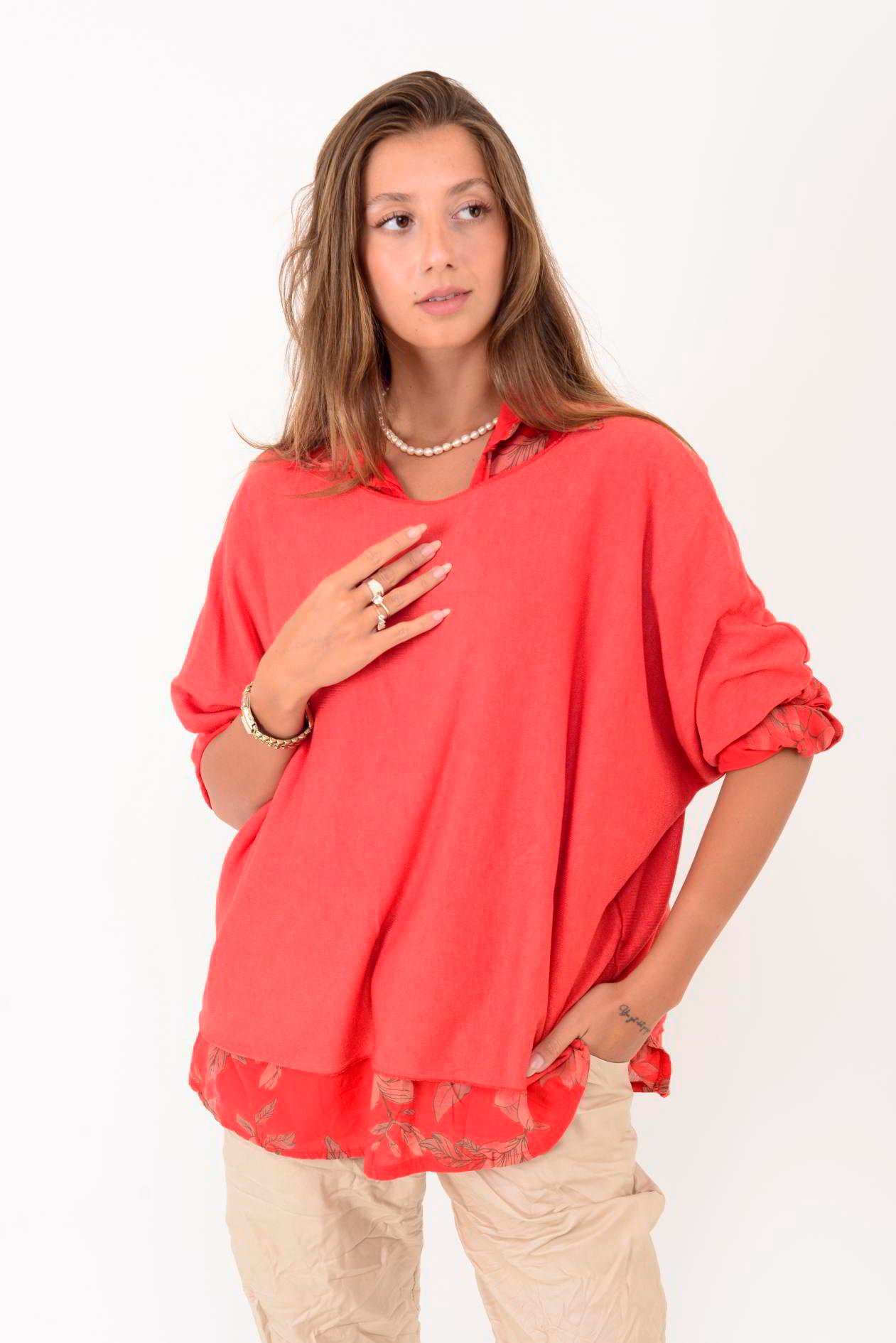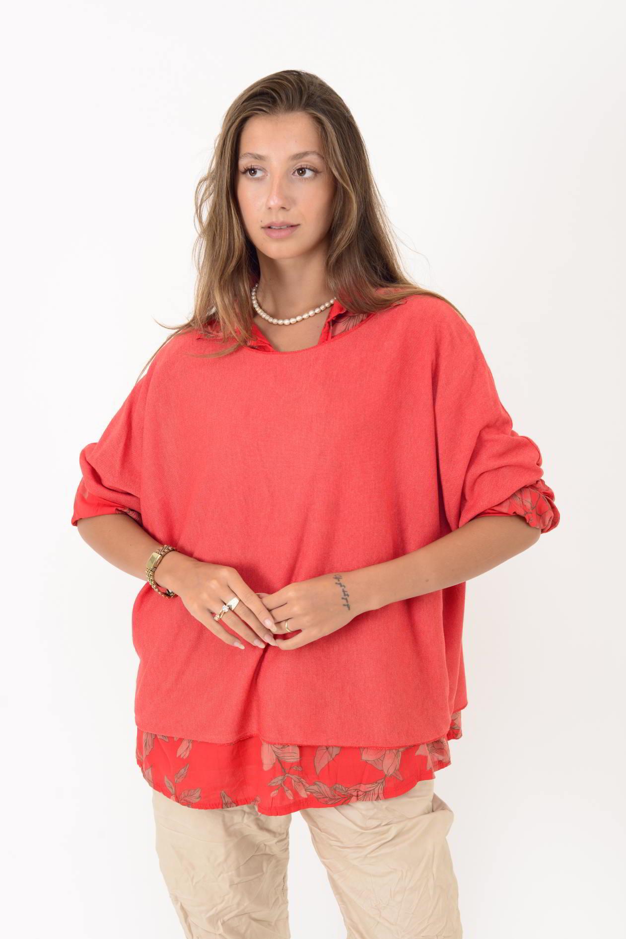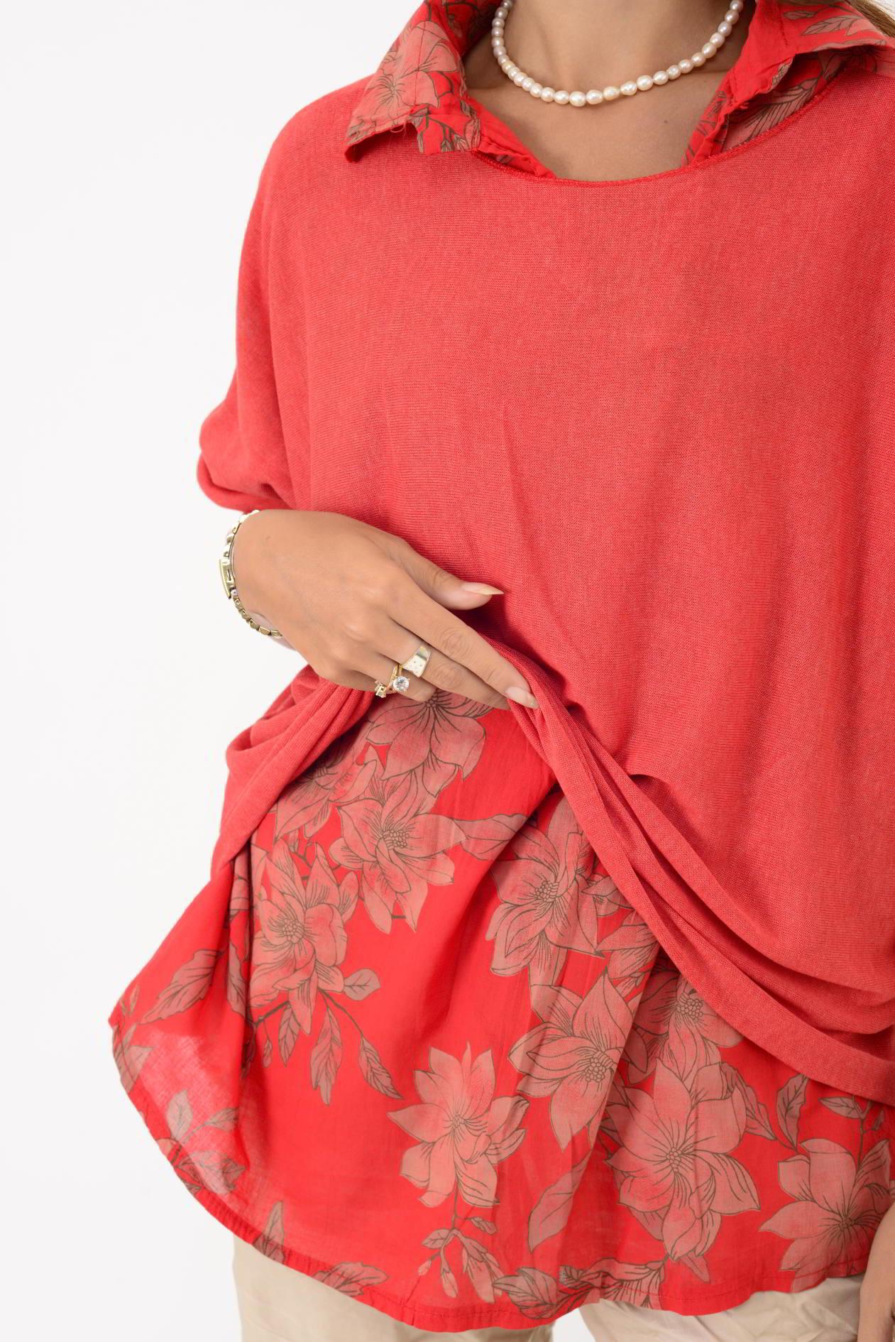 23091 MANOLYA DESEN GÖMLEKLİ 2'Lİ TRİKO BLUZ (25K.T.BLZ.00167-43)