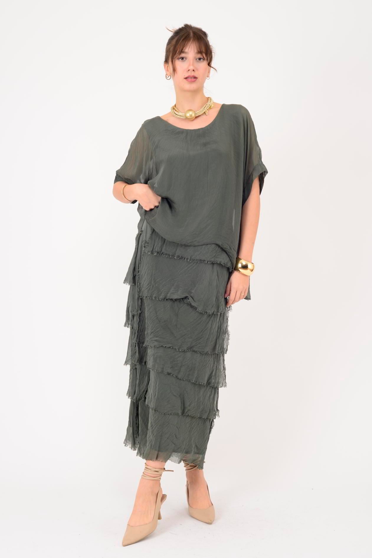 2388 KAT KAT İPEK ELBİSE (22Y.T.ELB.00627-020)