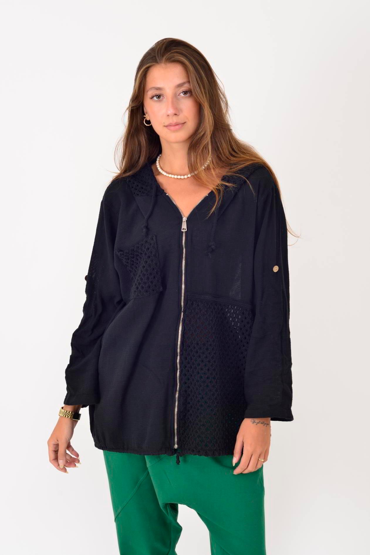 25121 AJUR DETAYLI KAPÜŞONLU FERMUARLI CEKET (25Y.T.CKT.00037-001)