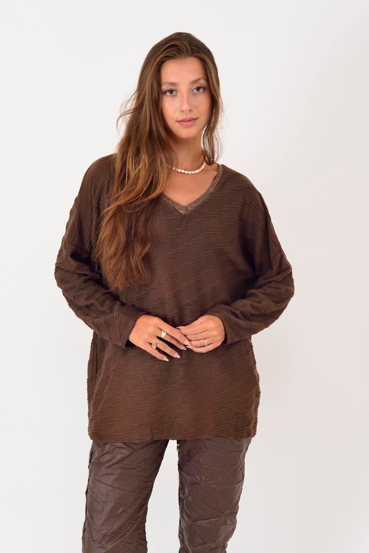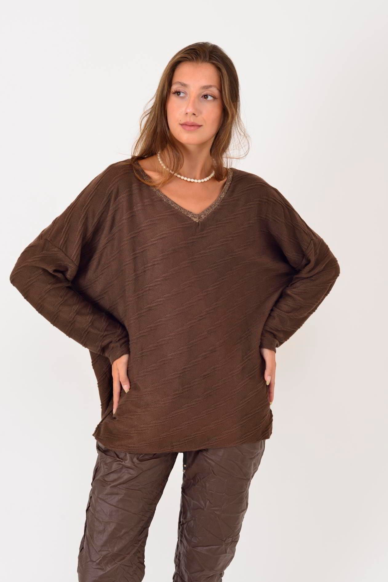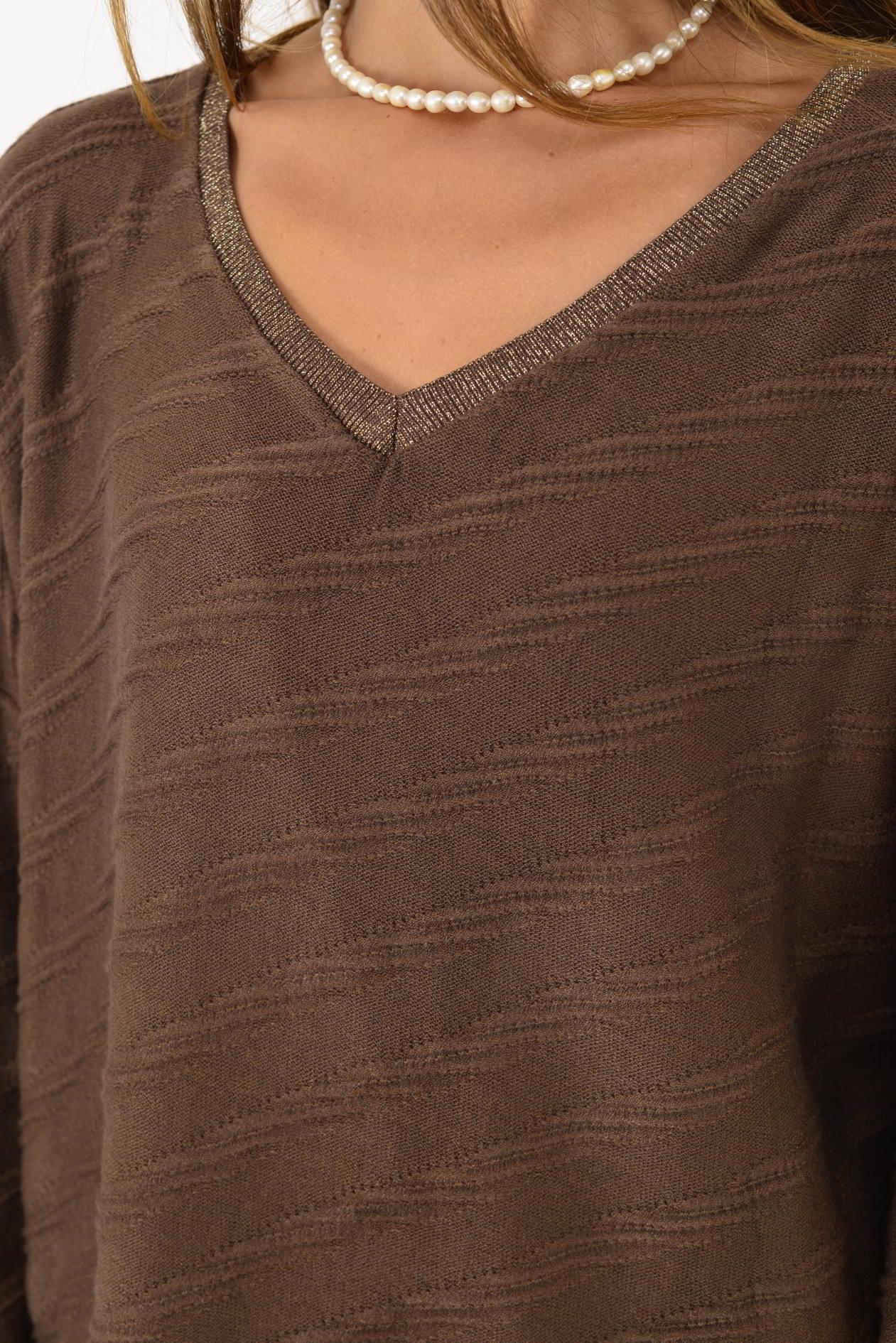 25144 KABARTMALI SİM DETAYLI V YAKA TRİKO BLUZ (25K.T.BLZ.00162-005)