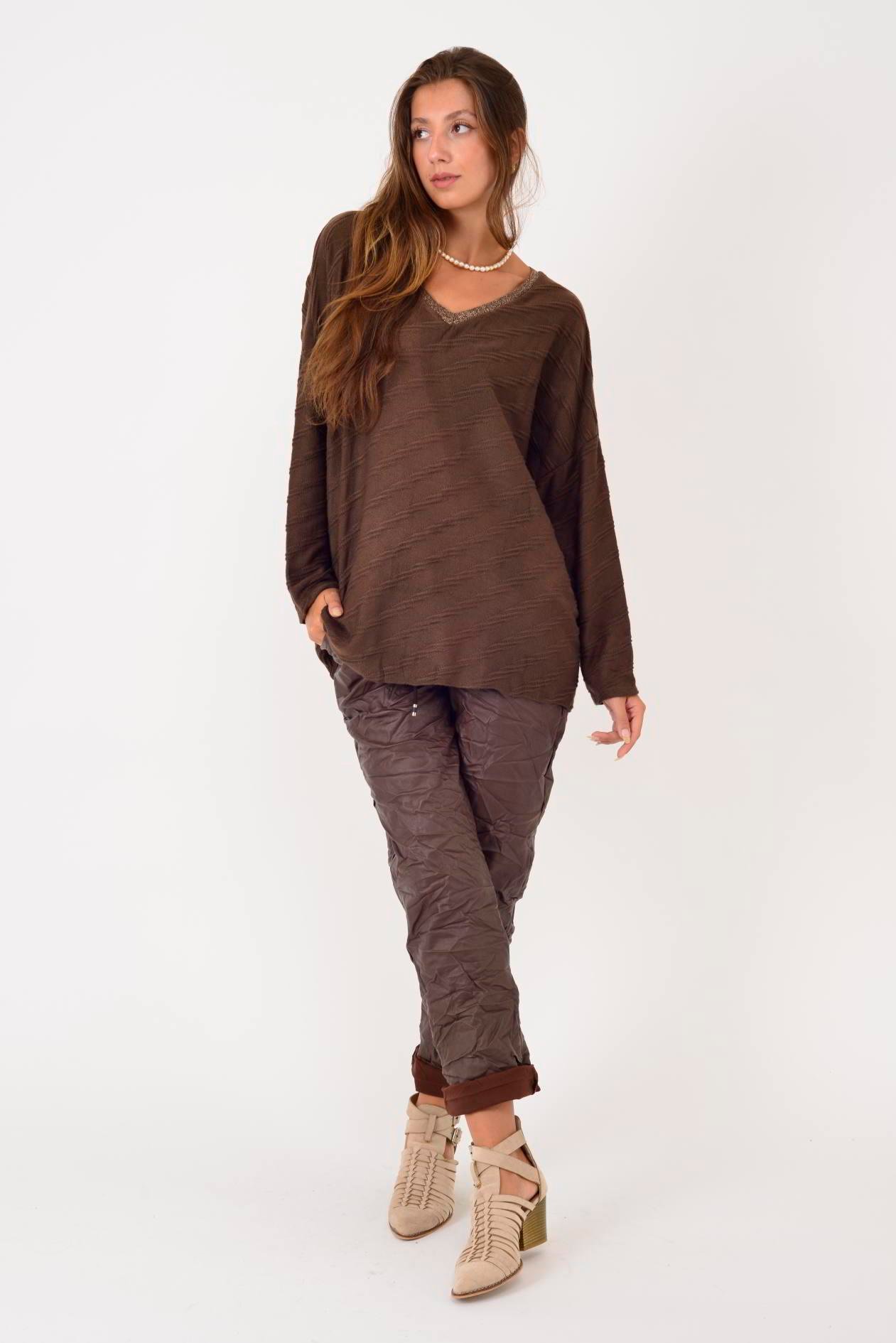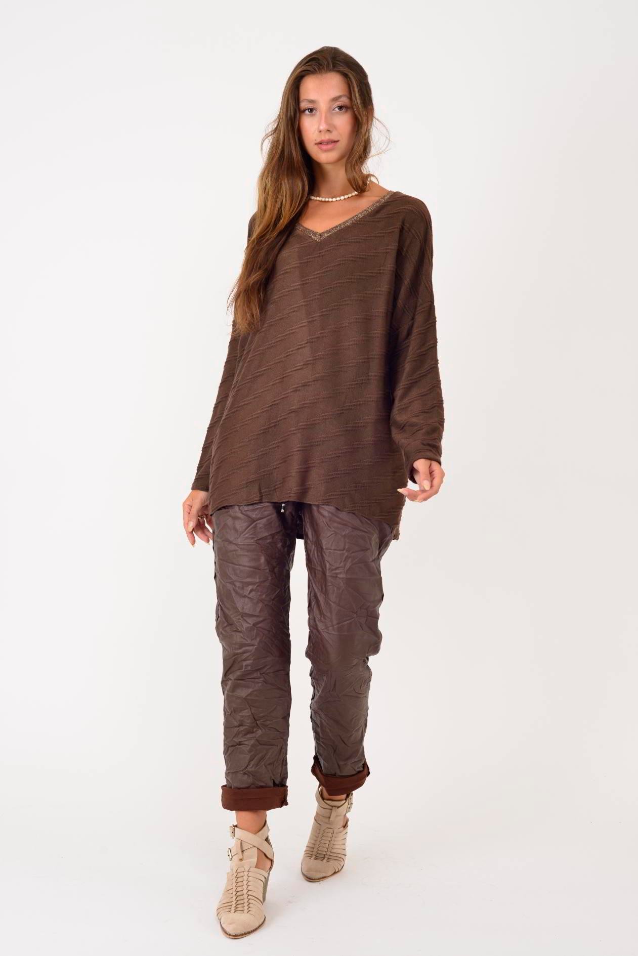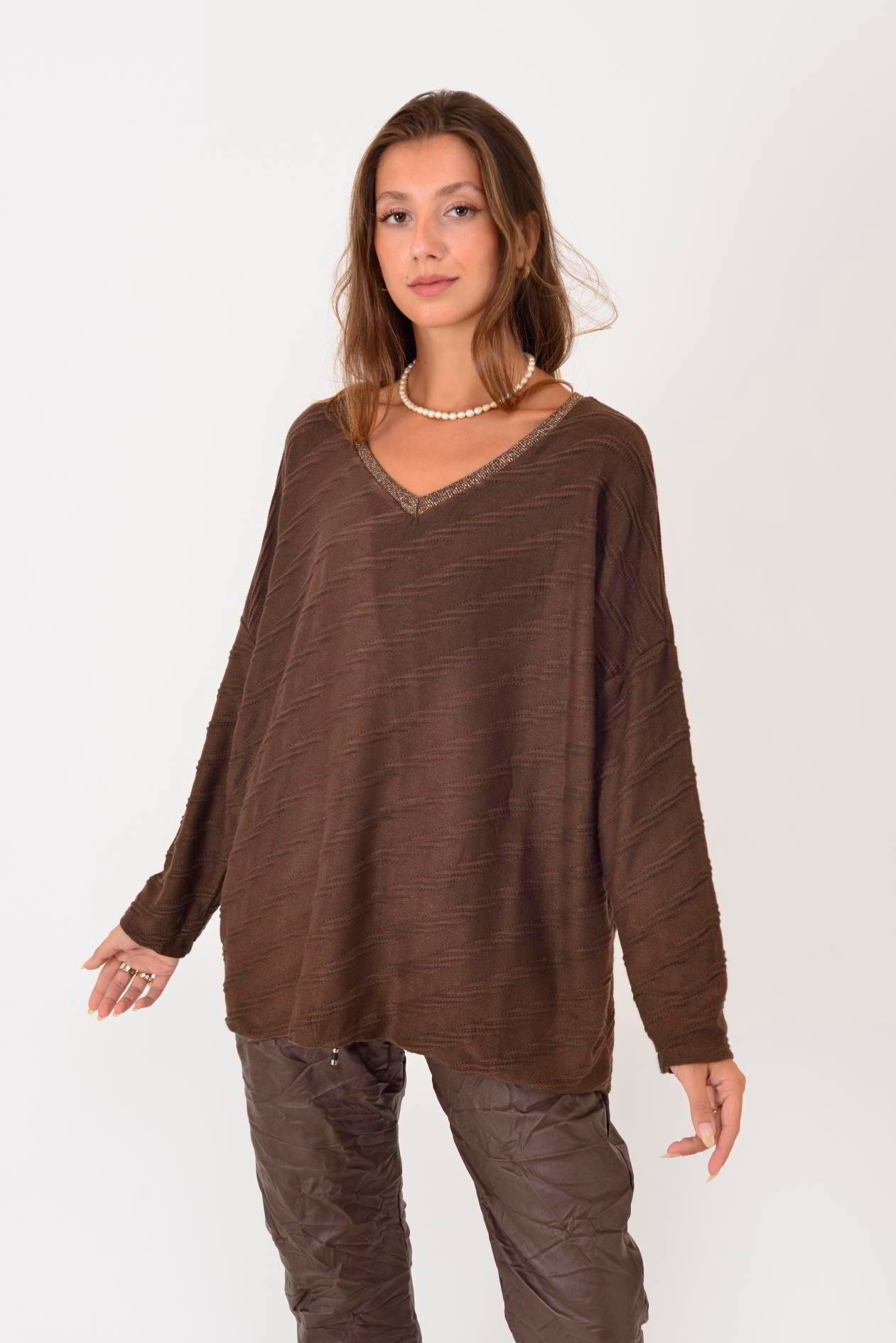 25144 KABARTMALI SİM DETAYLI V YAKA TRİKO BLUZ (25K.T.BLZ.00162-005)
