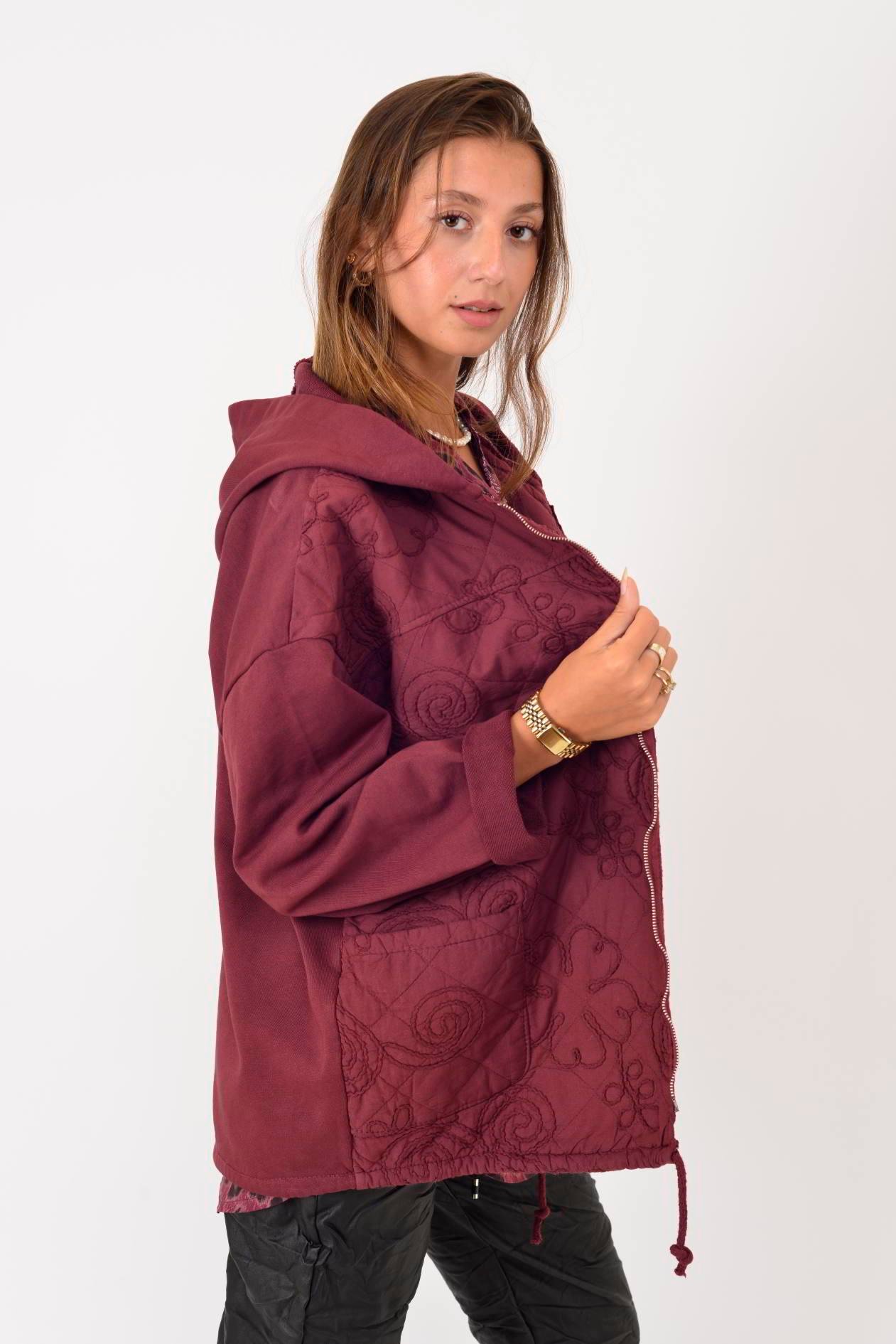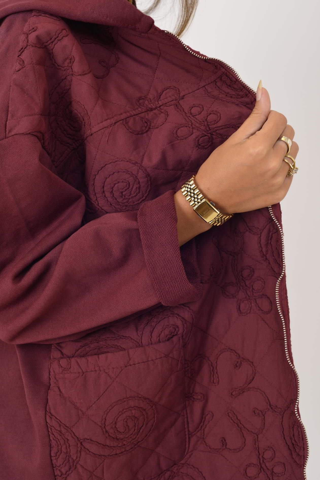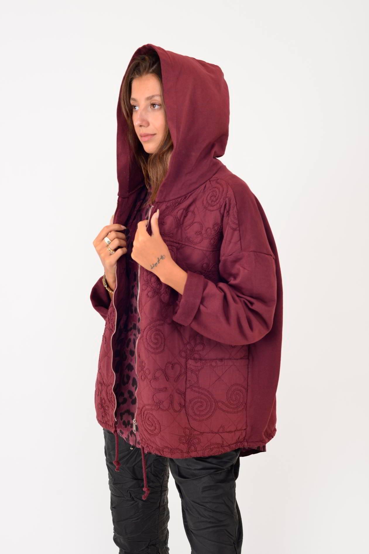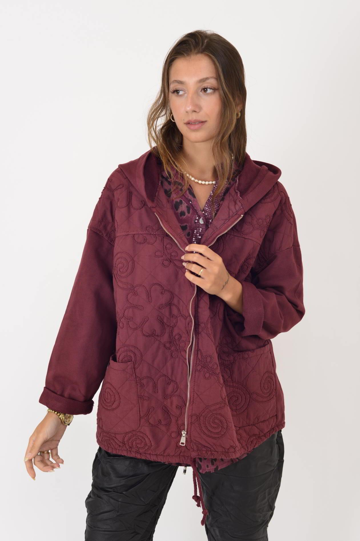 25146 KABARTMALI NAKIŞ DETAYLI KAPÜŞONLU FERMUARLI KAPİTONE CEKET (25K.T.MNT.00055-018)