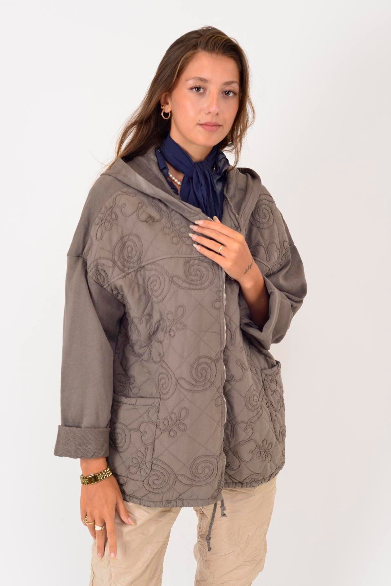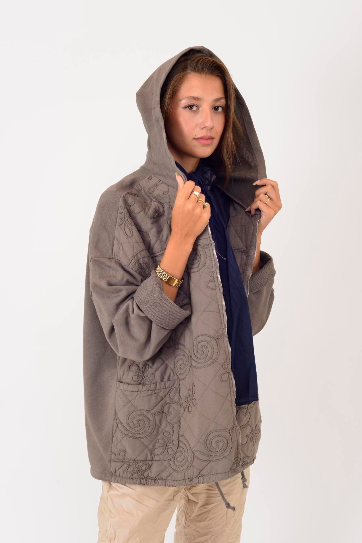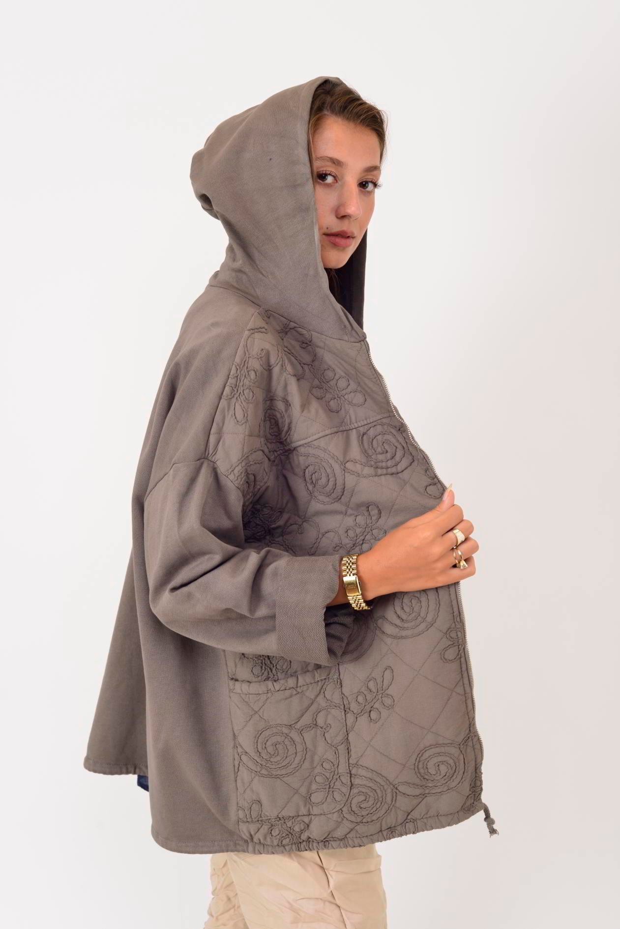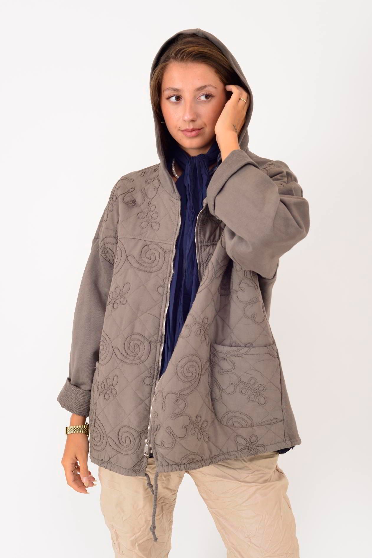 25146 KABARTMALI NAKIŞ DETAYLI KAPÜŞONLU FERMUARLI KAPİTONE CEKET (25K.T.MNT.00055-31)