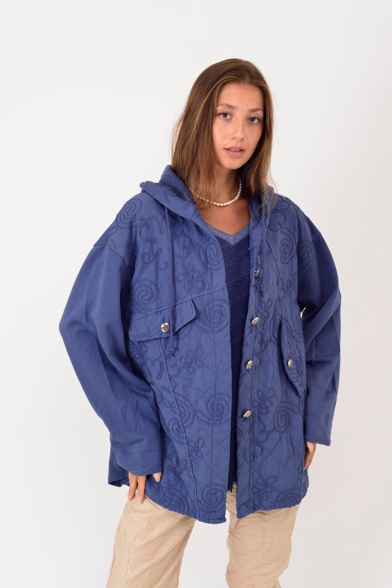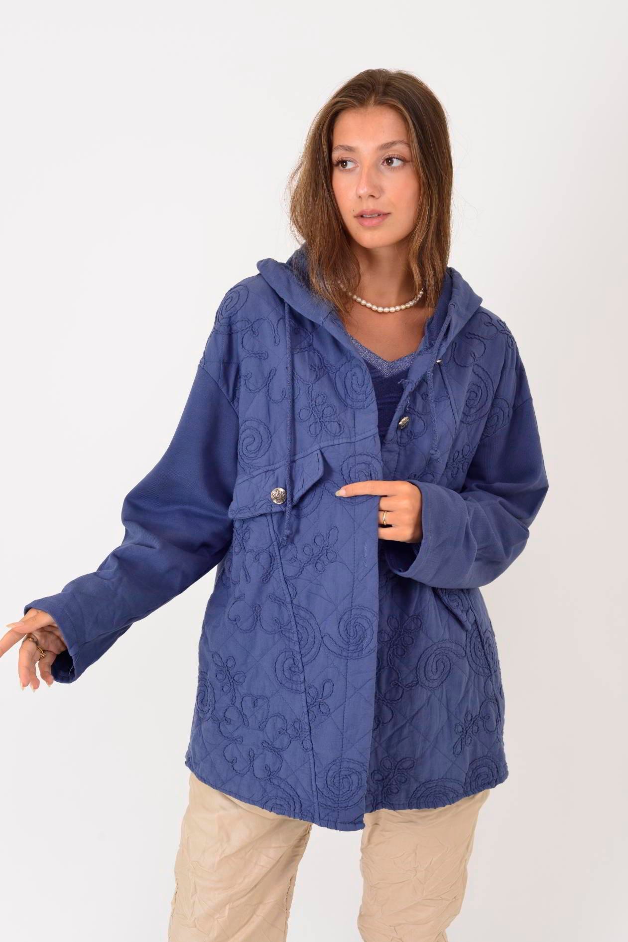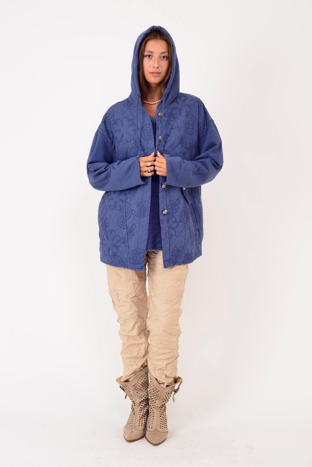 25146 KABARTMALI NAKIŞ DETAYLI KAPÜŞONLU KAPİTONE CEKET (25K.T.MNT.00056-İ0)