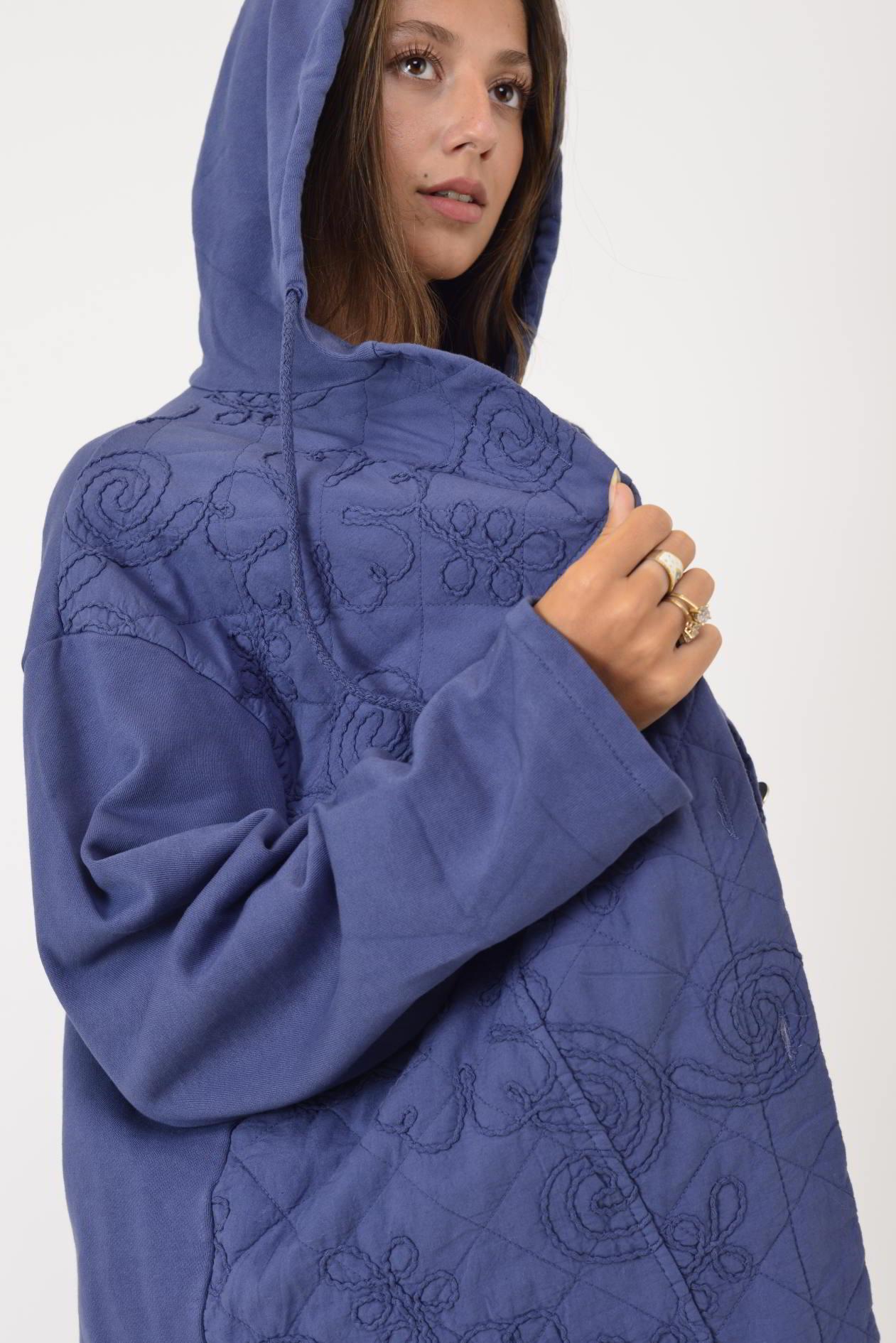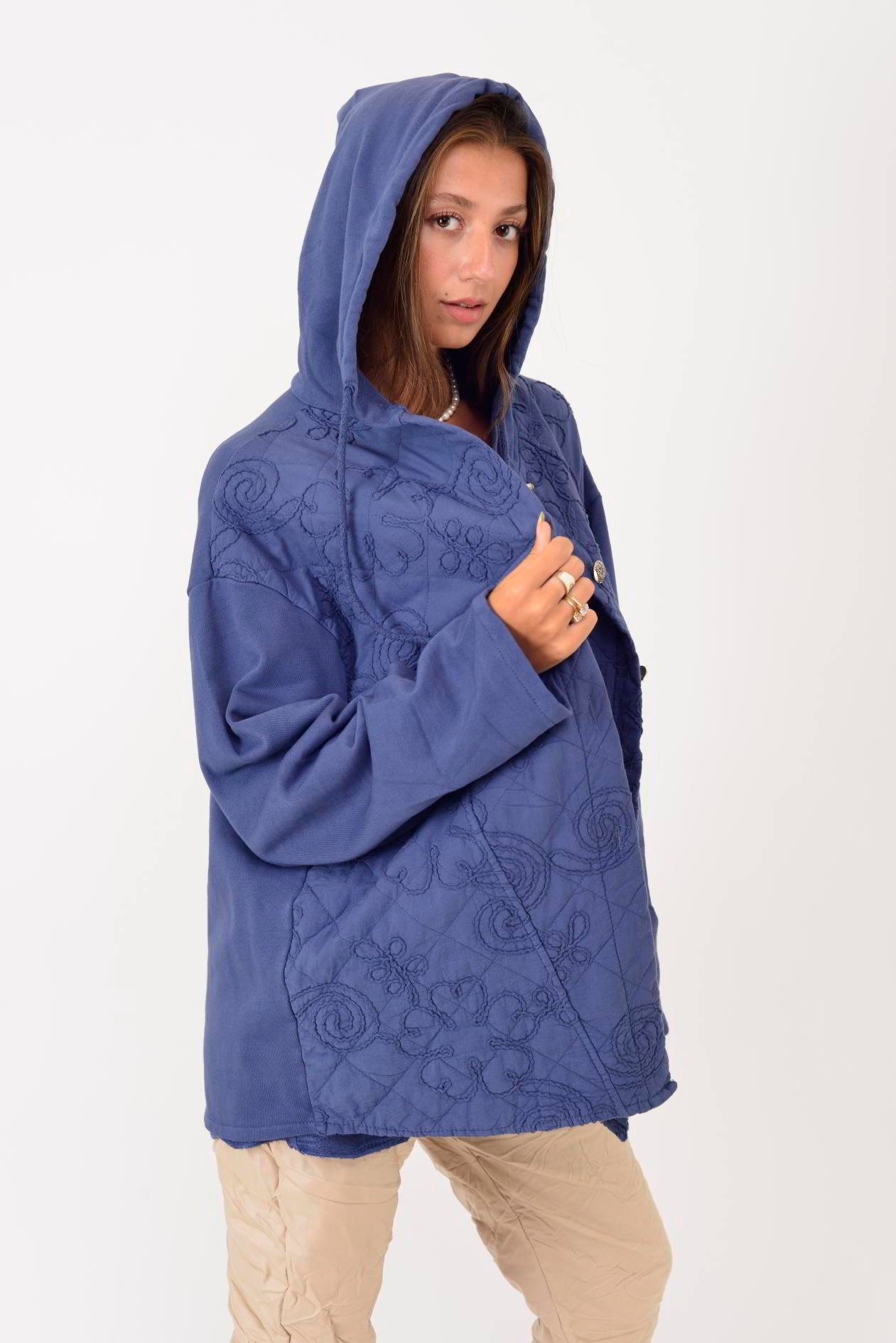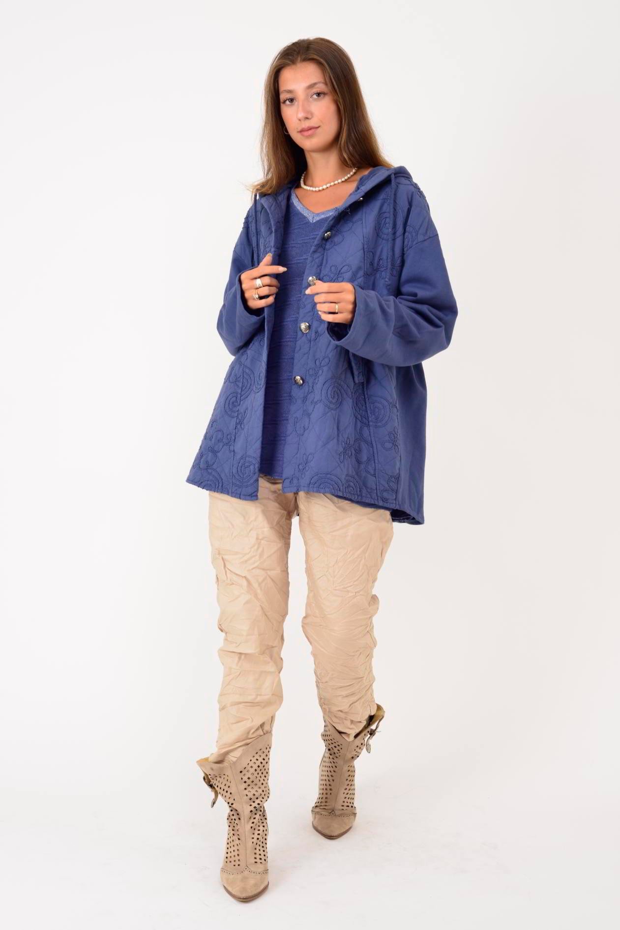 25146 KABARTMALI NAKIŞ DETAYLI KAPÜŞONLU KAPİTONE CEKET (25K.T.MNT.00056-İ0)