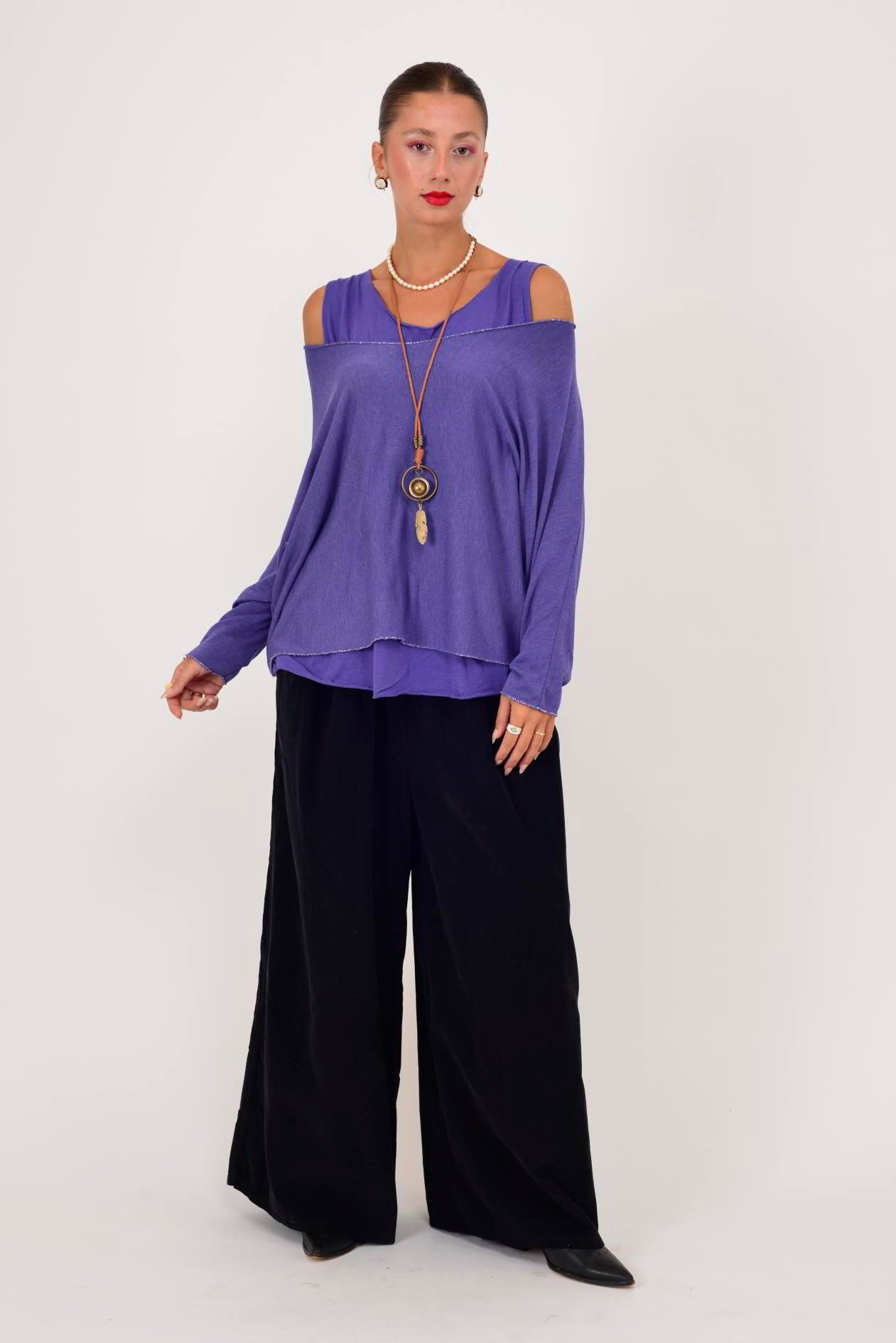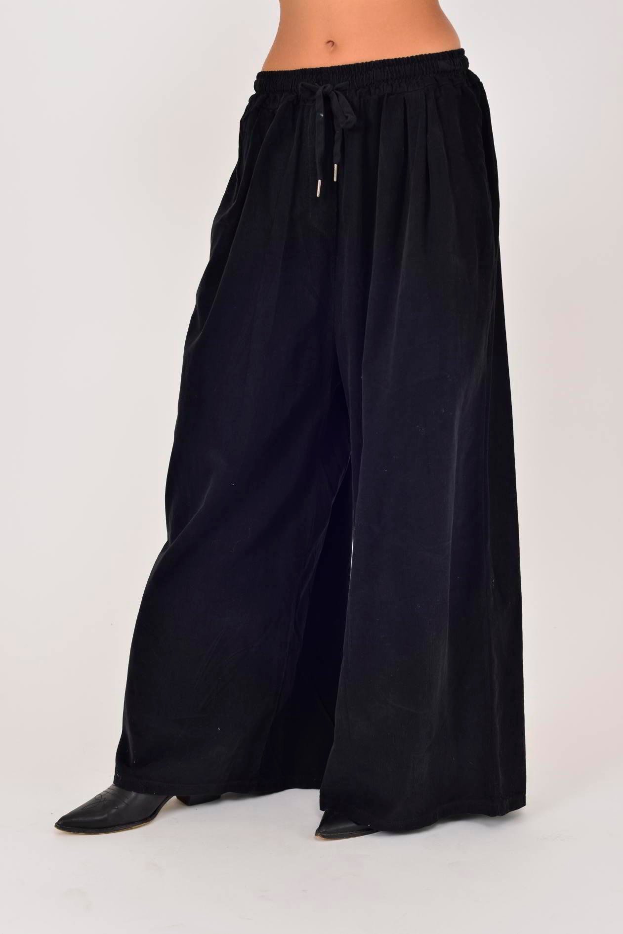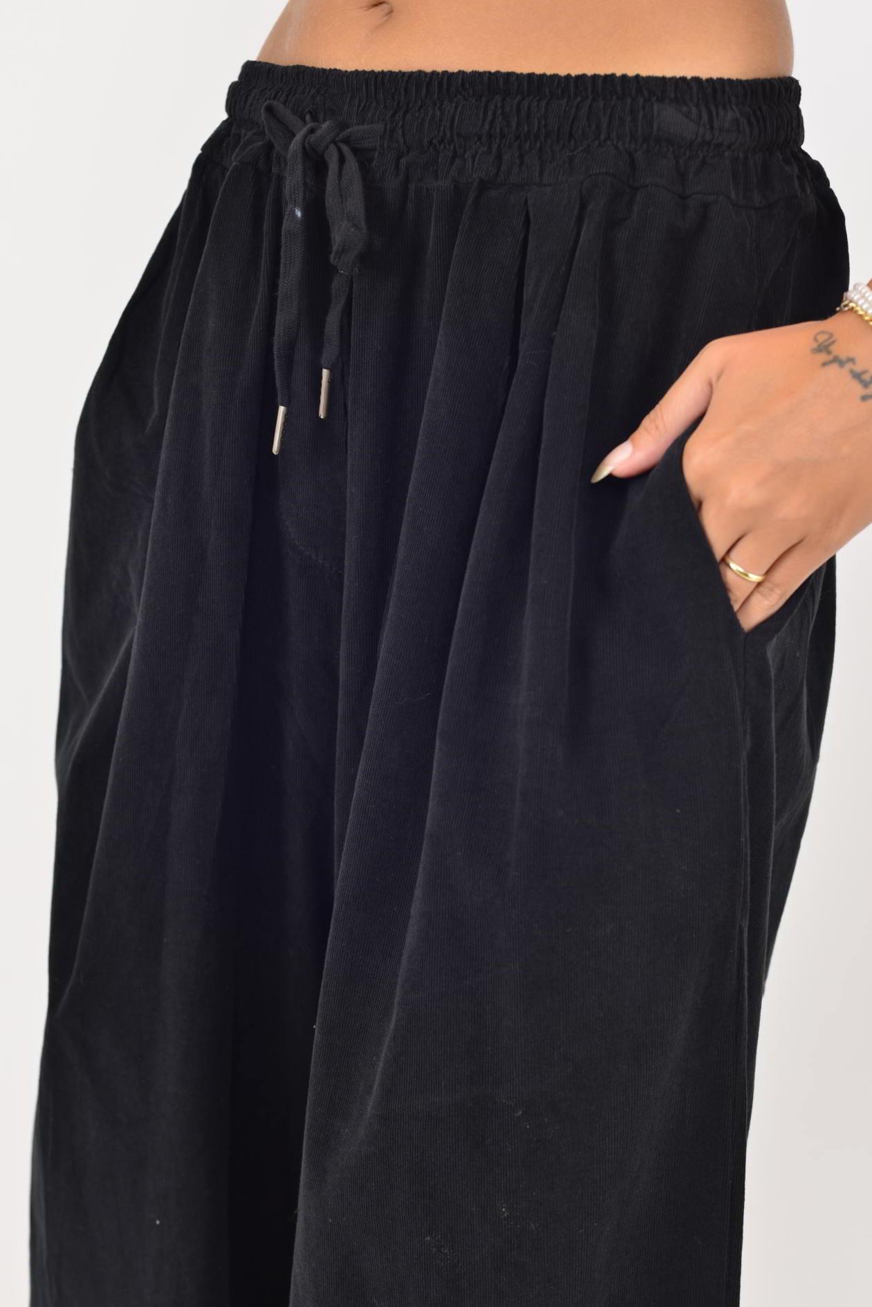 30530 BELİ LASTİKLİ PALAZZO FİTİLLİ KADİFE PANTOLON (25K.T.PNT.00089-001)