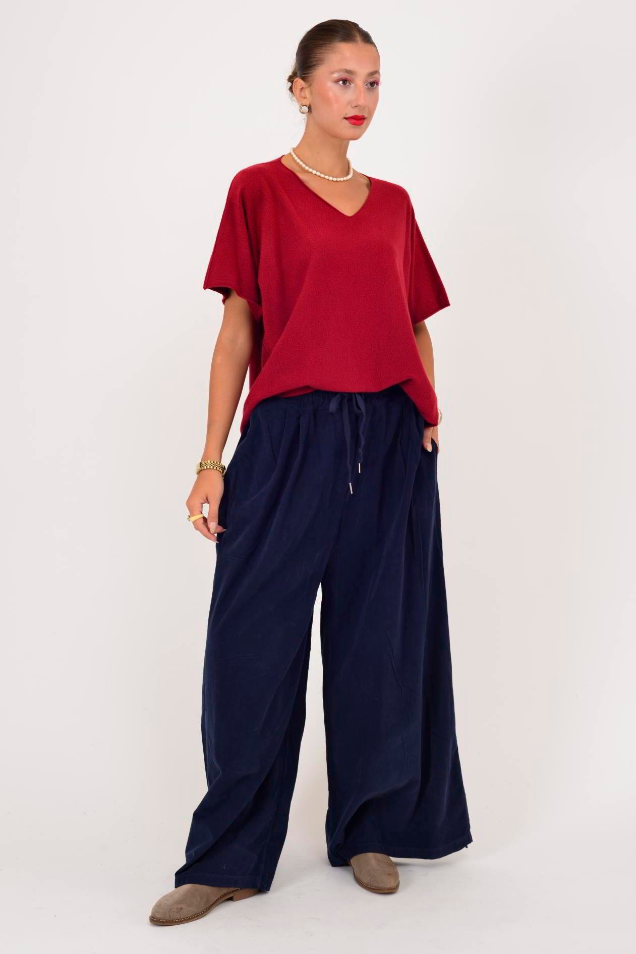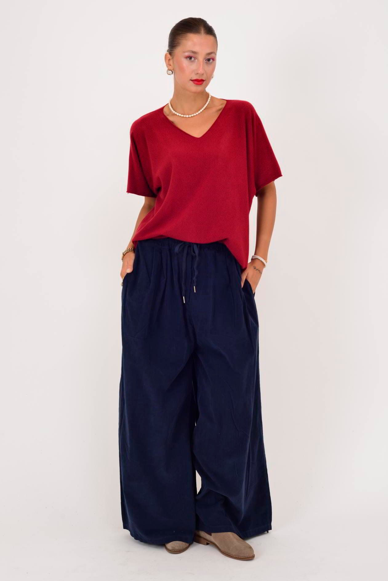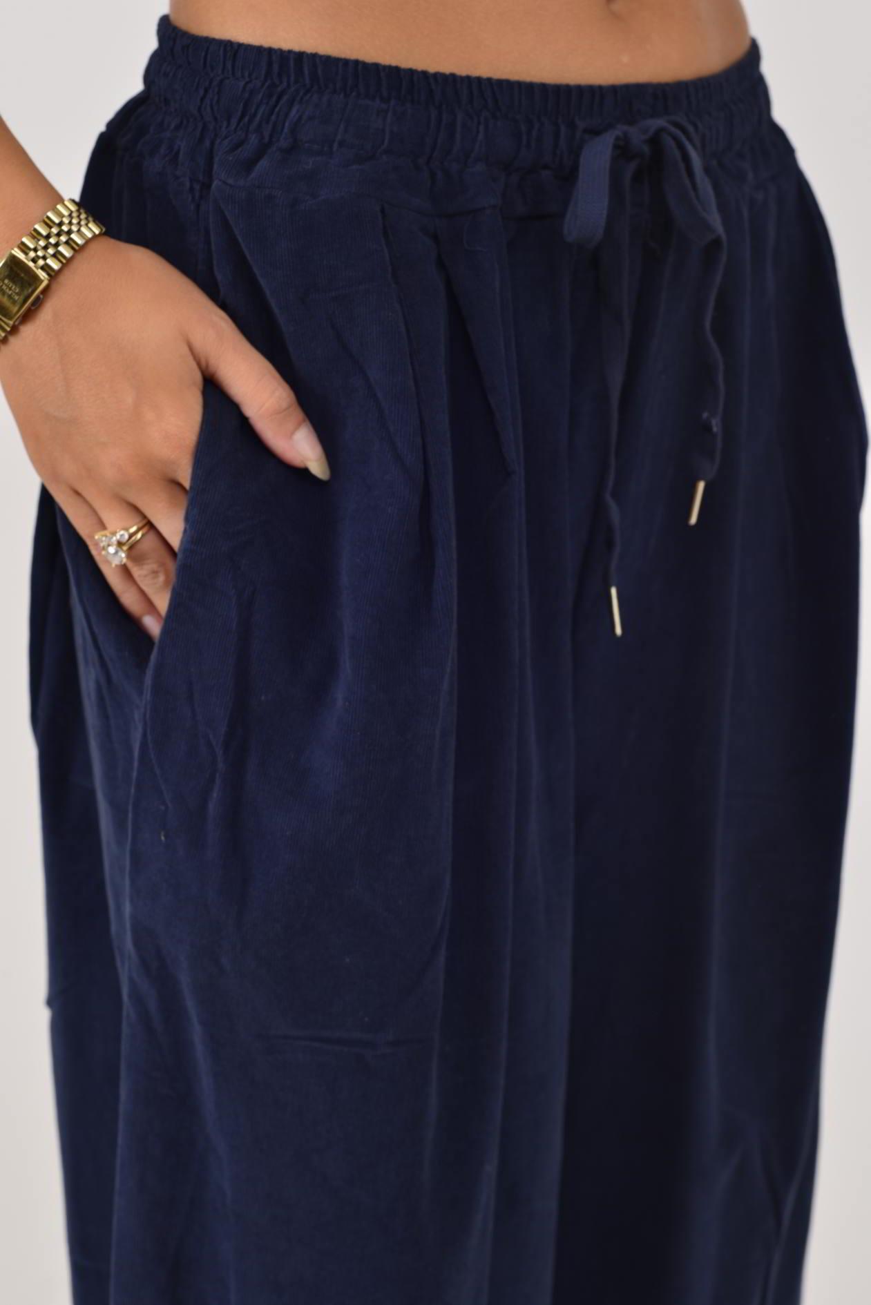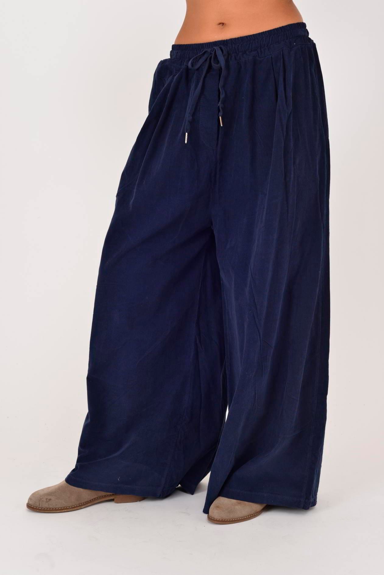 30530 BELİ LASTİKLİ PALAZZO FİTİLLİ KADİFE PANTOLON (25K.T.PNT.00089-004)