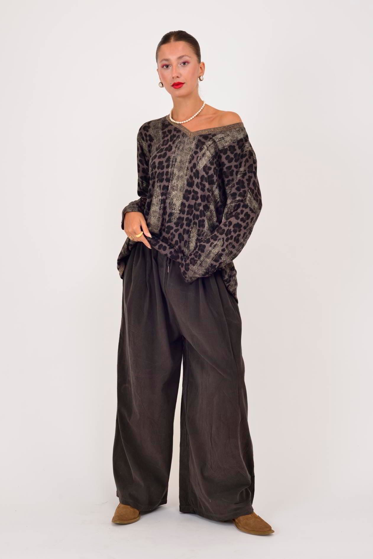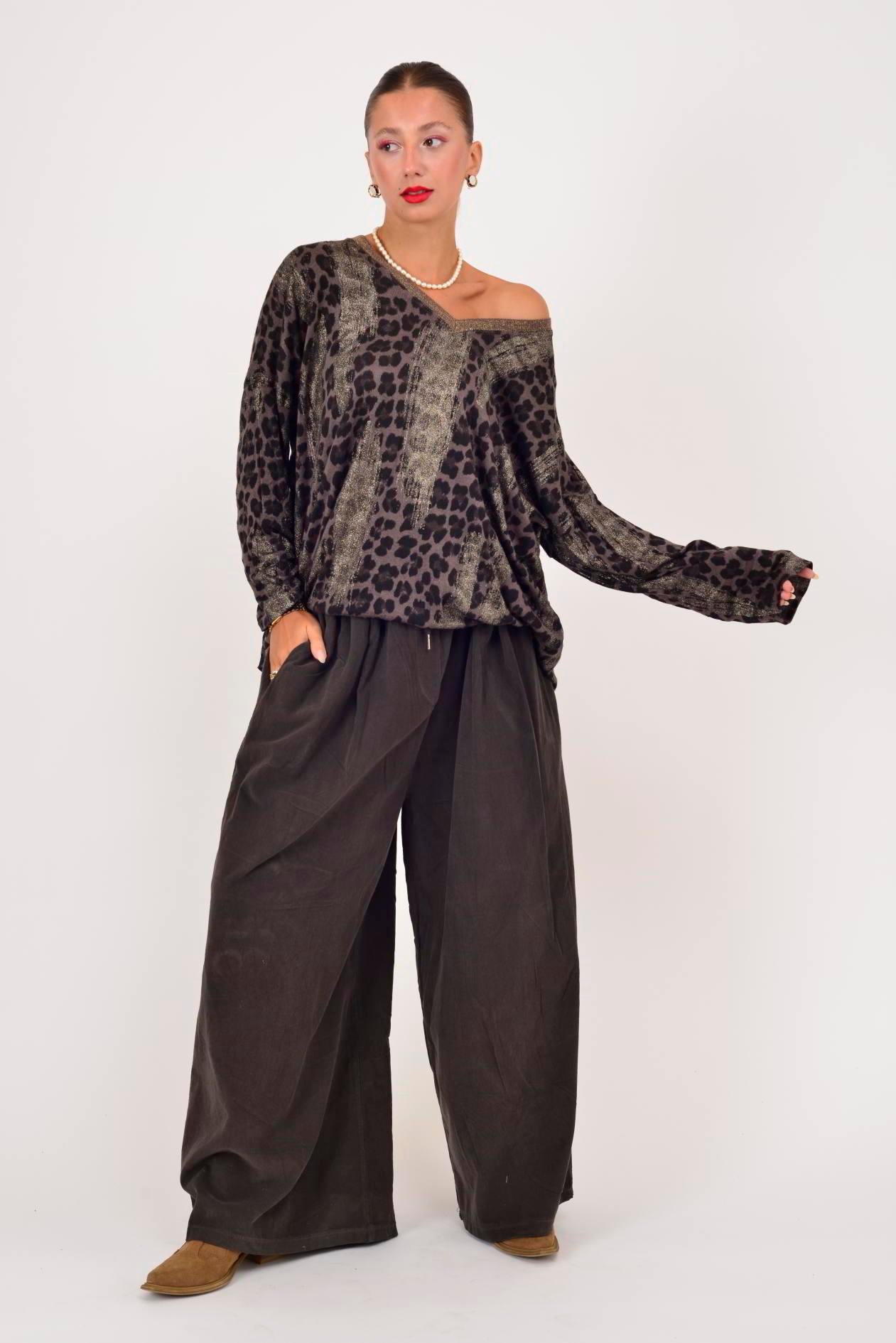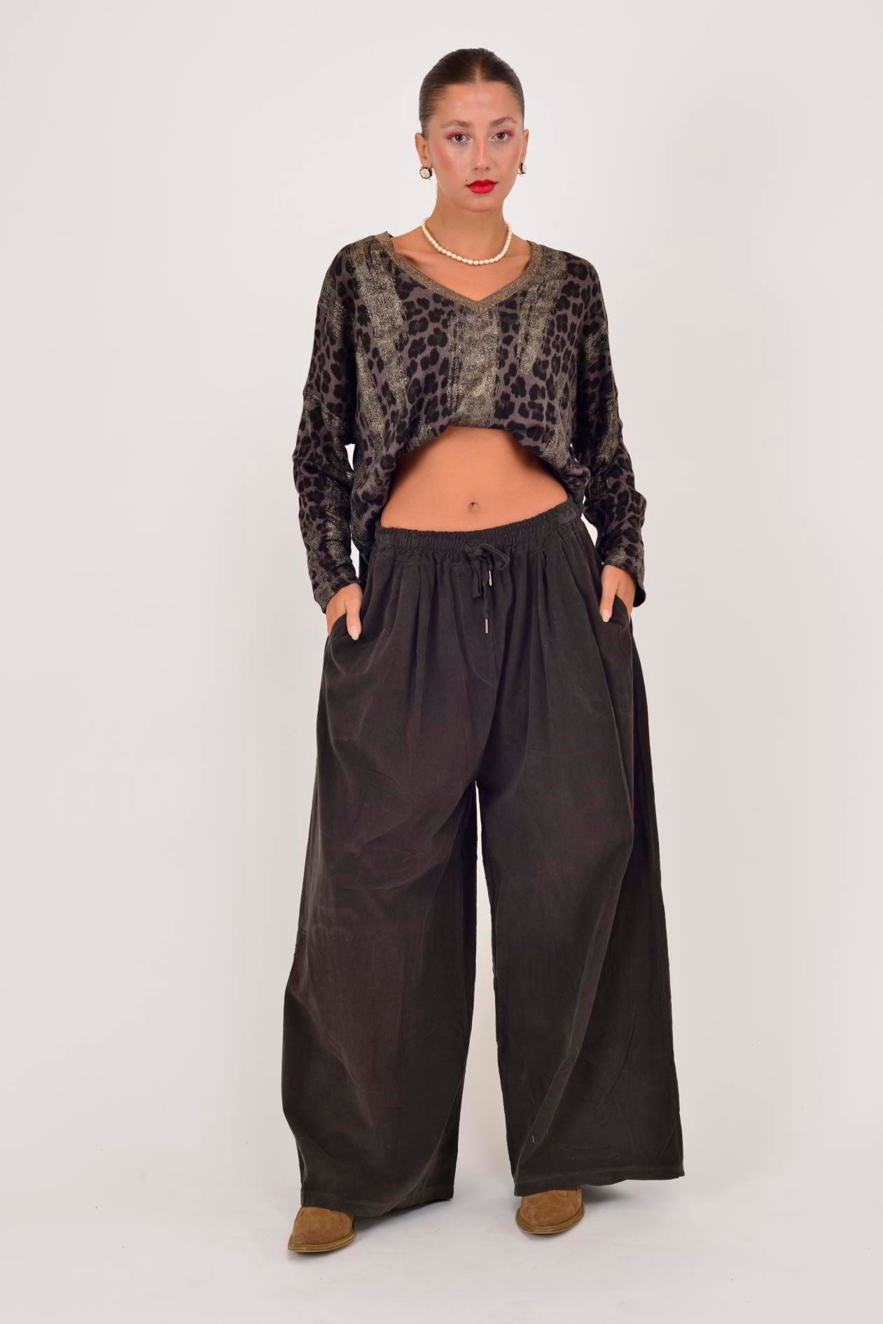 30530 BELİ LASTİKLİ PALAZZO FİTİLLİ KADİFE PANTOLON (25K.T.PNT.00089-005)