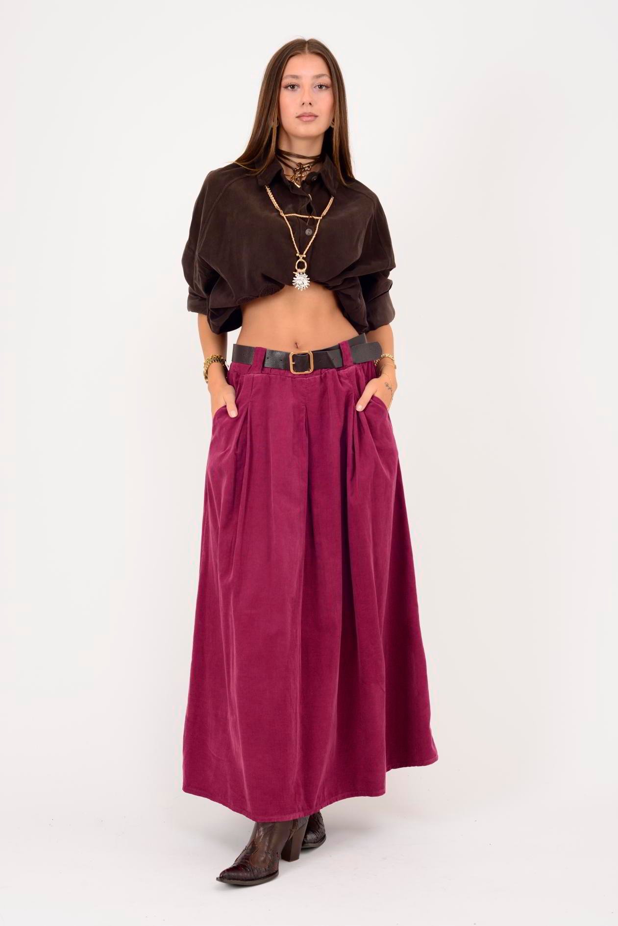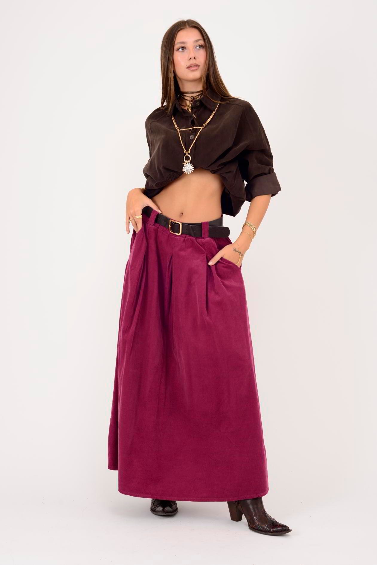 3233 LOVA KEMER DETAYLI FİTİLLİ KADİFE ETEK (25K.T.ETK.00020-018)