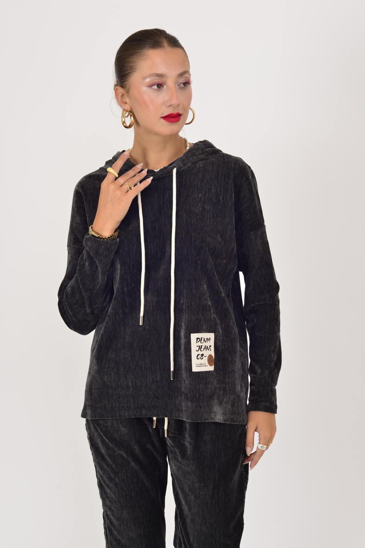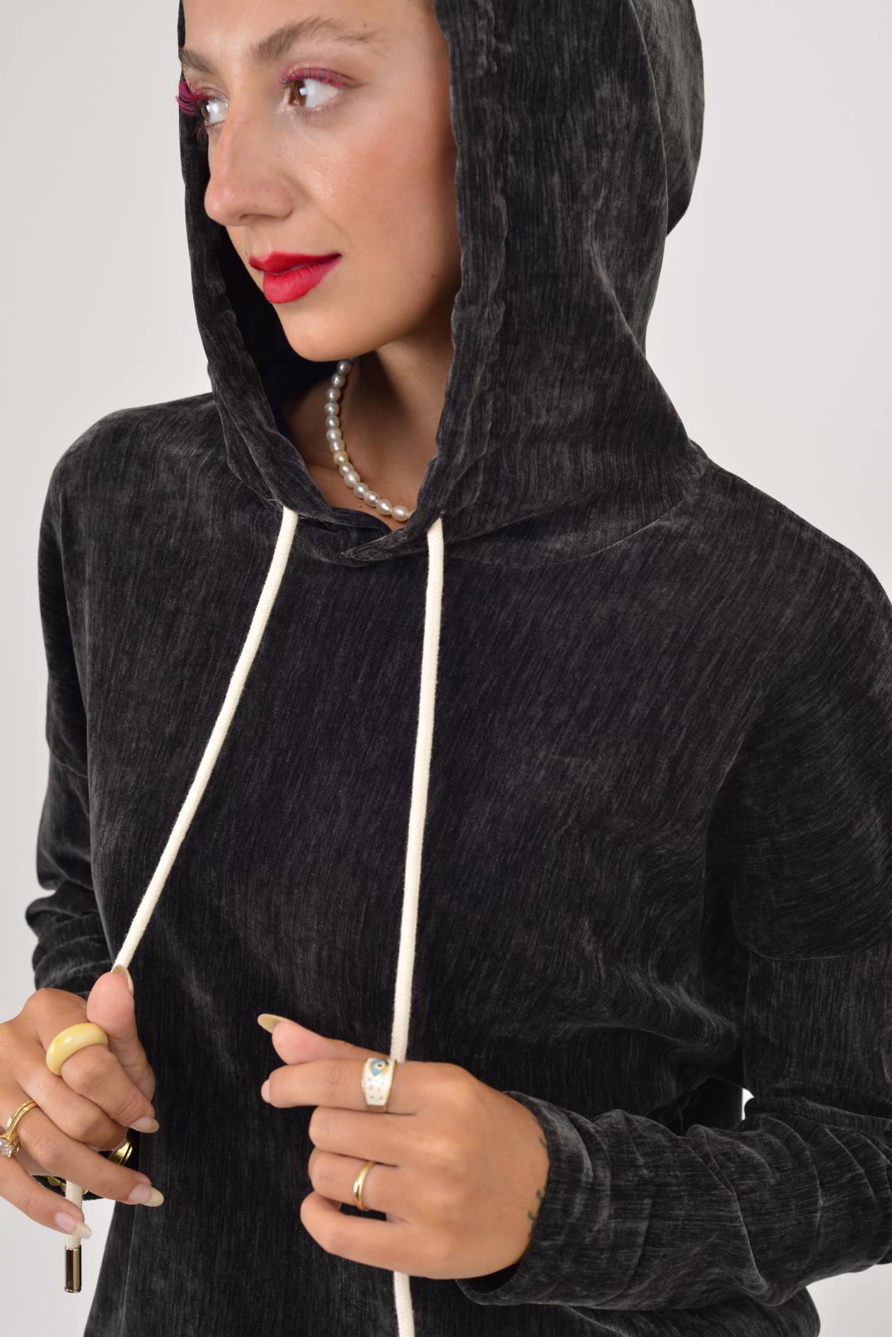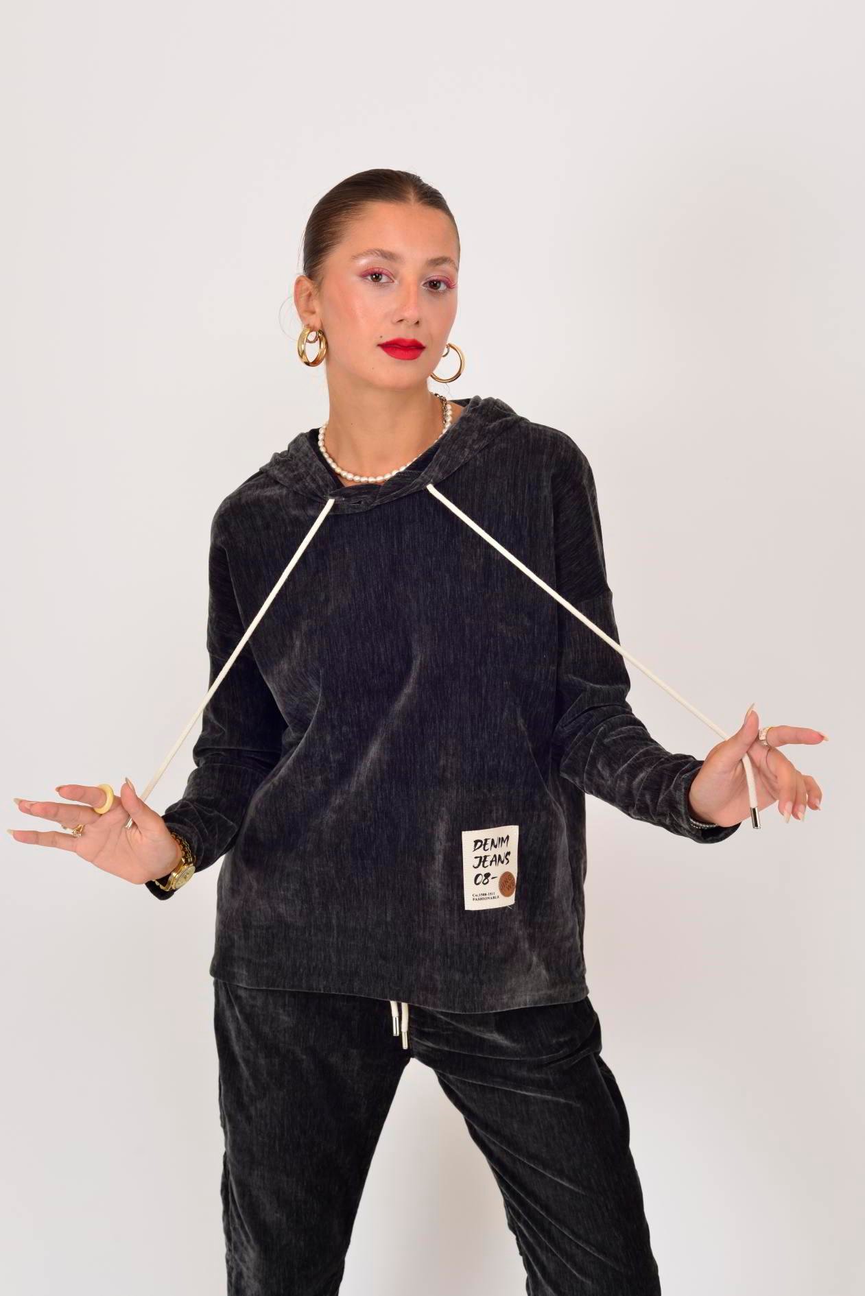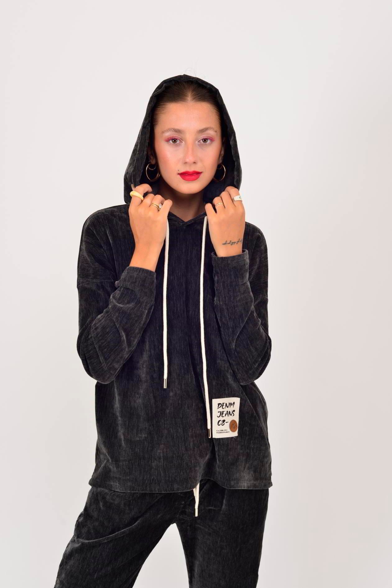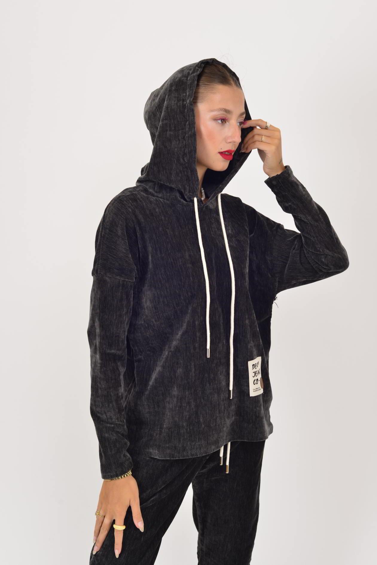 42009 KAPÜŞONLU KADİFE SWEATSHIRT (25K.T.KAP.00043-0001)
