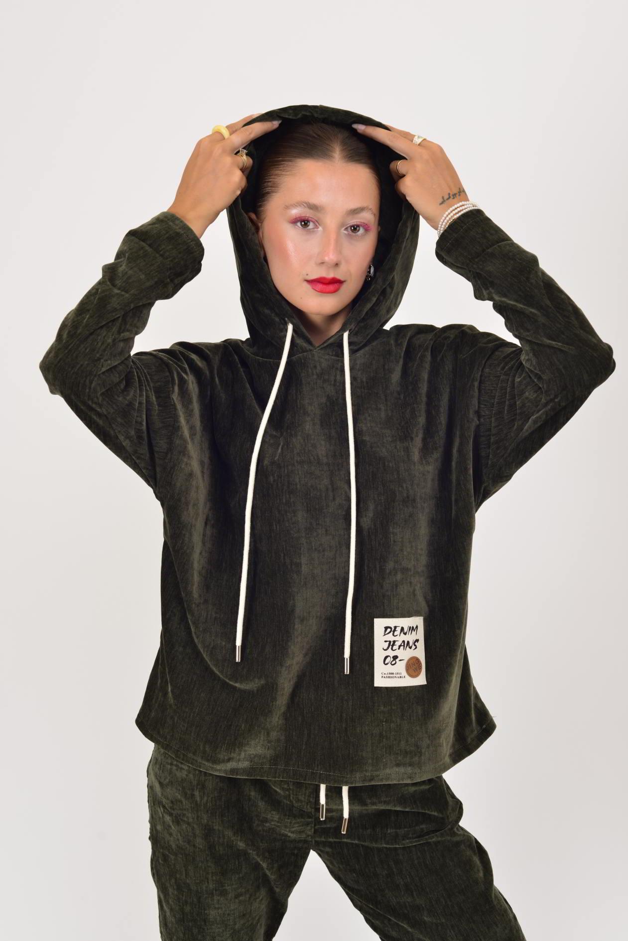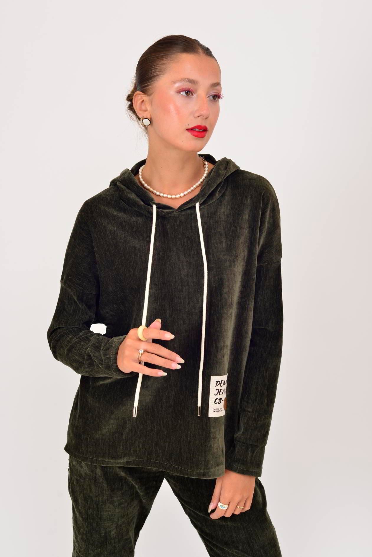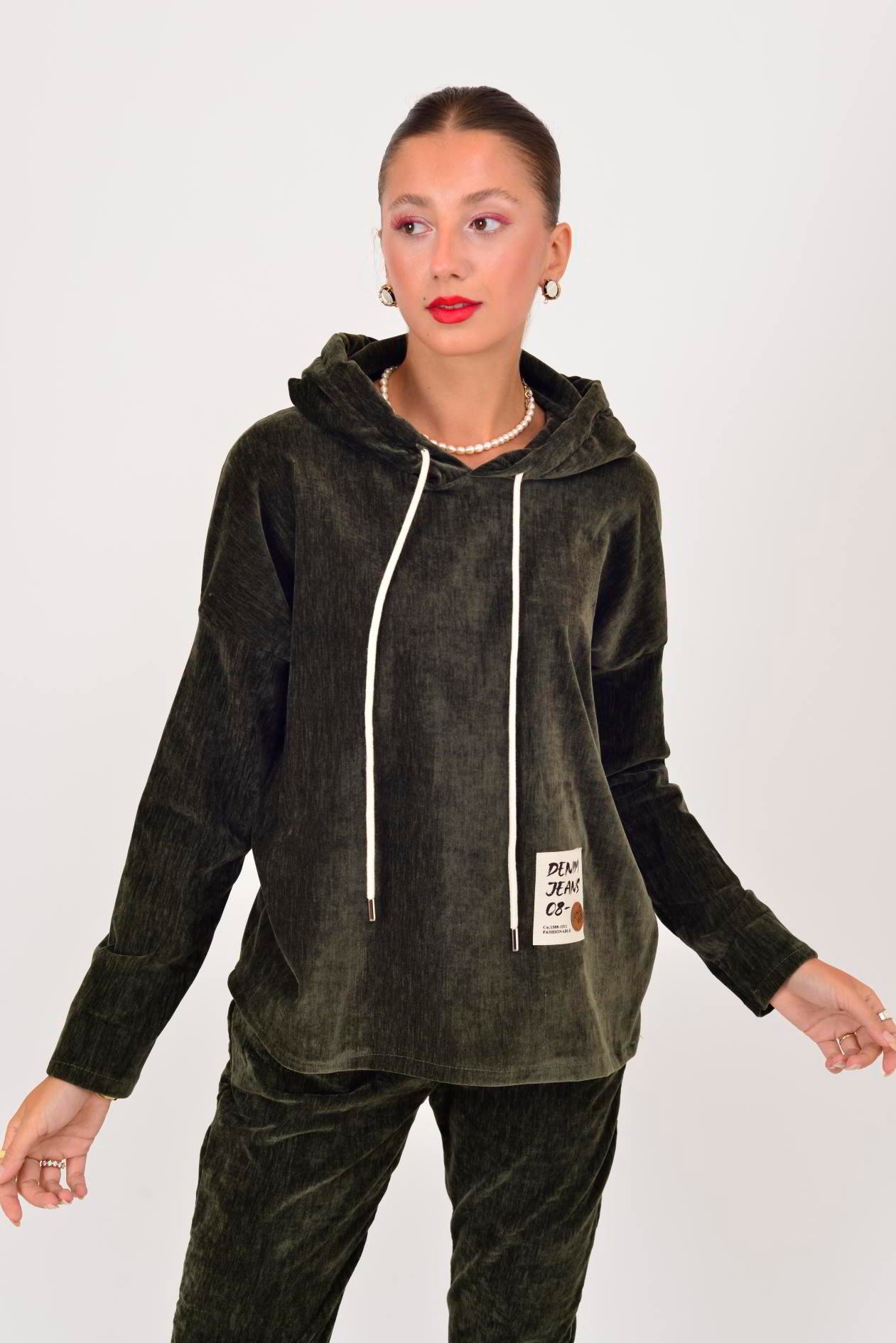 42009 KAPÜŞONLU KADİFE SWEATSHIRT (25K.T.KAP.00043-020)