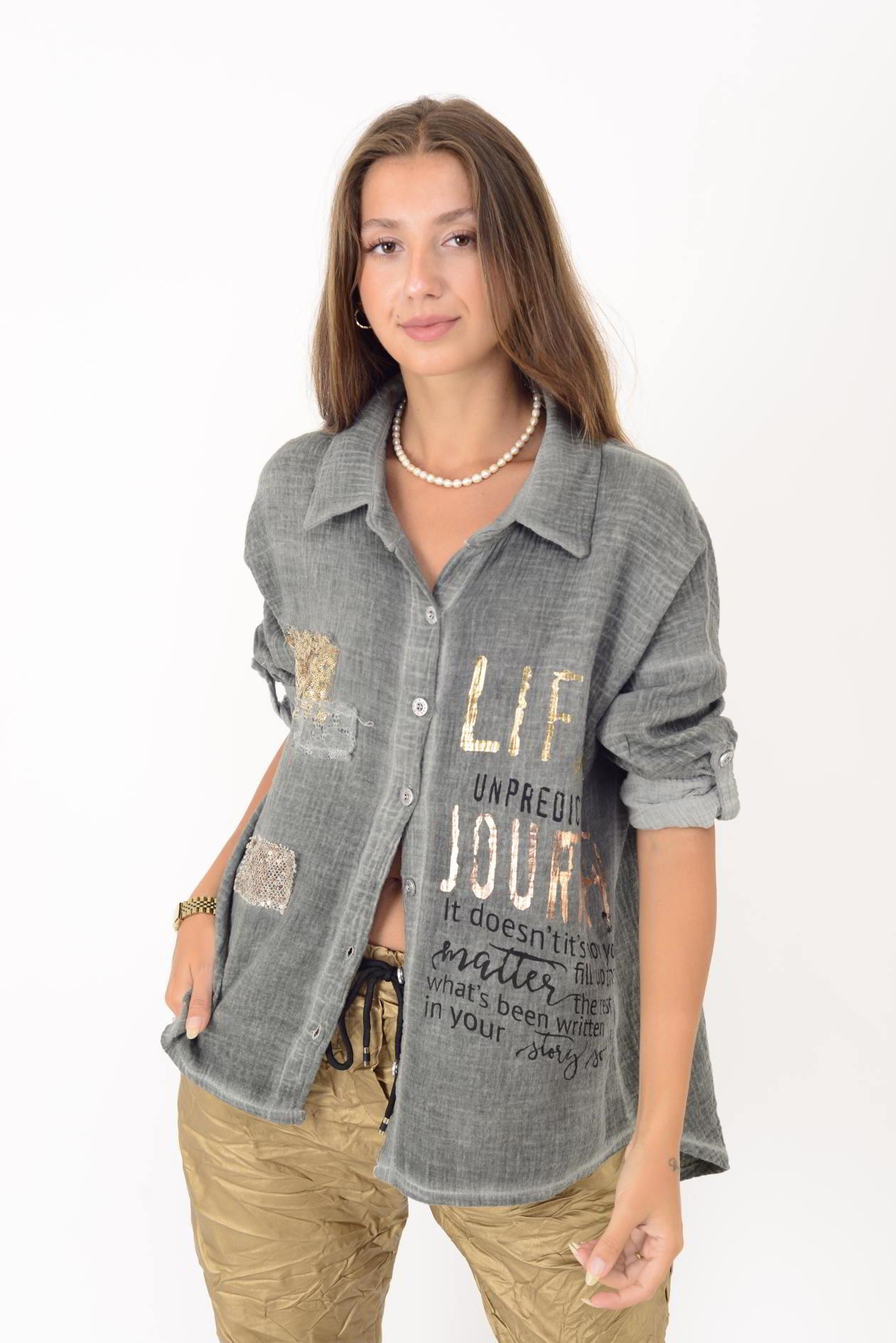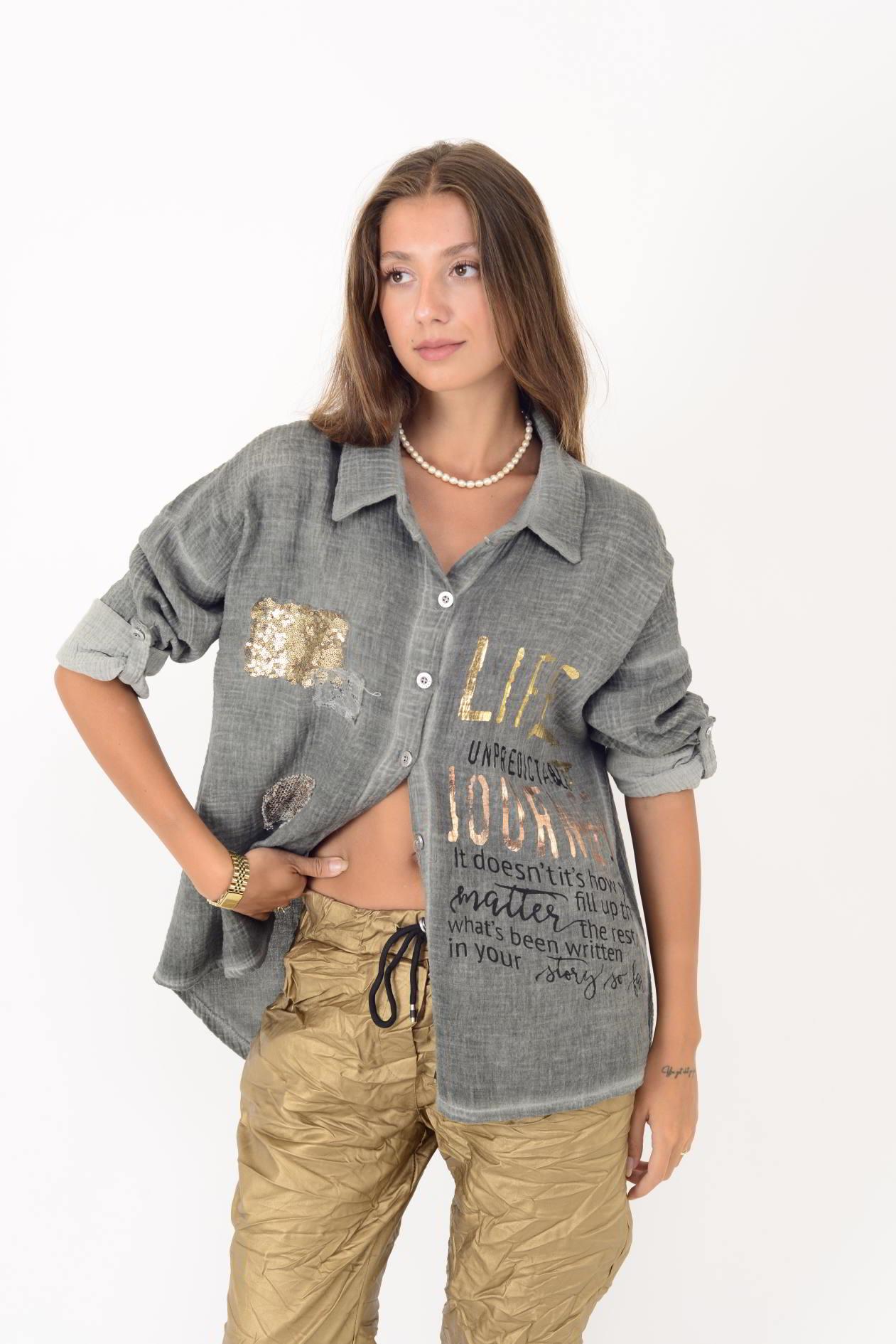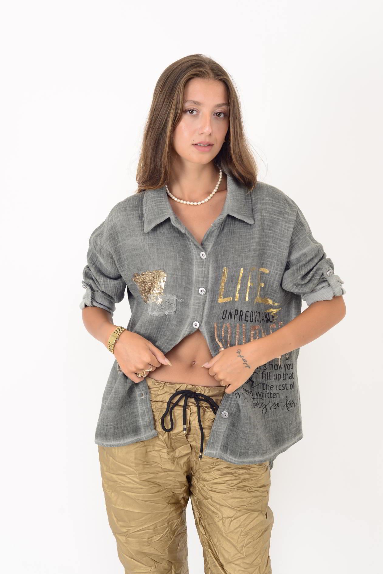 55791 YALDIZLI YAZI DESENLİ PAYETLİ MUSLİN GÖMLEK (25K.T.GML.00015-020)