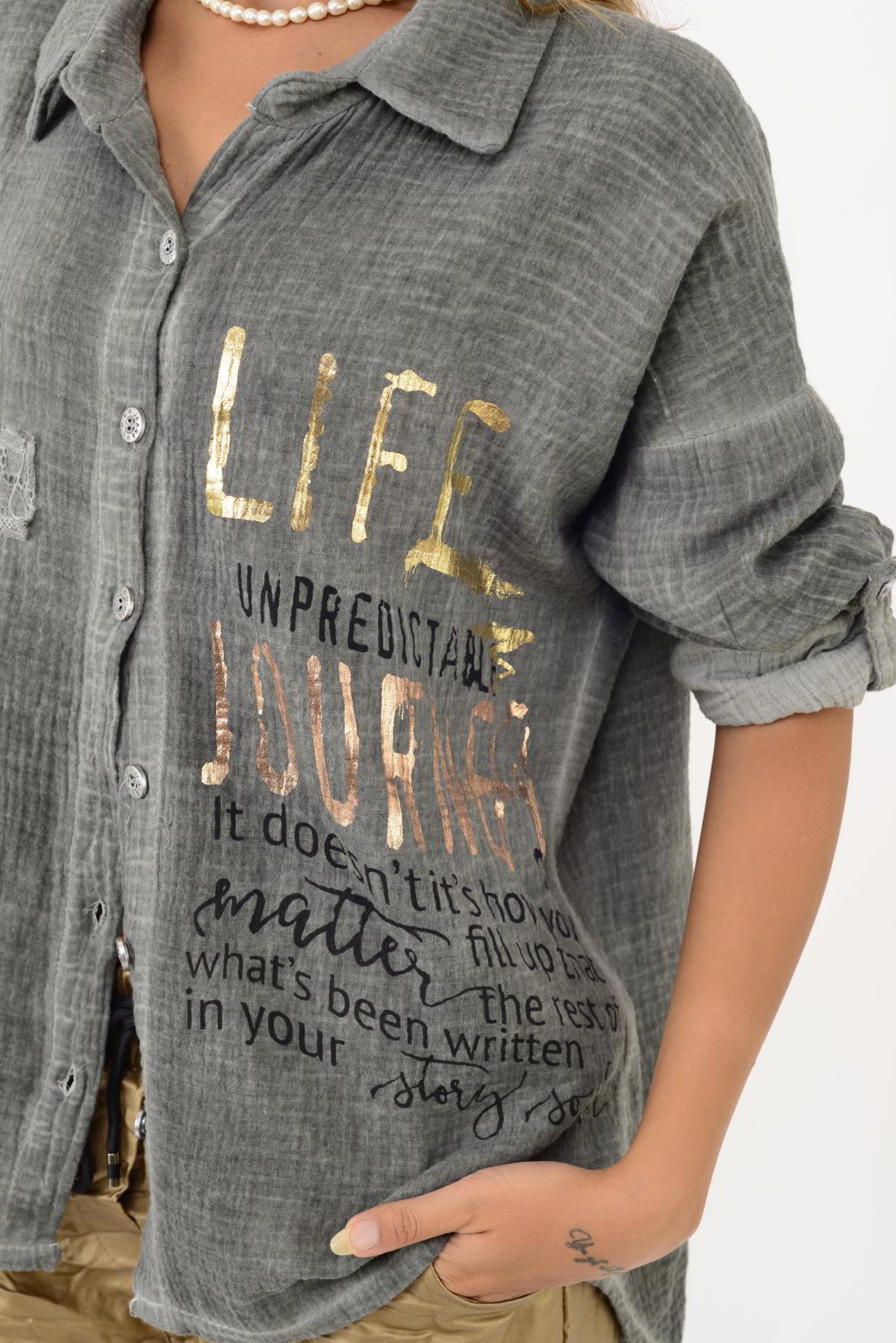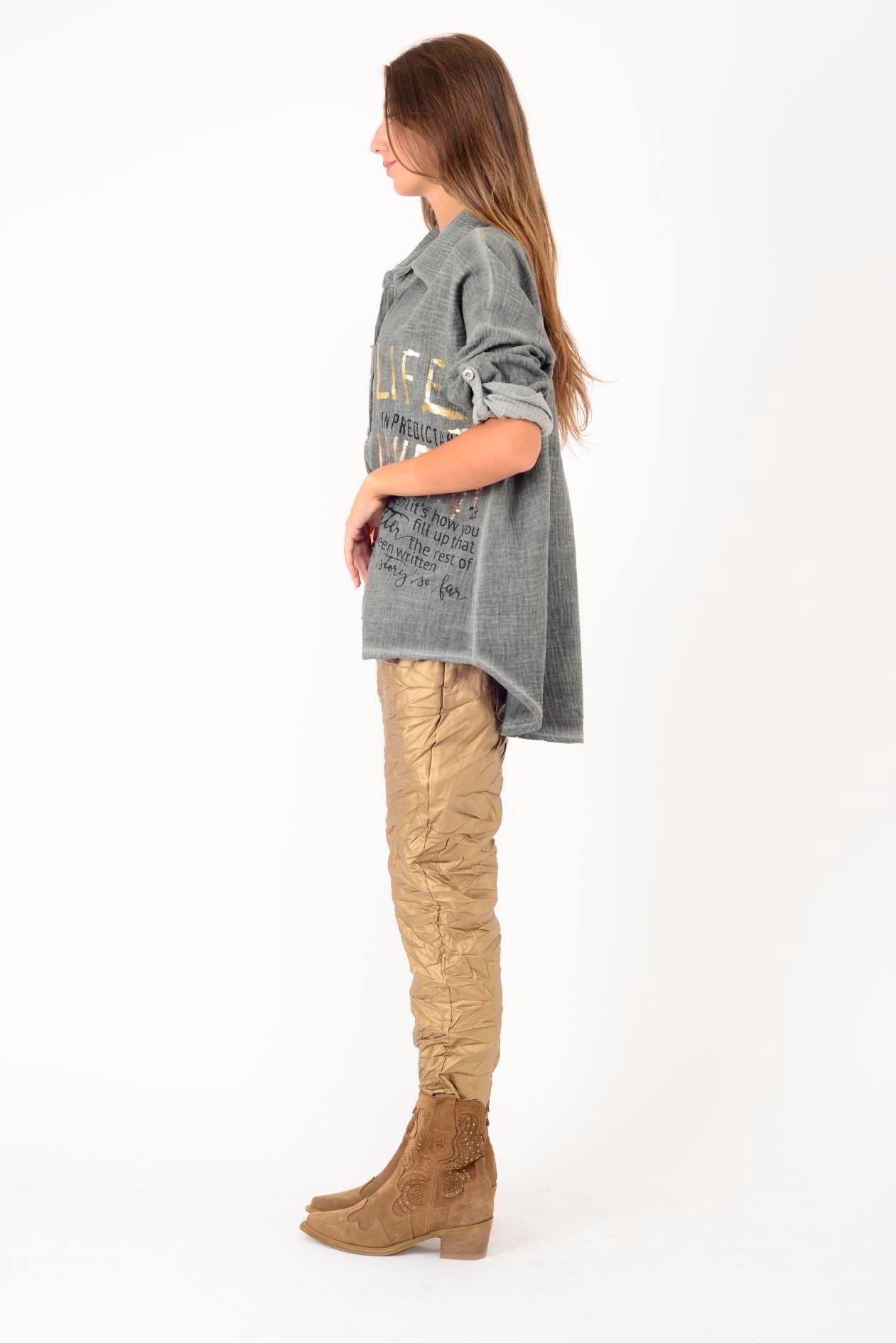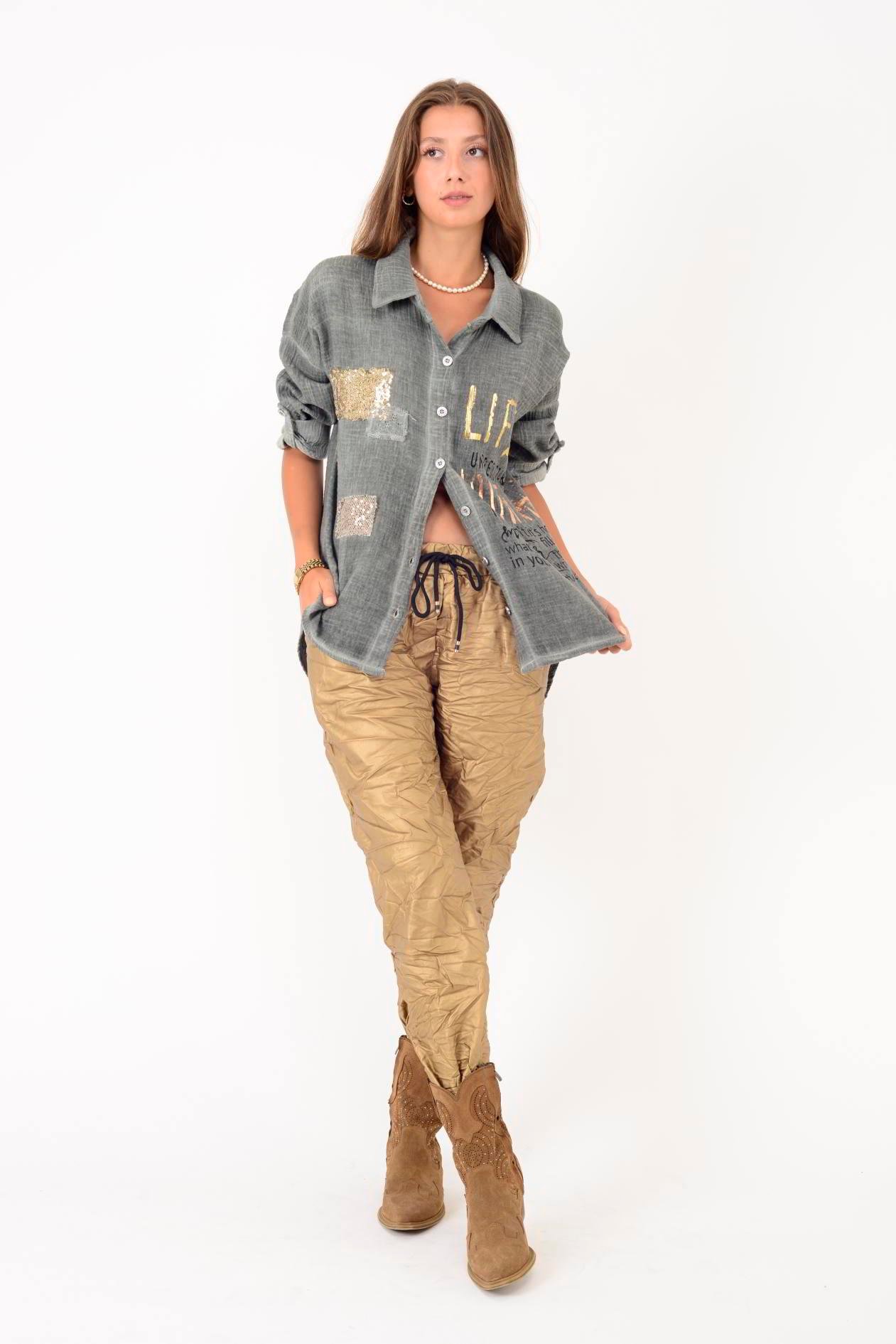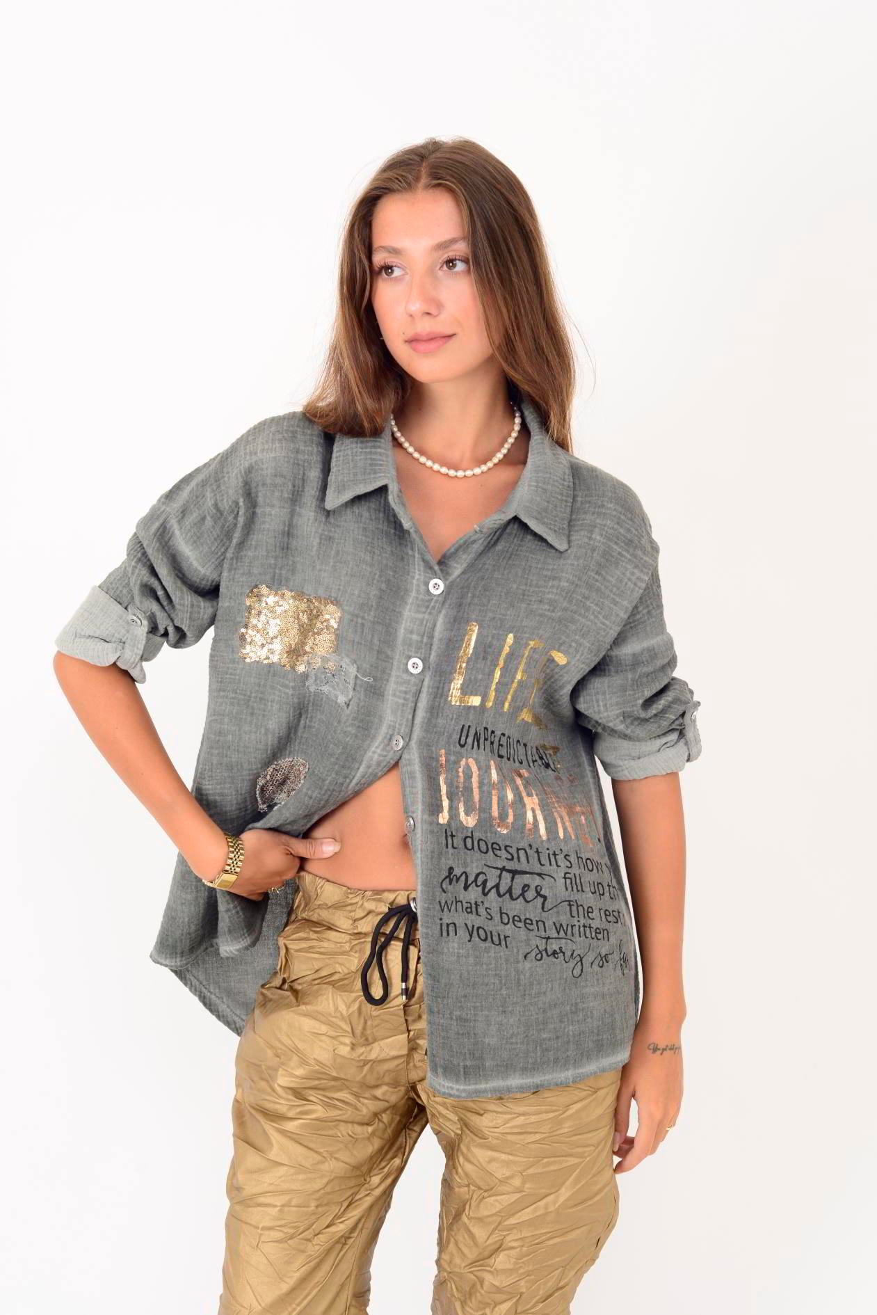 55791 YALDIZLI YAZI DESENLİ PAYETLİ MUSLİN GÖMLEK (25K.T.GML.00015-020)