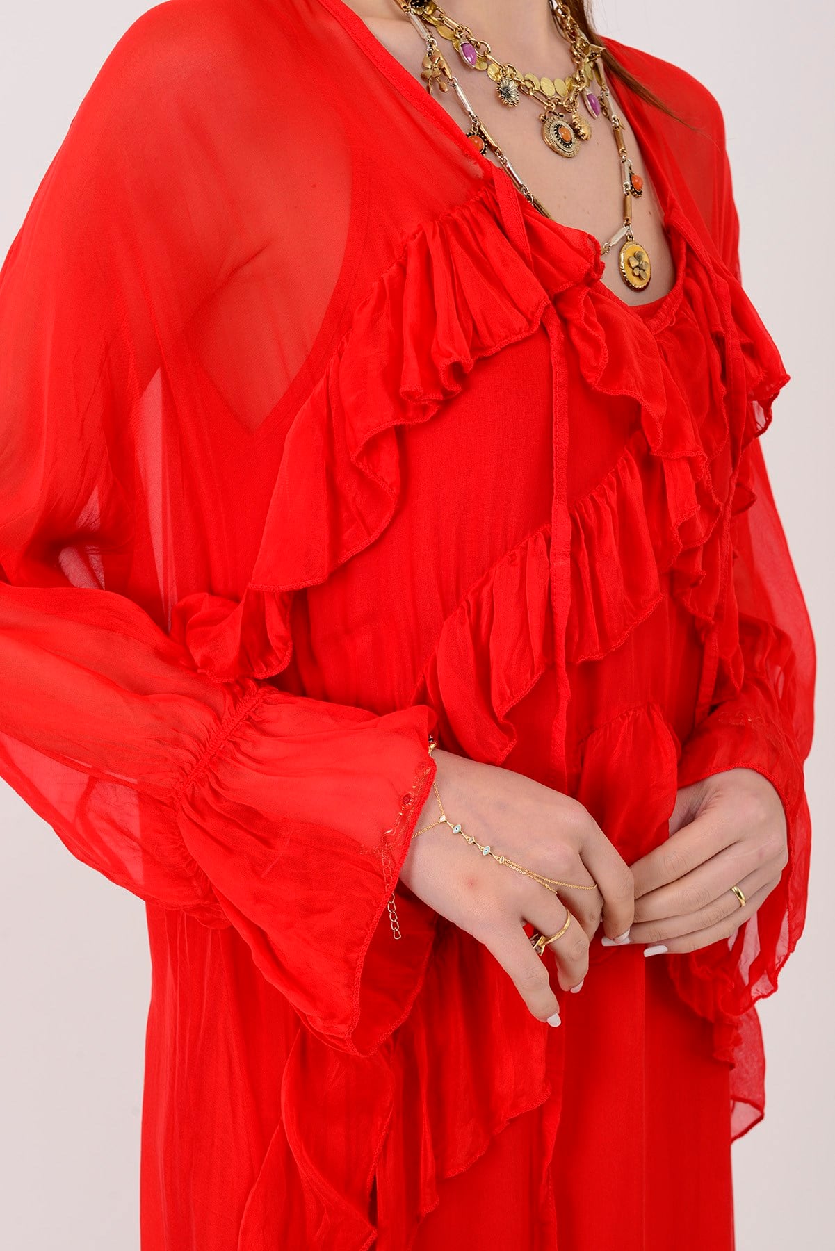 7522 DUBLIN FARBALALI ASTARLI UZUN İPEK ELBİSE (26Y.T.ELB.00022-002)