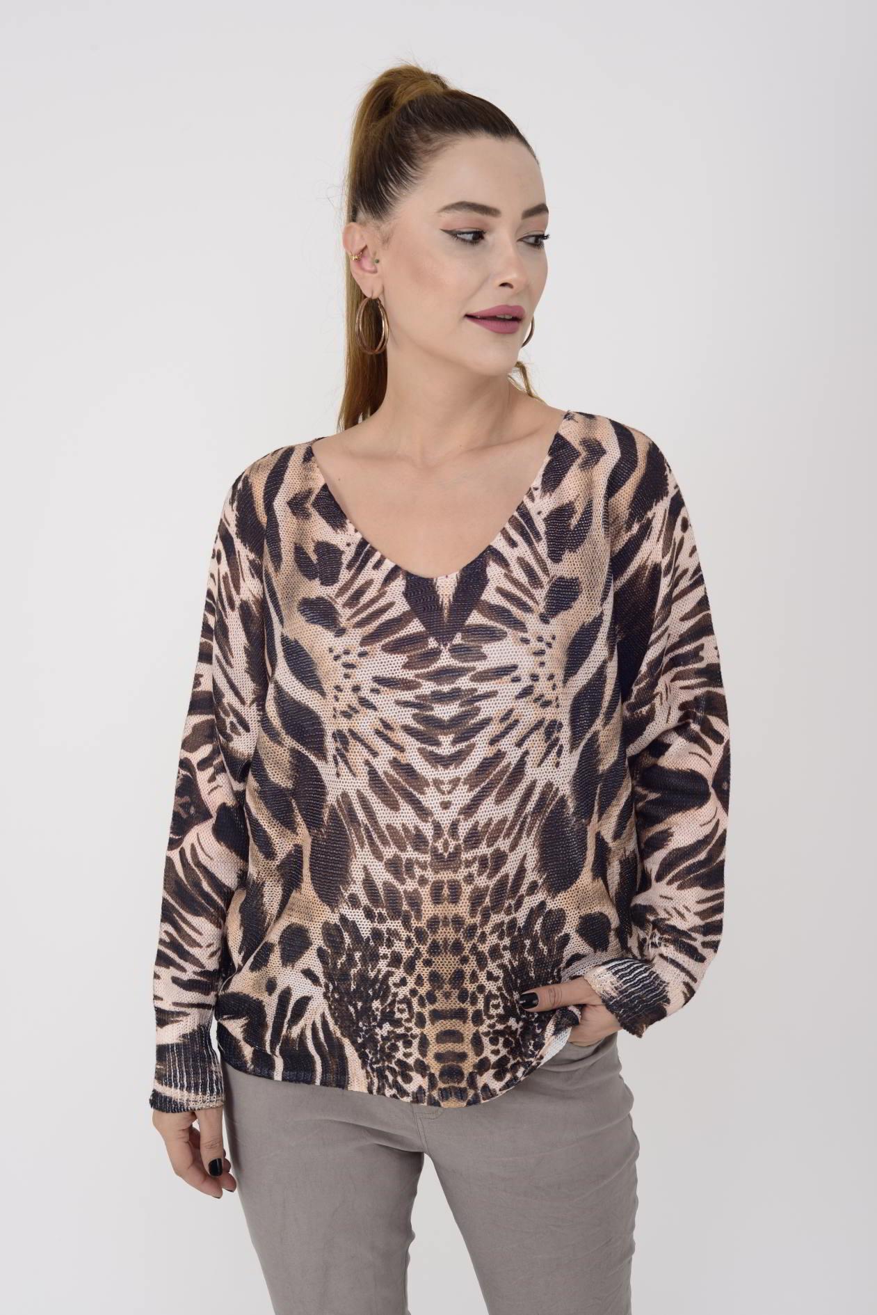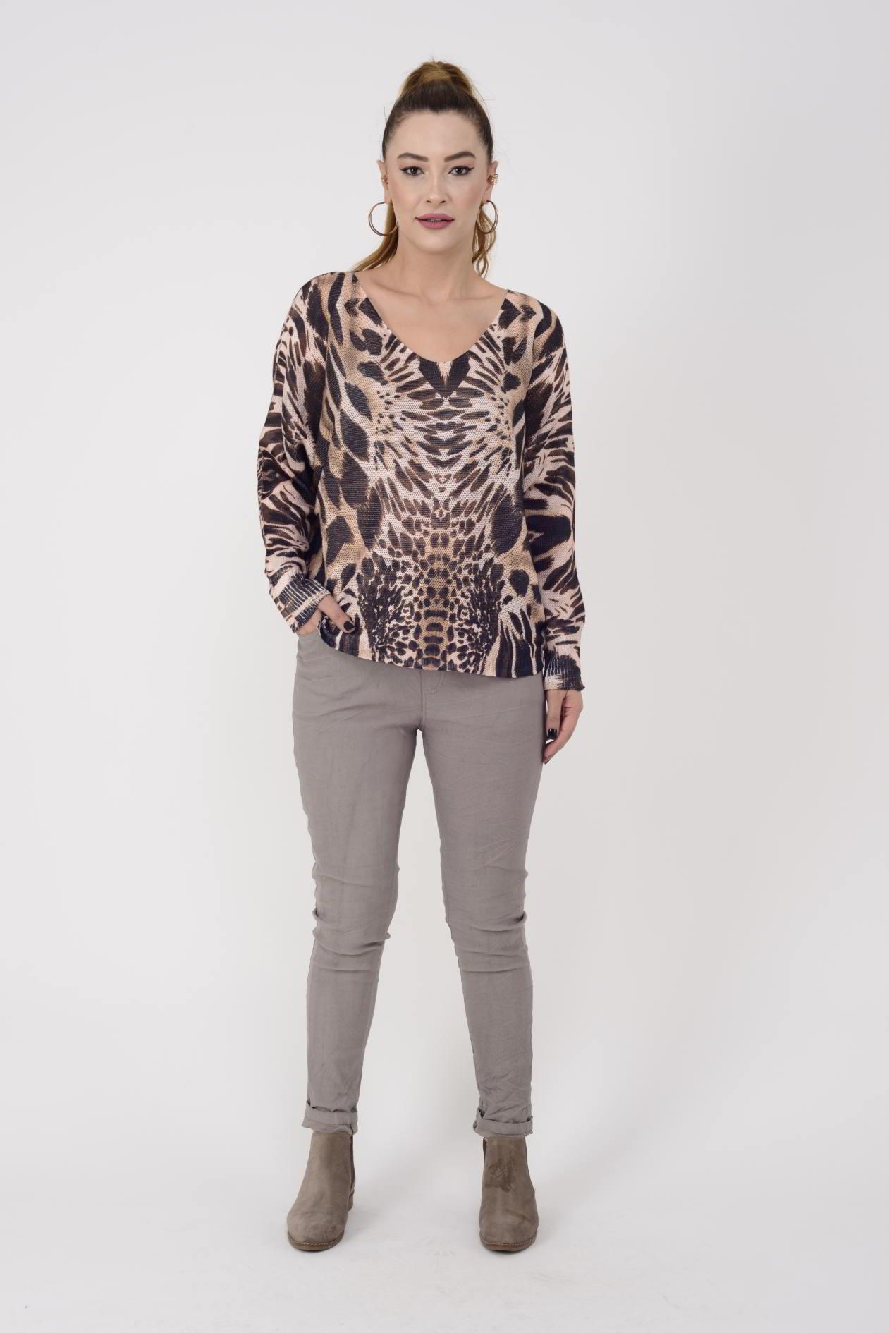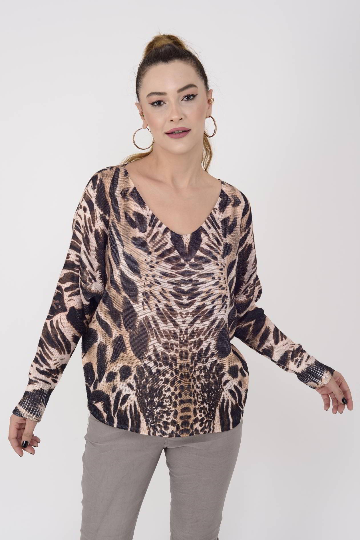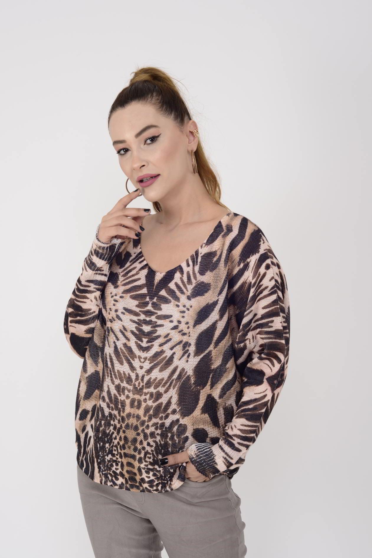 9095-6 MERRY SAFARİ DESEN MERSERİZE BLUZ (24K.T.BLZ.00006-016)