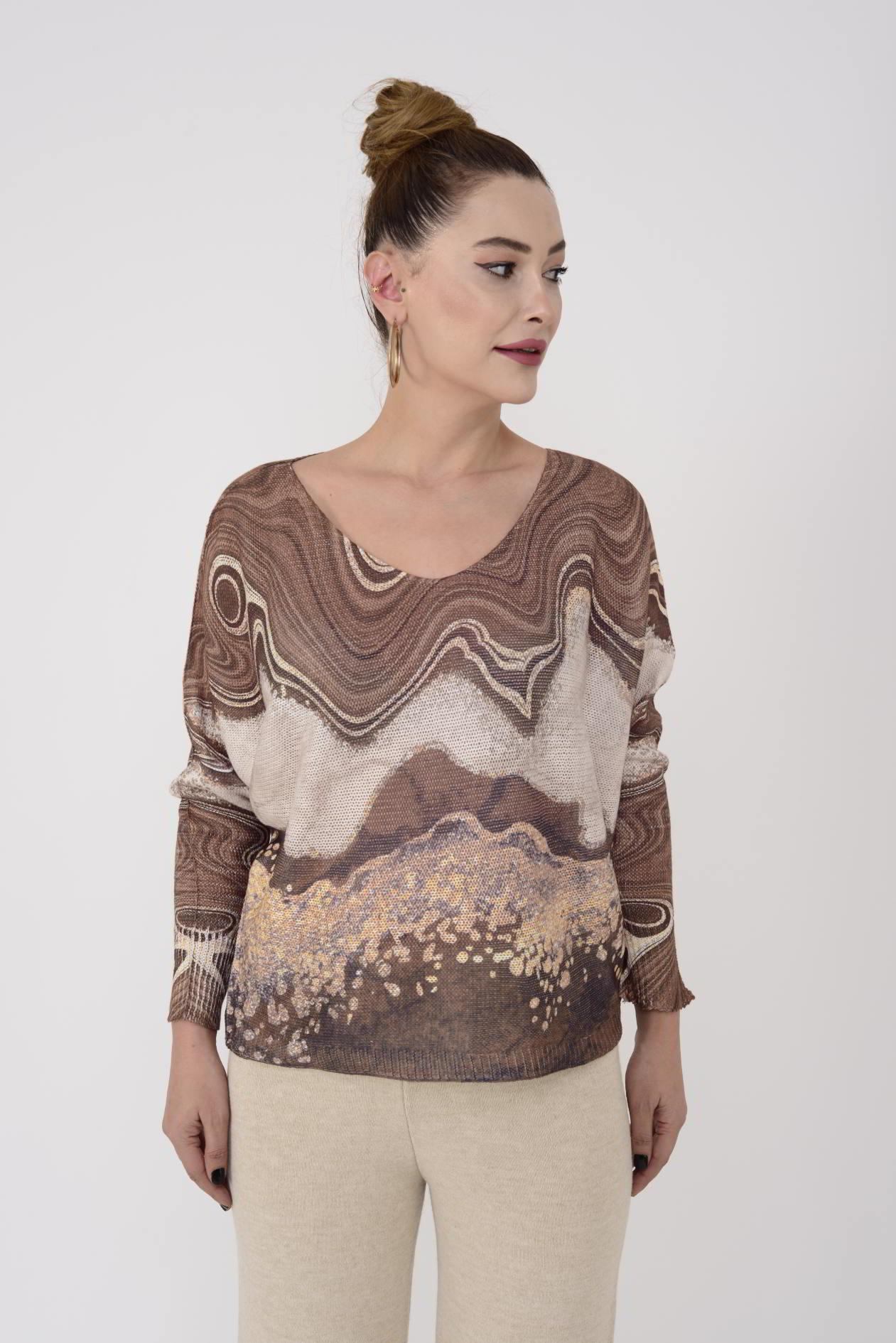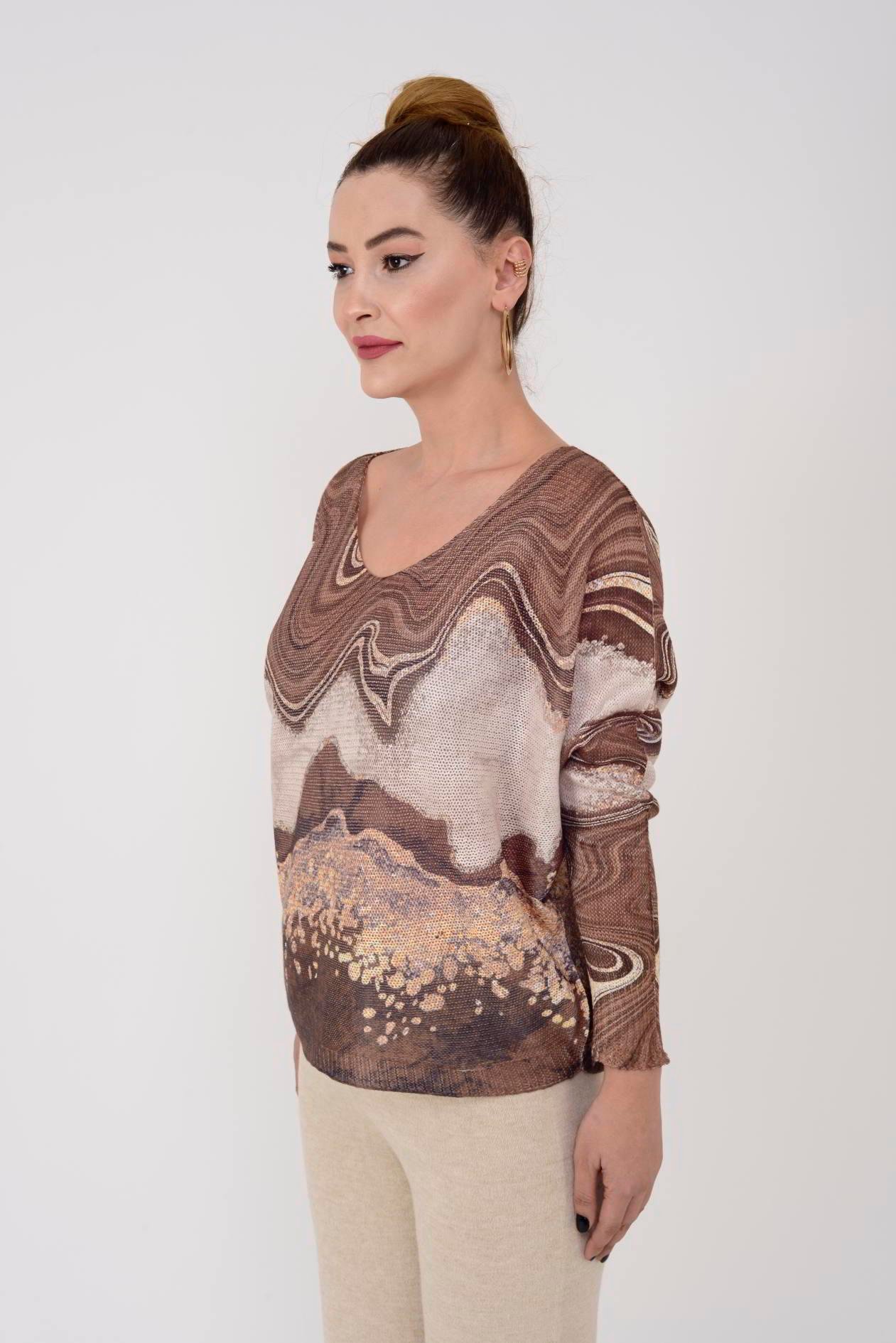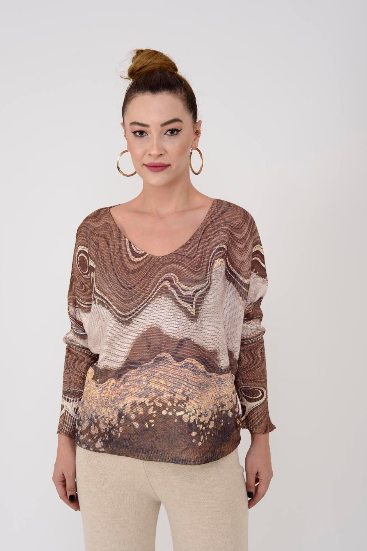 9095-7 MERRY MAGMA DESEN MERSERİZE BLUZ (24K.T.BLZ.00007-005)