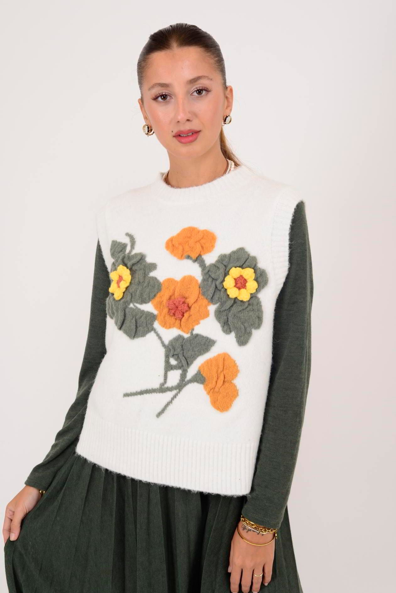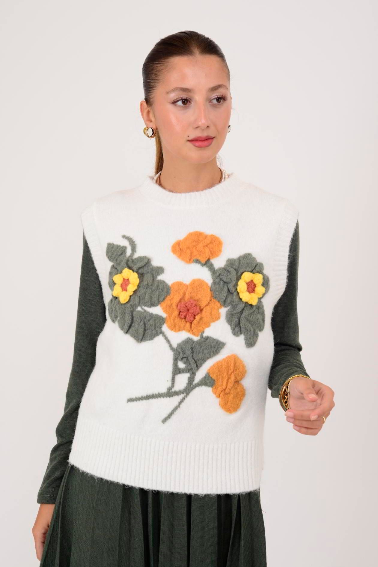 AB836 ÇİÇEK DESEN TRİKO SÜVETER (25K.T.BLZ.00221-003)
