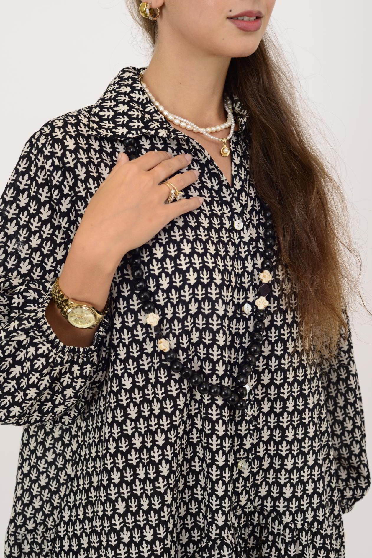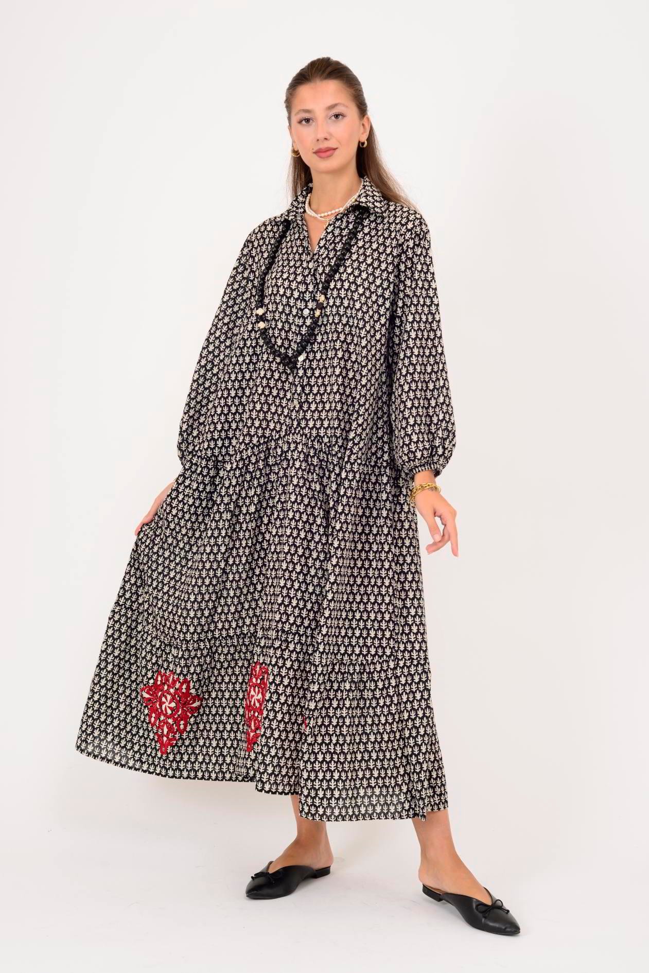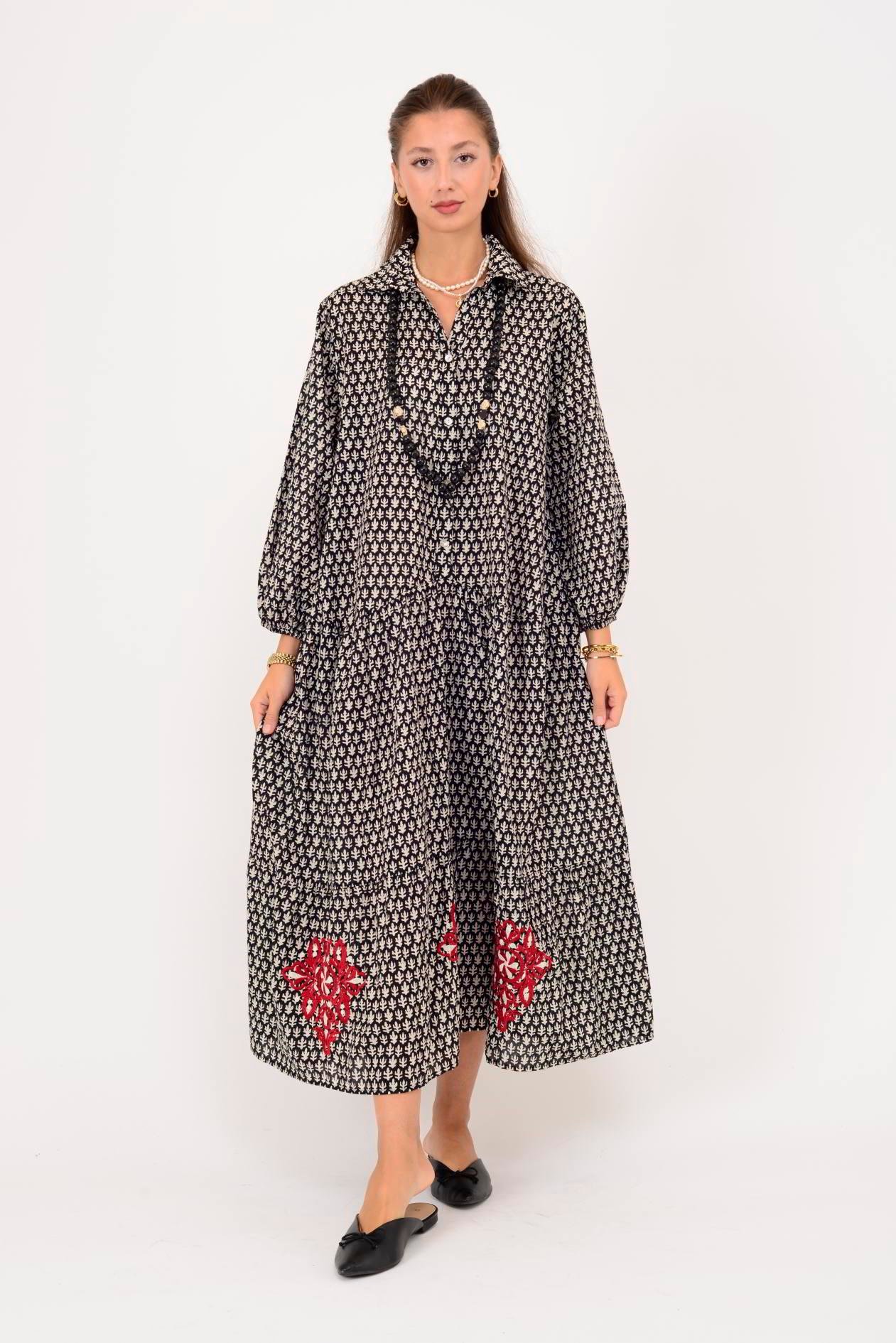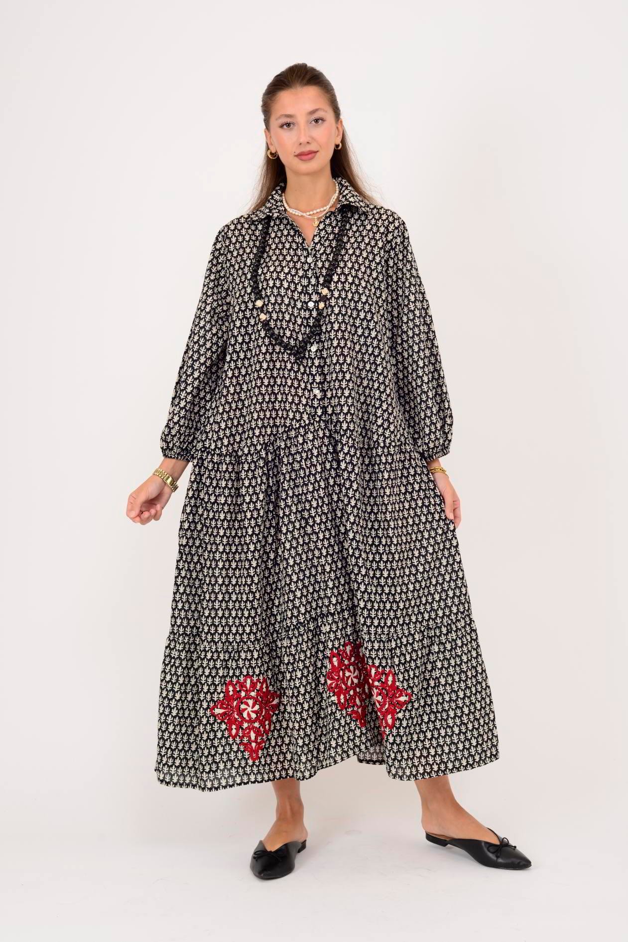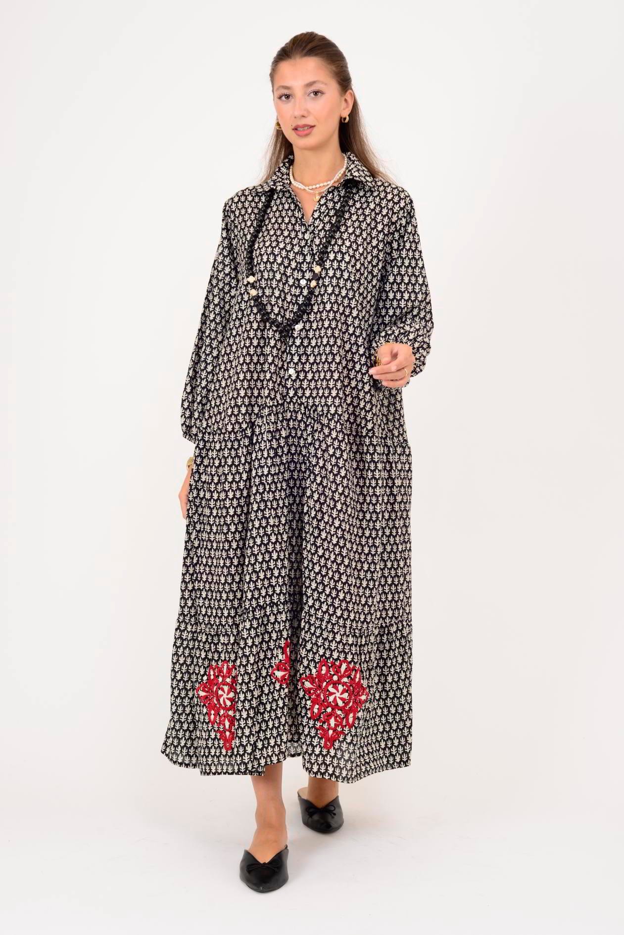 AN10522 MARIN NAKIŞ DETAYLI GÖMLEK ELBİSE (25Y.T.ELB.00431-B2776-V5)
