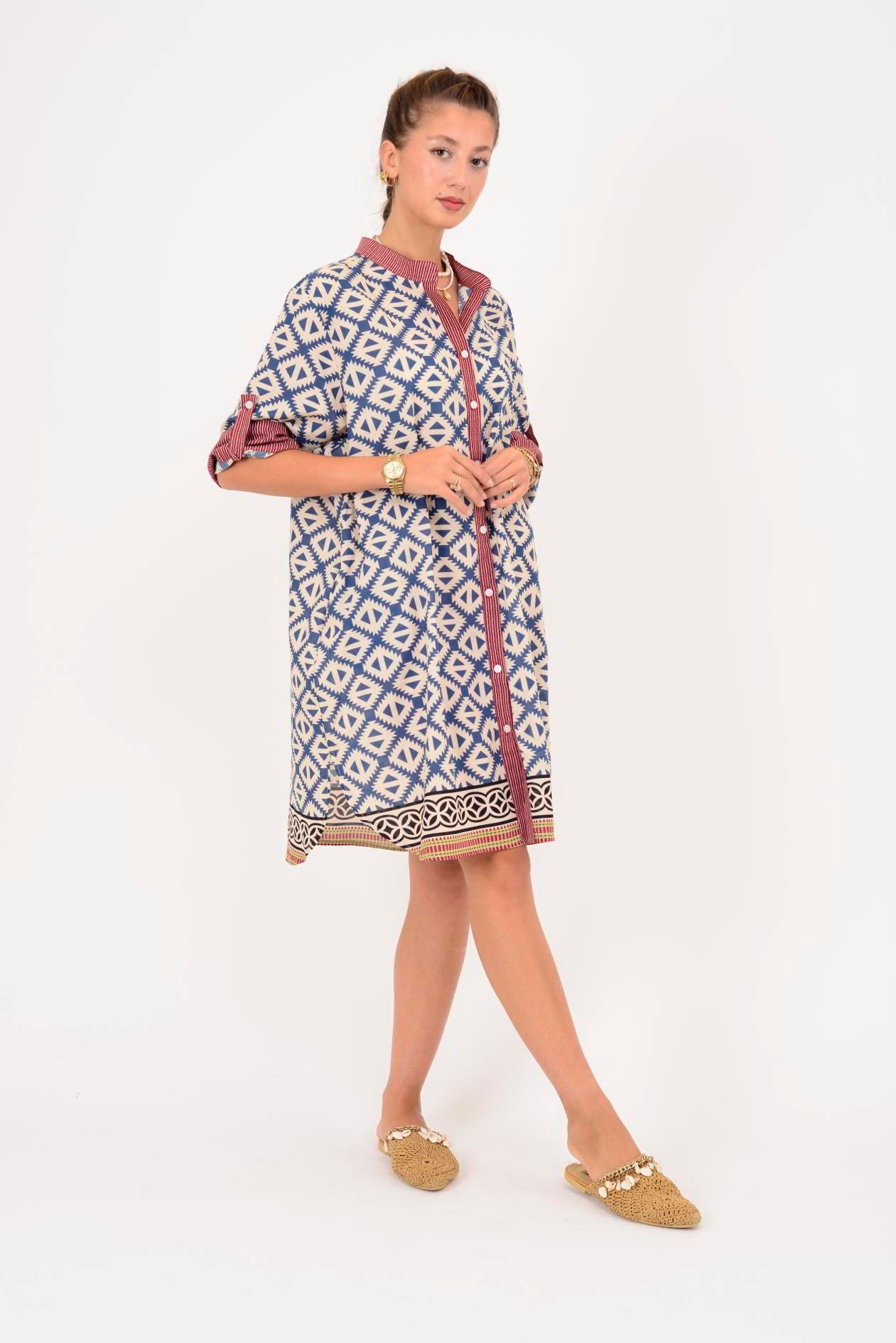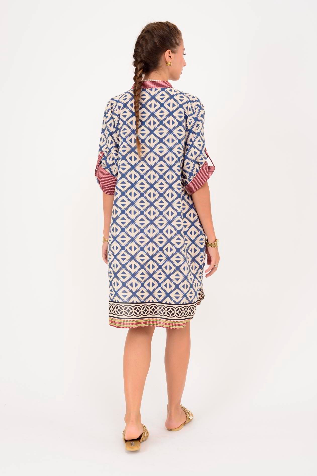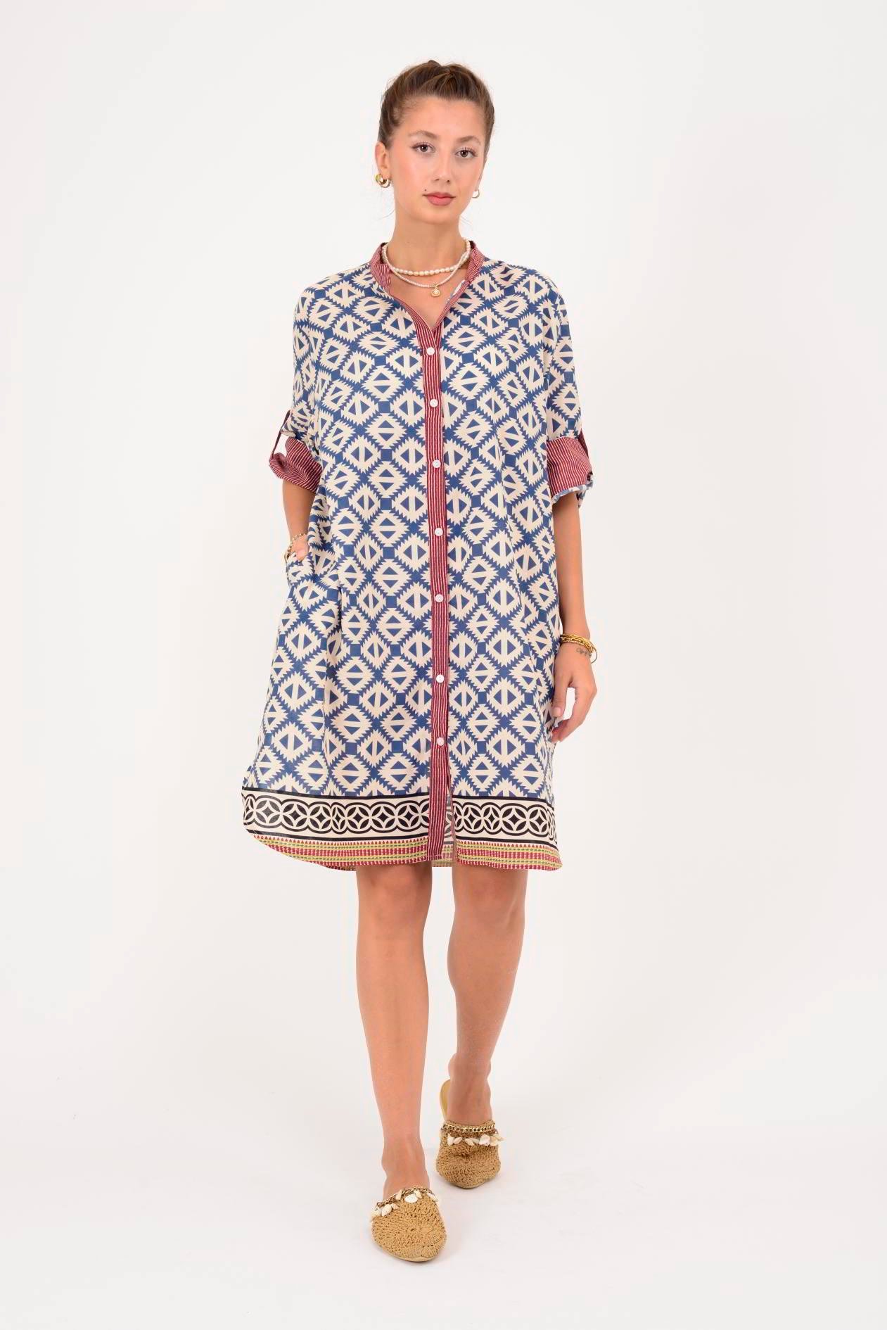 AN10557 MARIN GEOMETRİK DESEN KISA ELBİSE (25Y.T.ELB.00244-A6277-V12)
