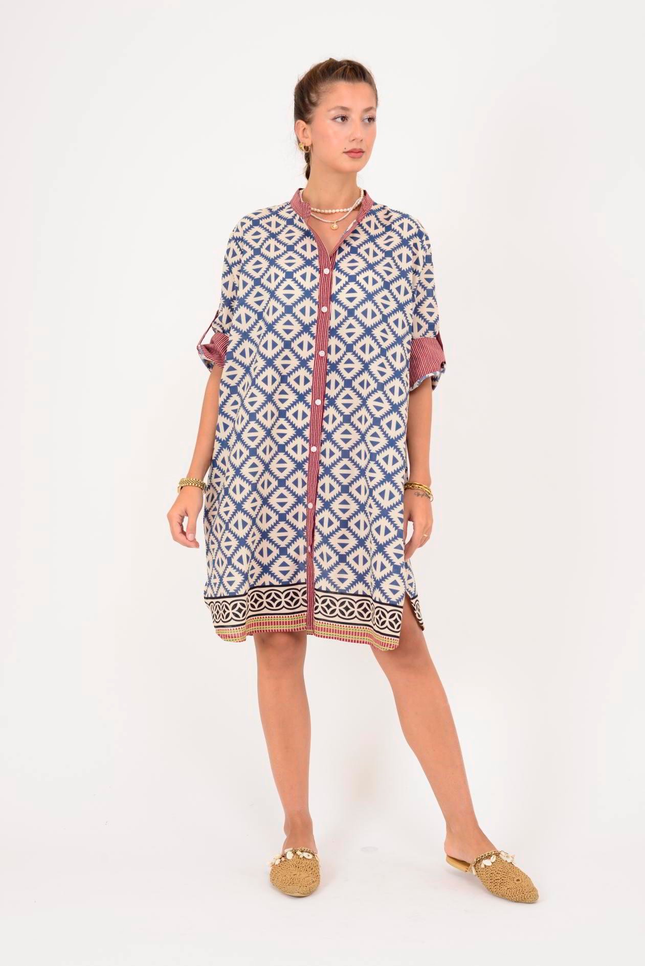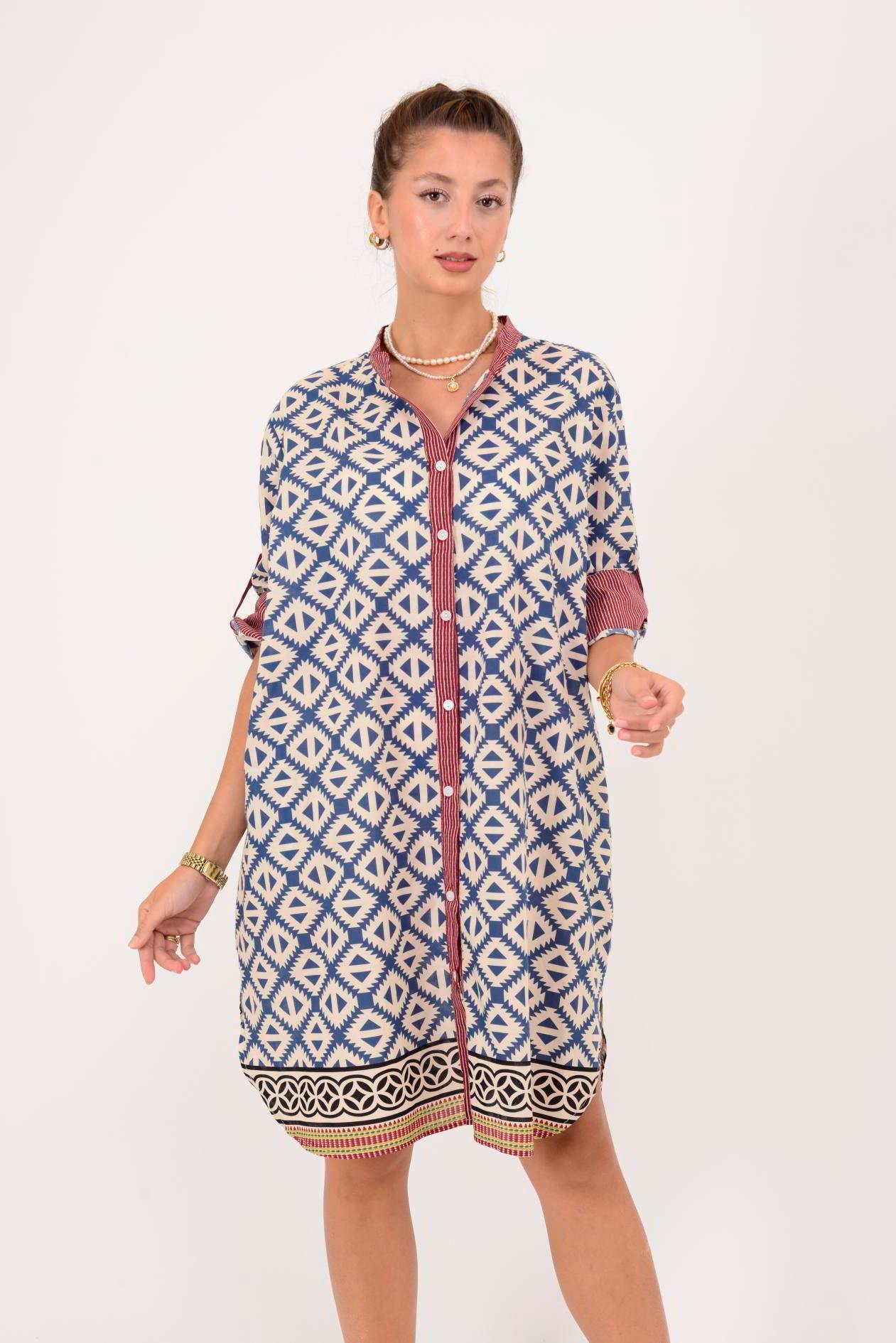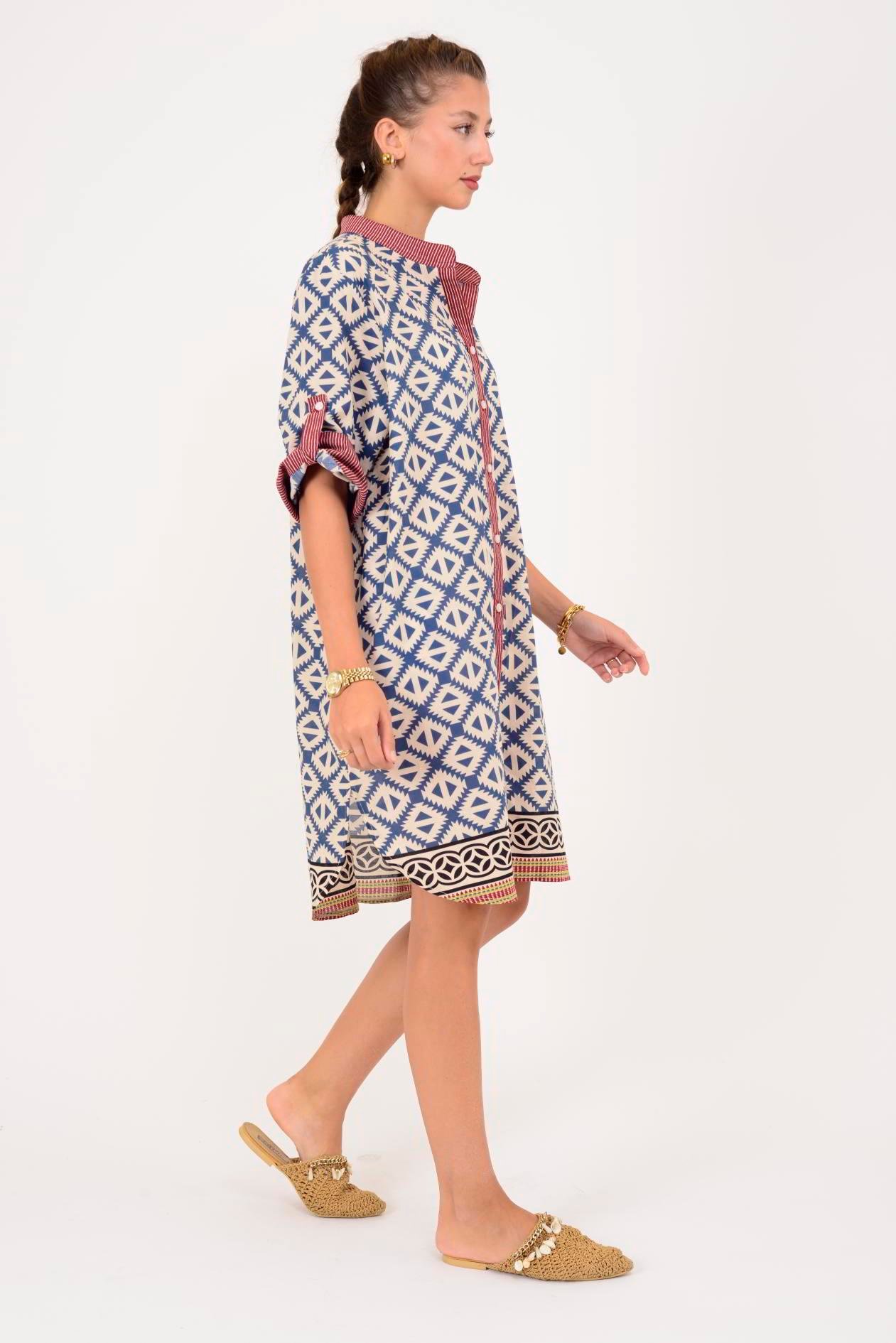 AN10557 MARIN GEOMETRİK DESEN KISA ELBİSE (25Y.T.ELB.00244-A6277-V12)