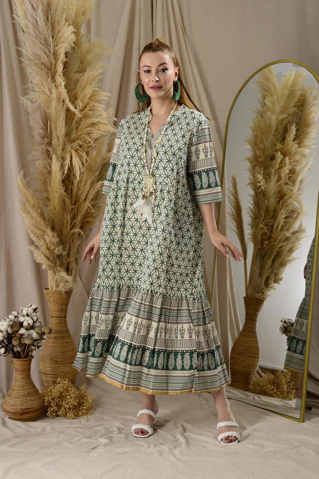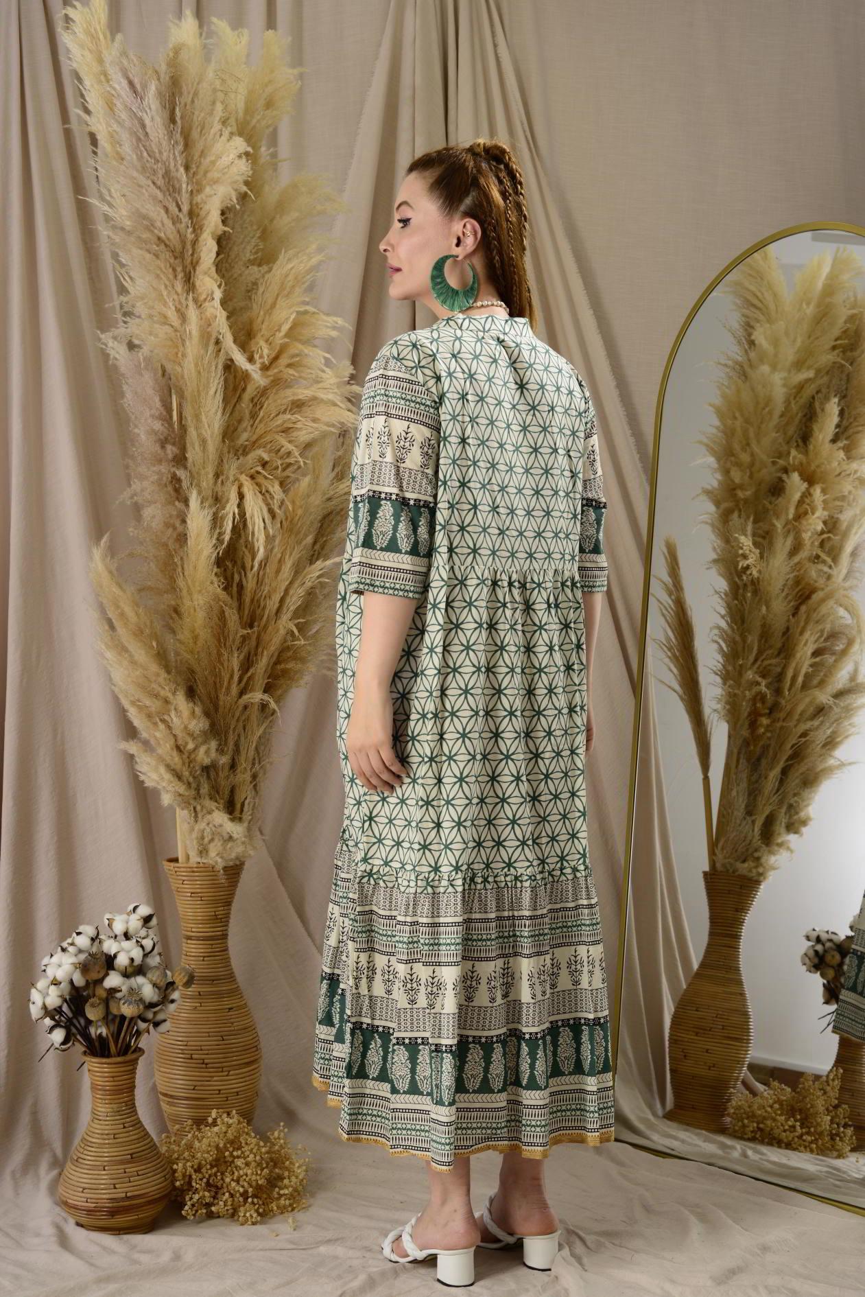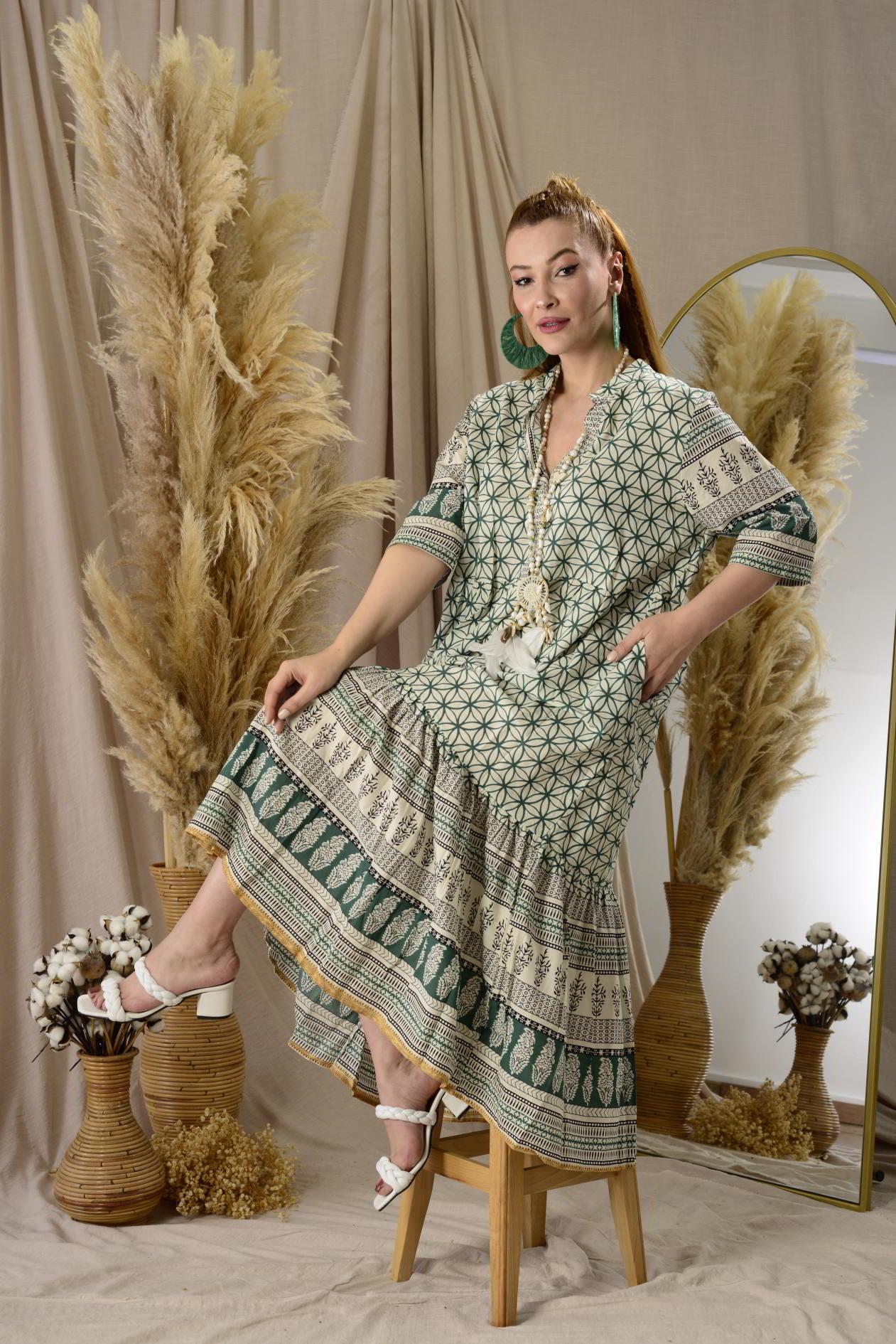 AN10623 GARNİ DETAYLI DÜĞMELİ VOLAN ELBİSE (24Y.T.ELB.00121-A5209-V5)