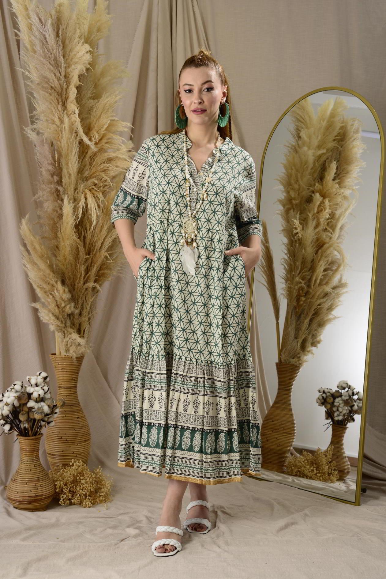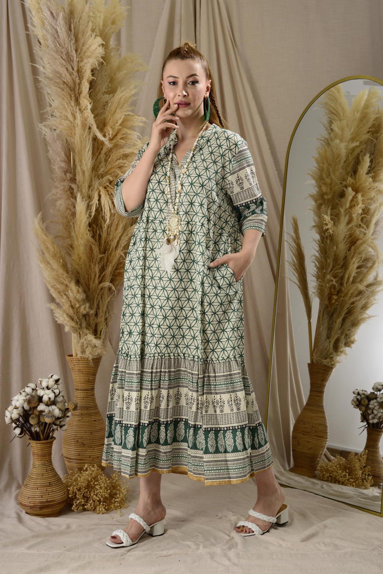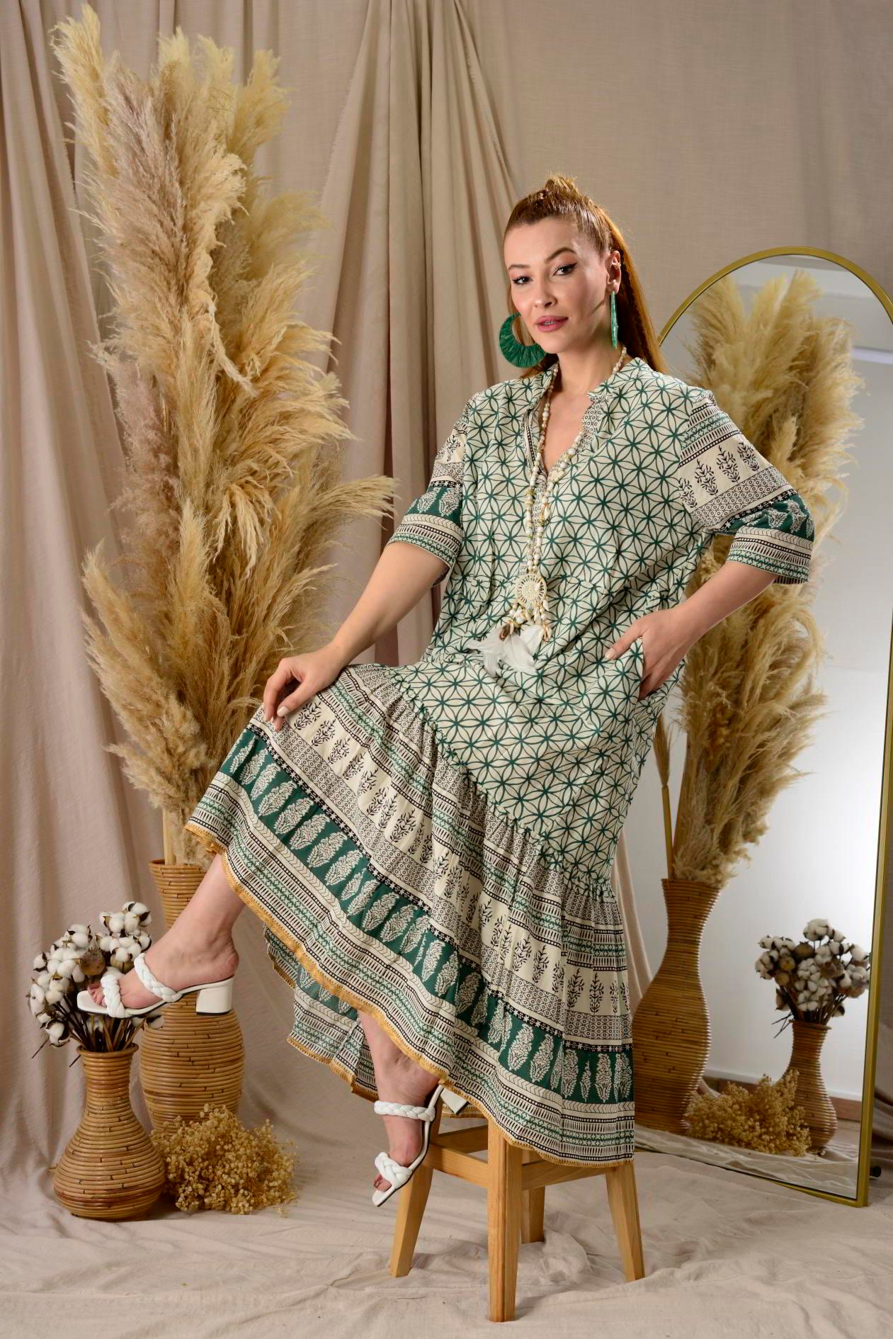 AN10623 GARNİ DETAYLI DÜĞMELİ VOLAN ELBİSE (24Y.T.ELB.00121-A5209-V5)