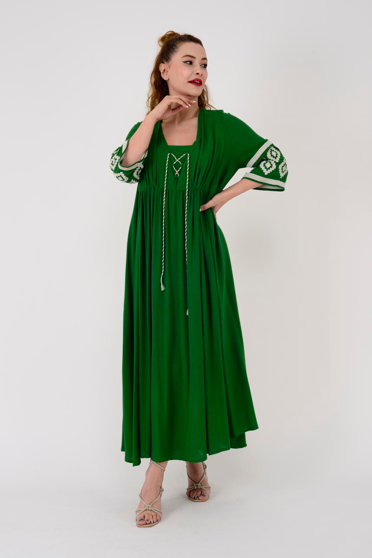 AN10633 PÜSKÜL DETAYLI NAKIŞLI ELBİSE (24Y.T.ELB.00074-0ZY)