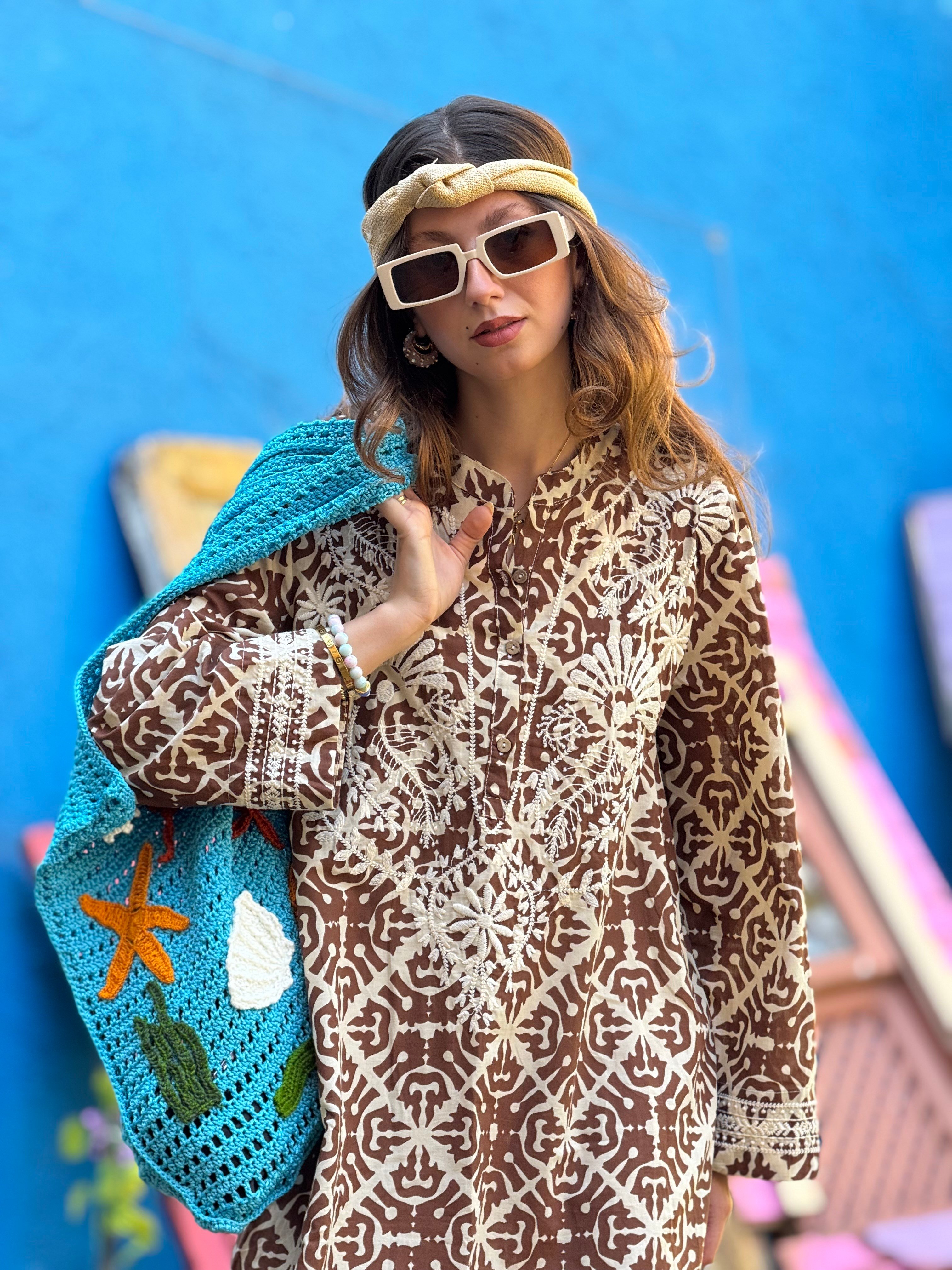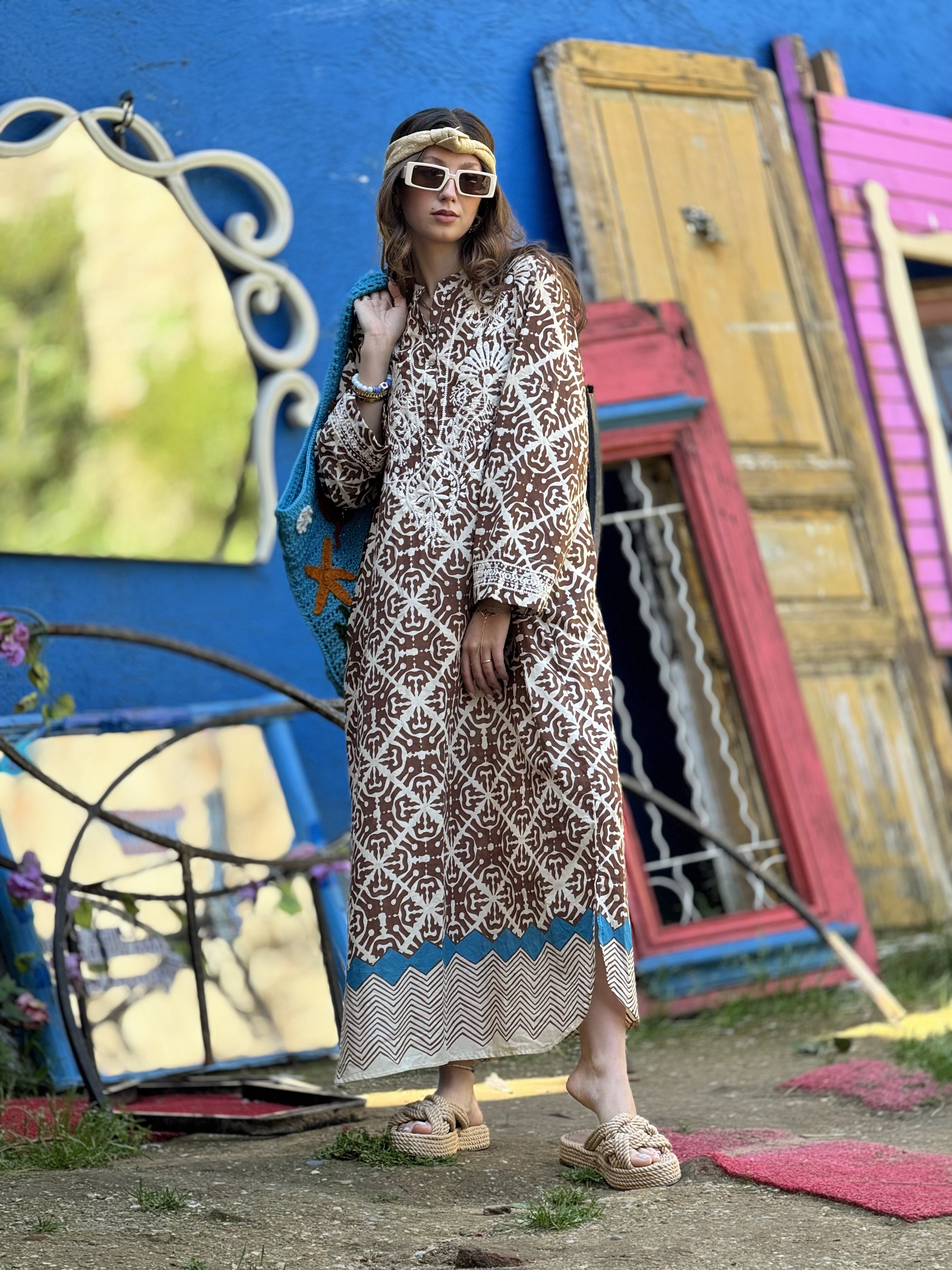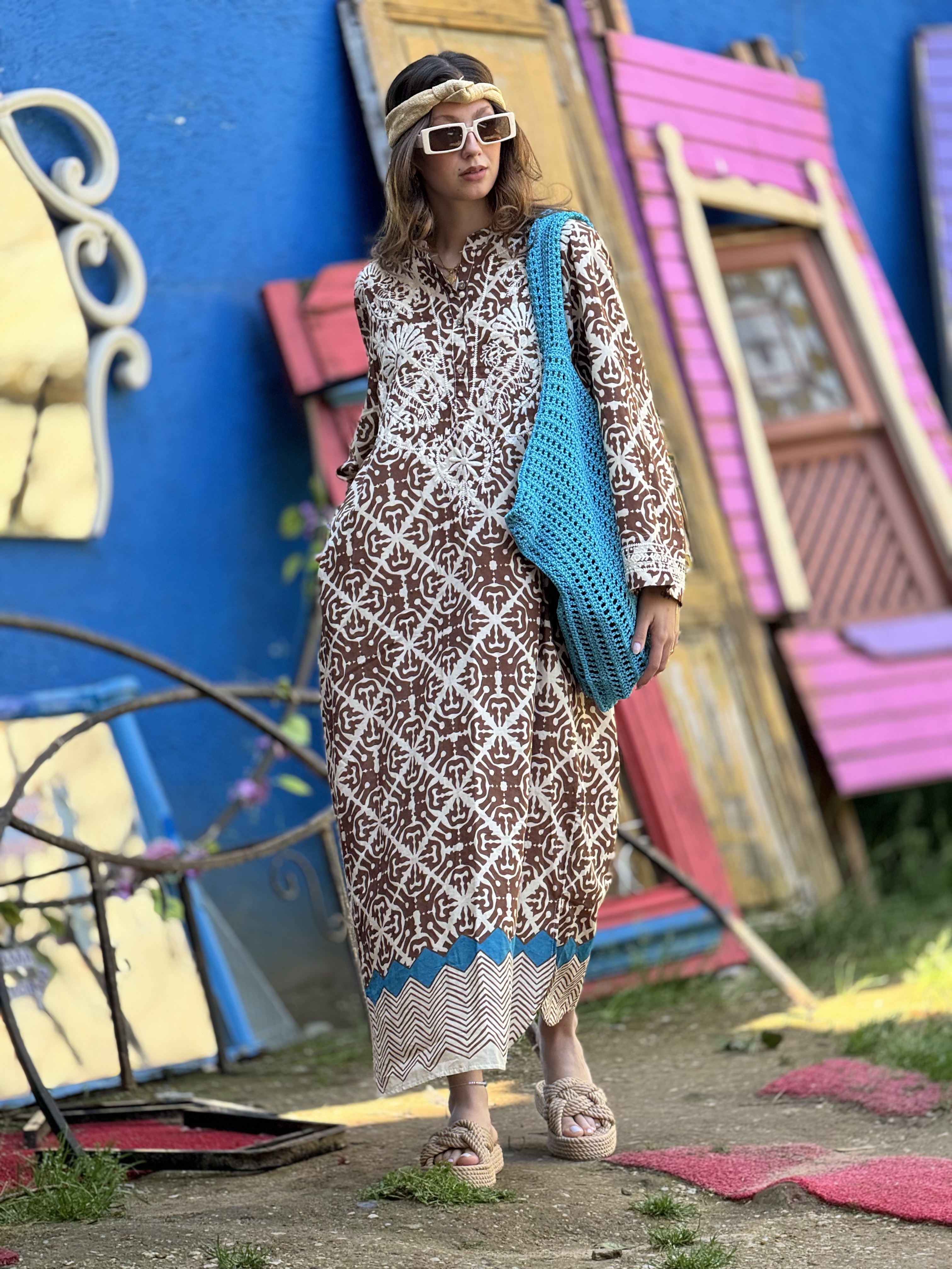 AN10708 MARIN NAKIŞ DETAYLI ELBİSE (24Y.T.ELB.00364-A3678-V4)