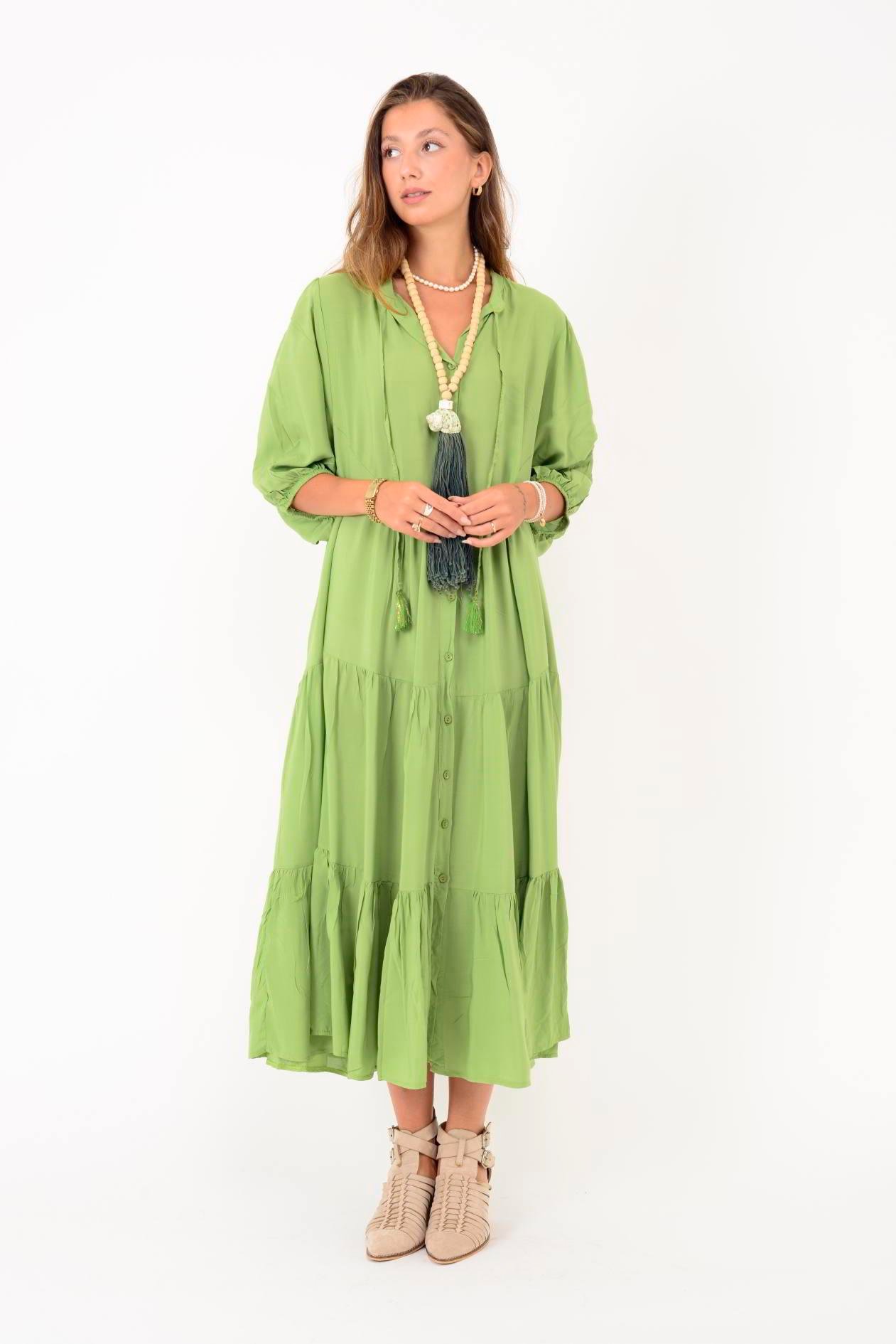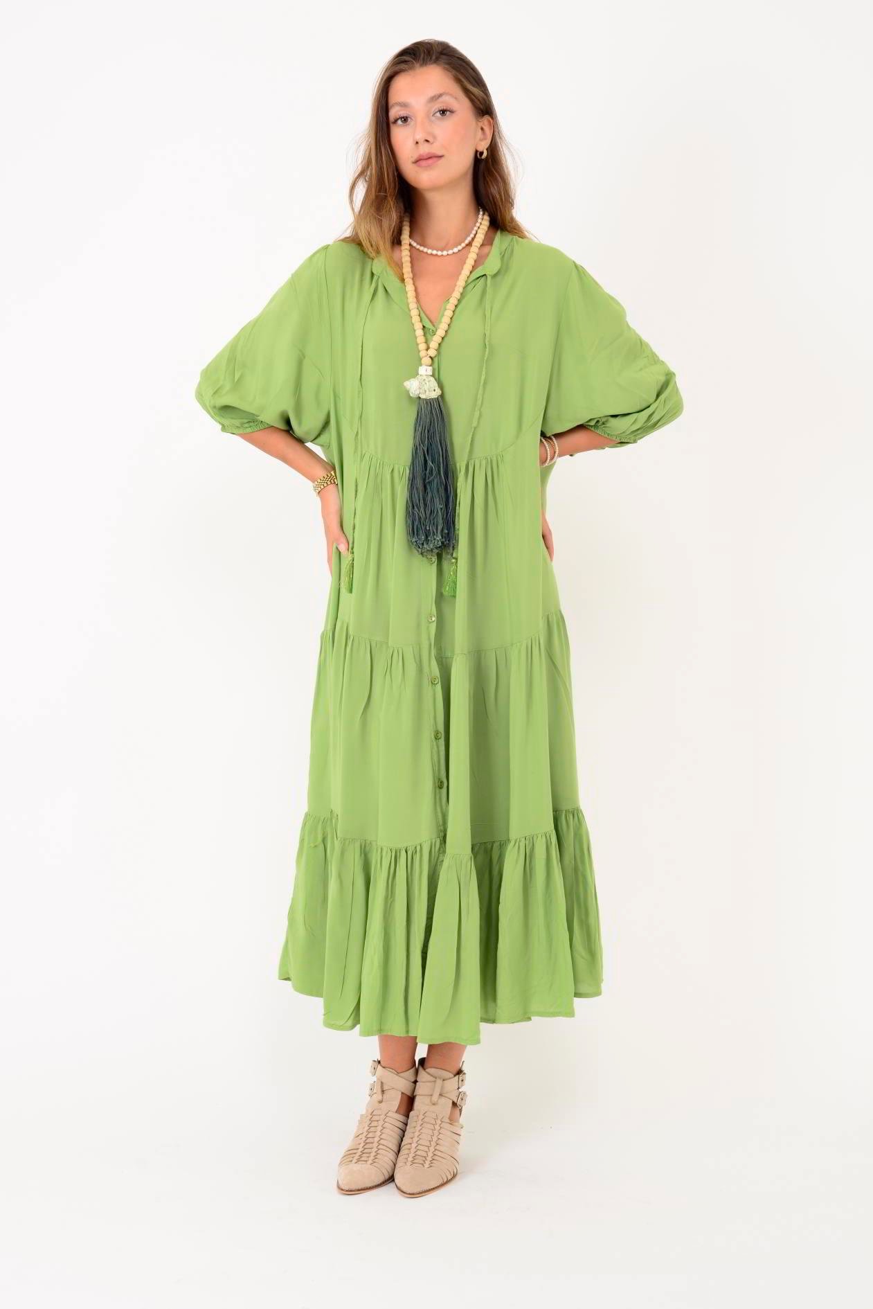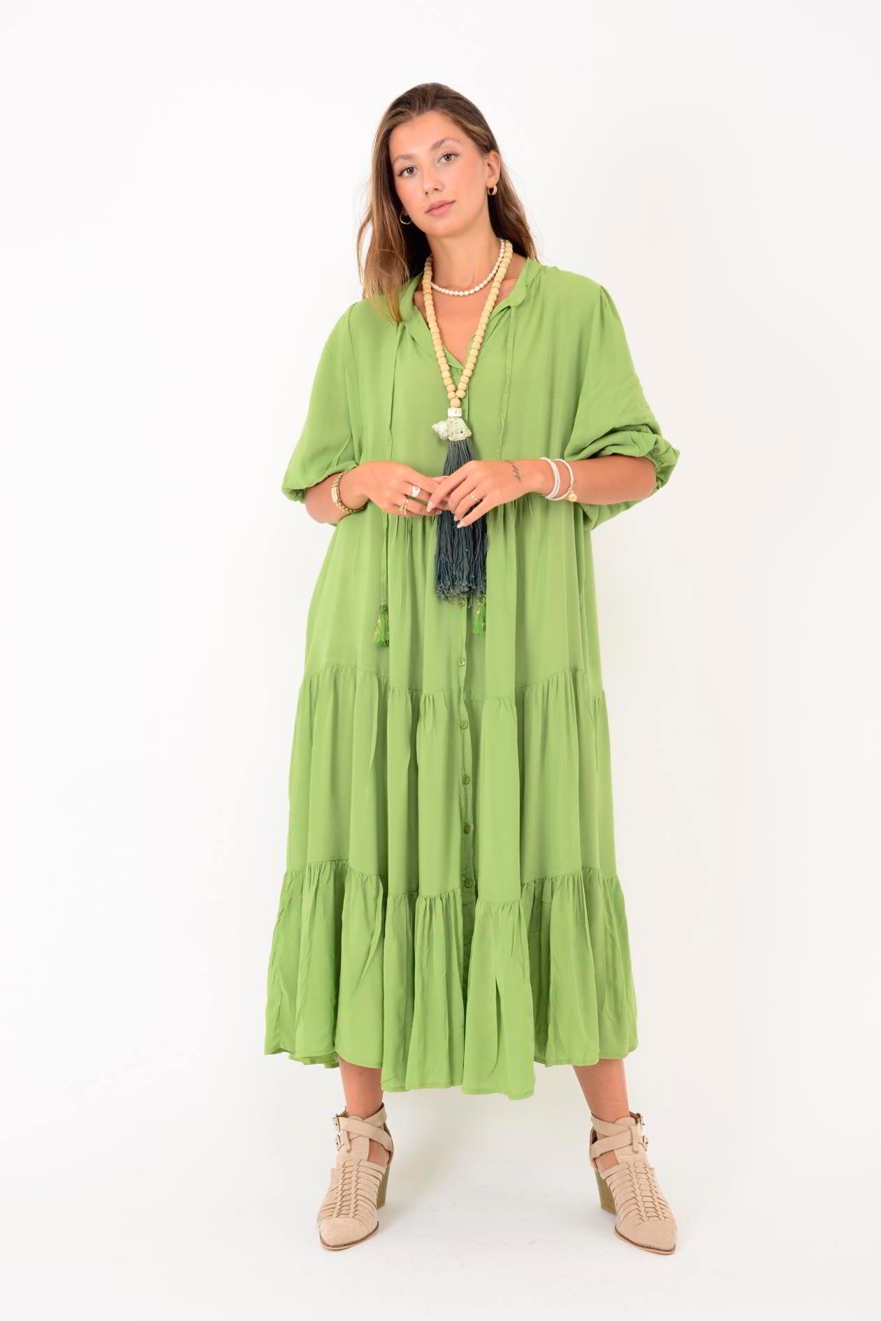 AN10728 CLEMENT BÜZGÜLÜ KOLLU PÜSKÜL DETAYLI VOLANLI ELBİSE (25Y.T.ELB.00456-47)