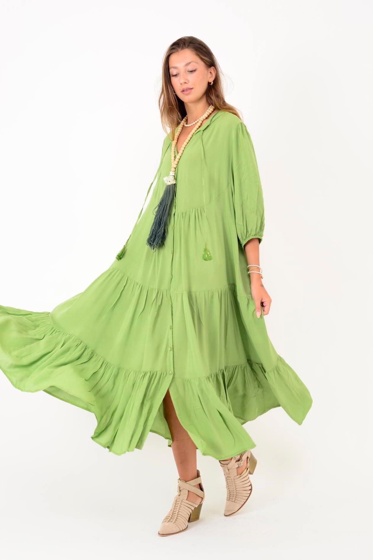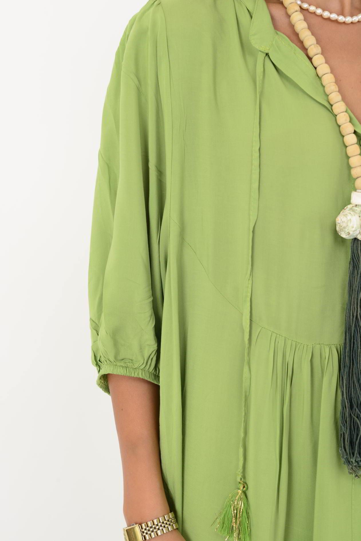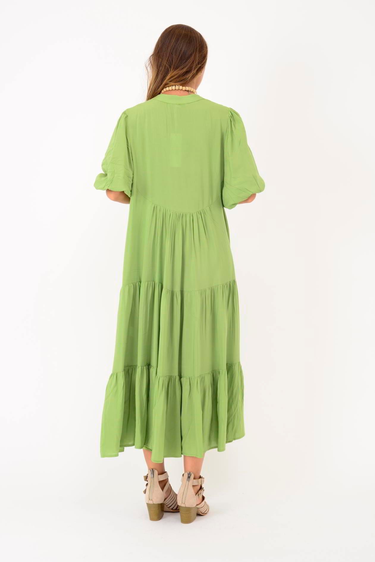 AN10728 CLEMENT BÜZGÜLÜ KOLLU PÜSKÜL DETAYLI VOLANLI ELBİSE (25Y.T.ELB.00456-47)