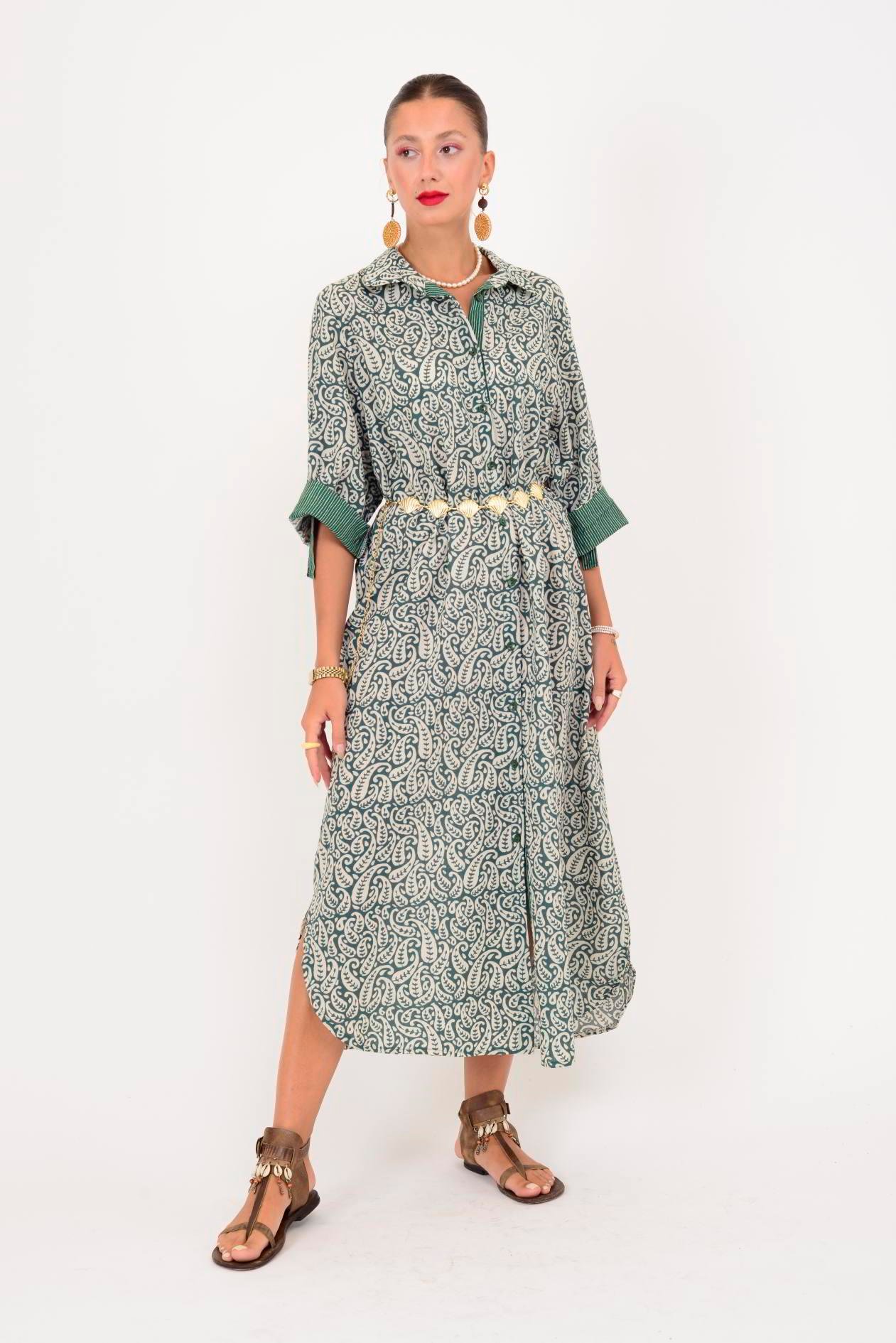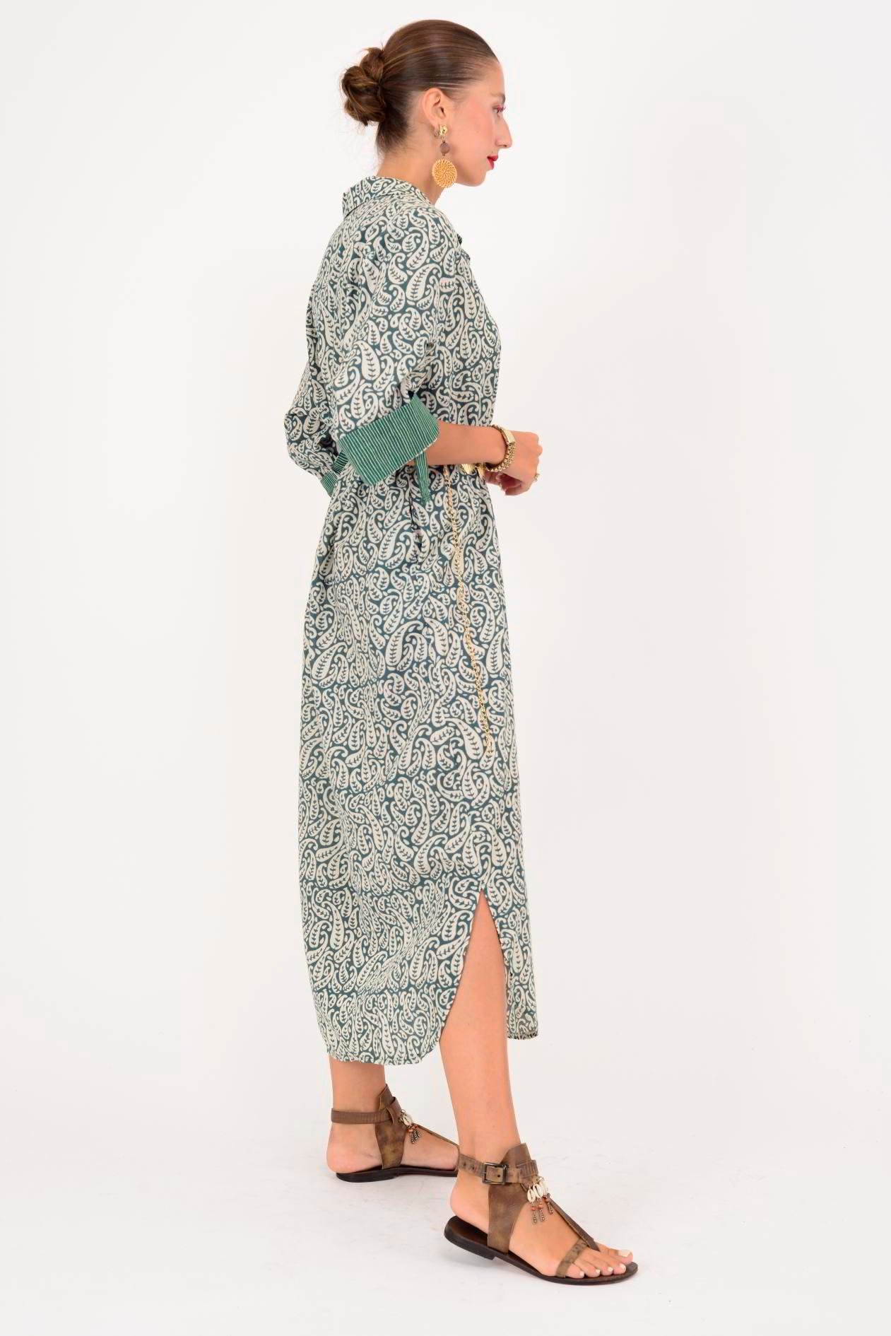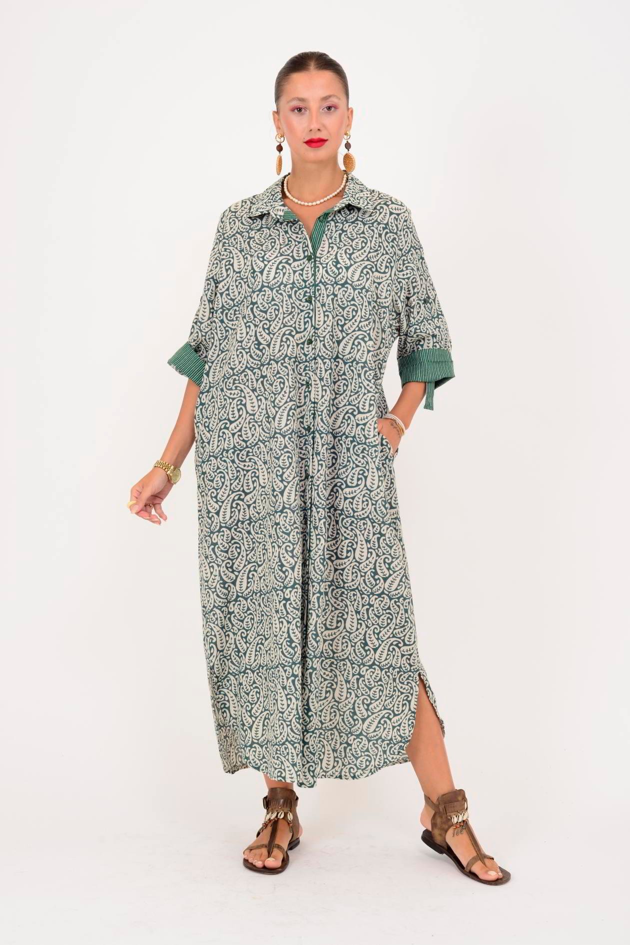 AN113 MARIN GARNİ DETAYLI ŞAL DESEN GÖMLEK ELBİSE (25Y.T.ELB.00445-B2773-V25)