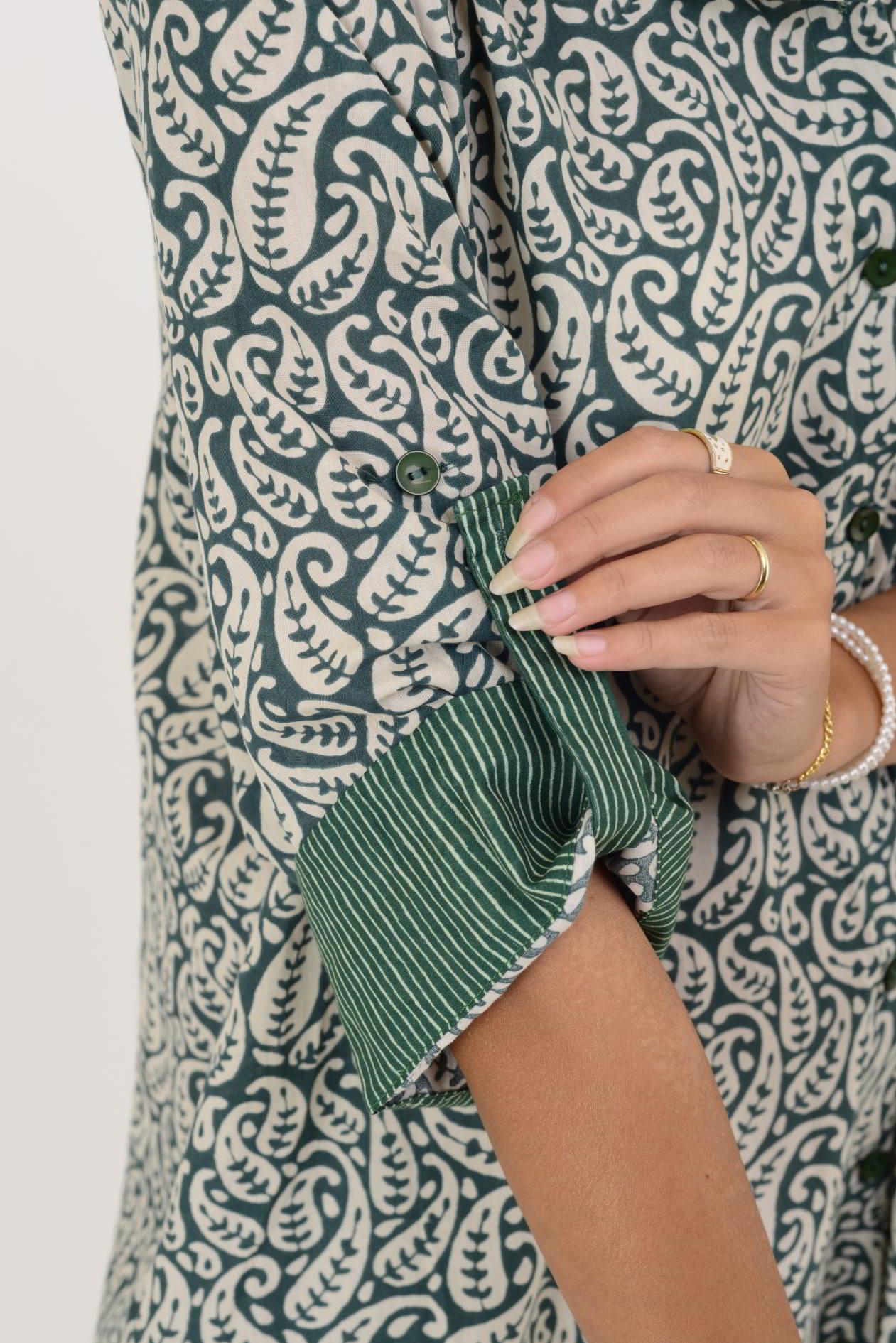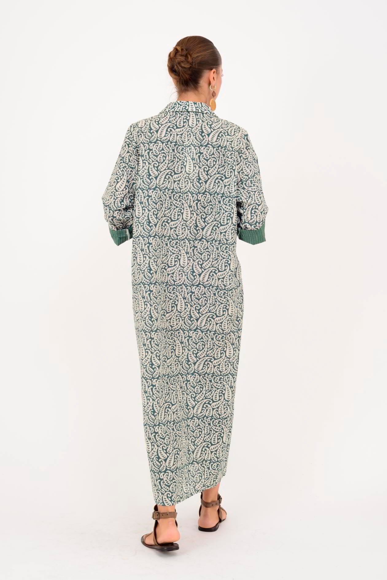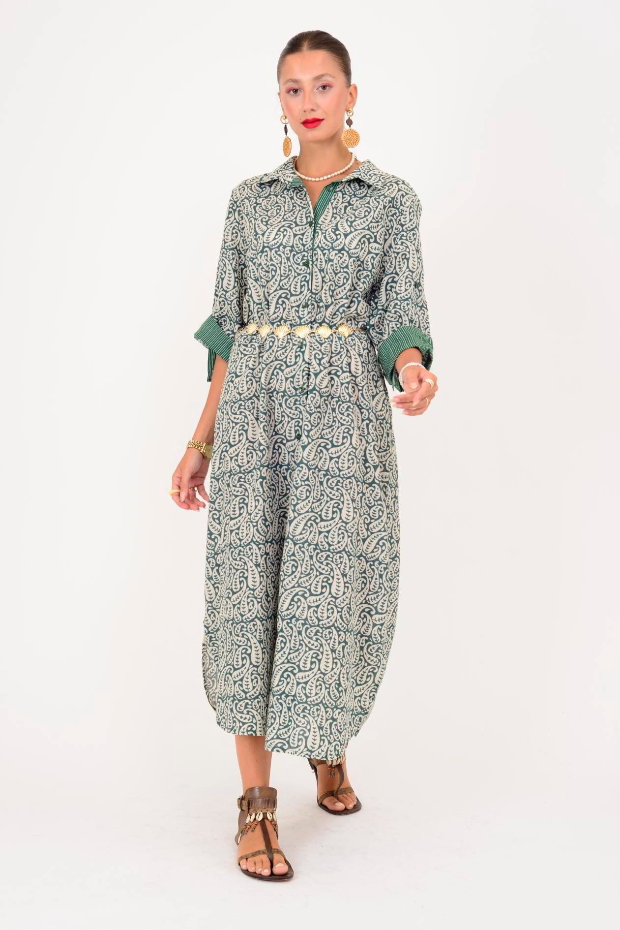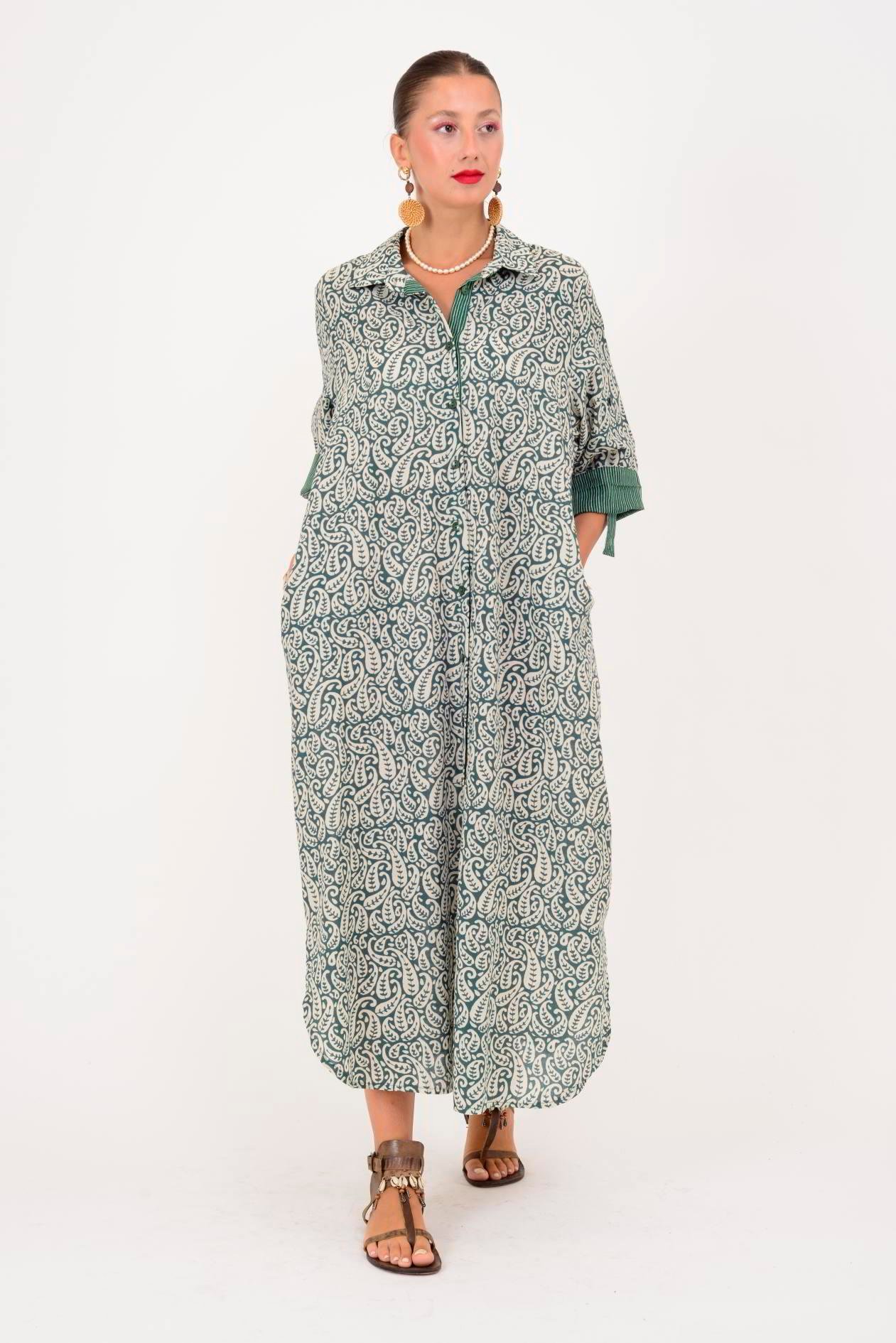 AN113 MARIN GARNİ DETAYLI ŞAL DESEN GÖMLEK ELBİSE (25Y.T.ELB.00445-B2773-V25)