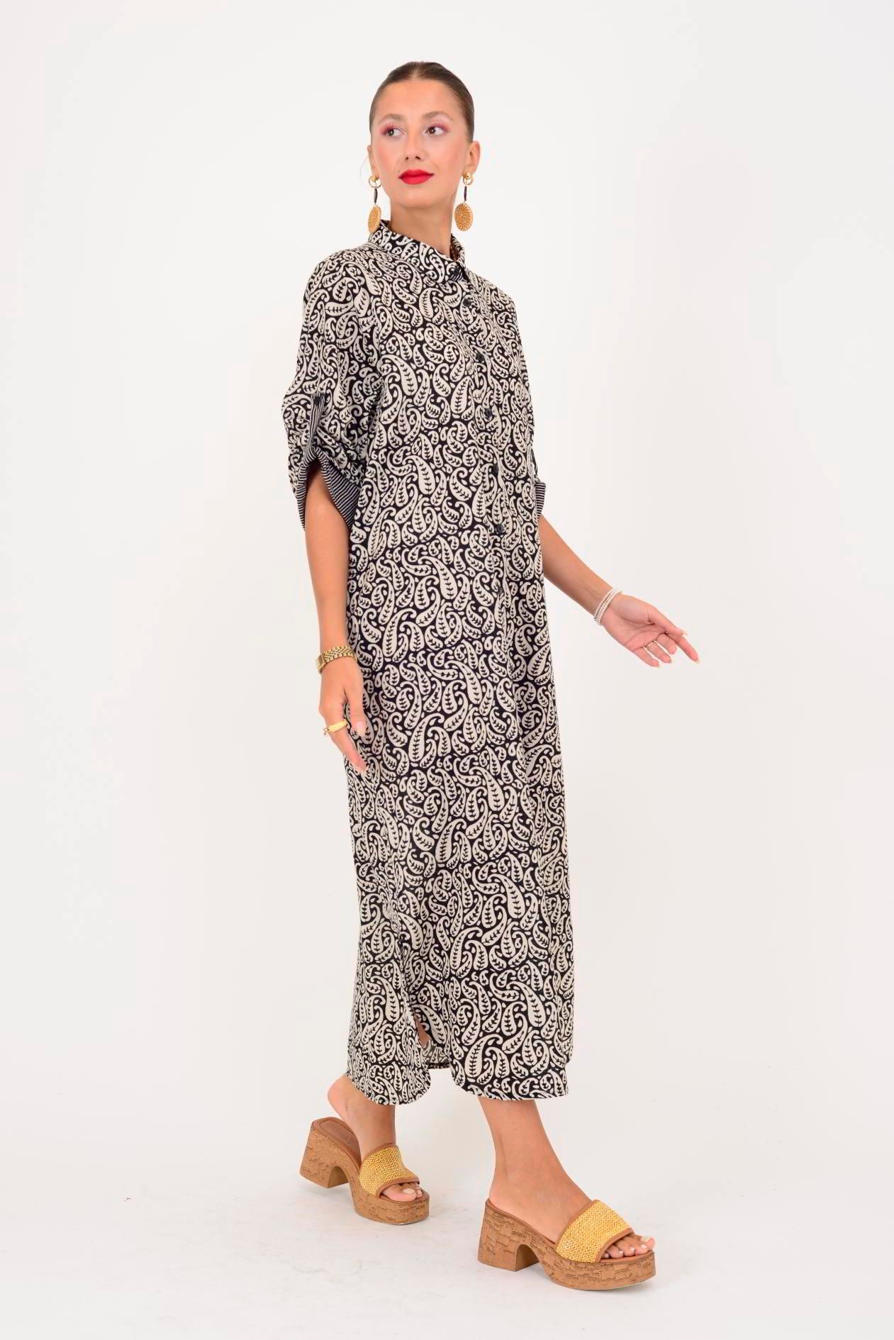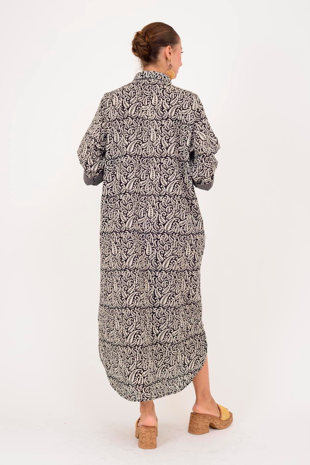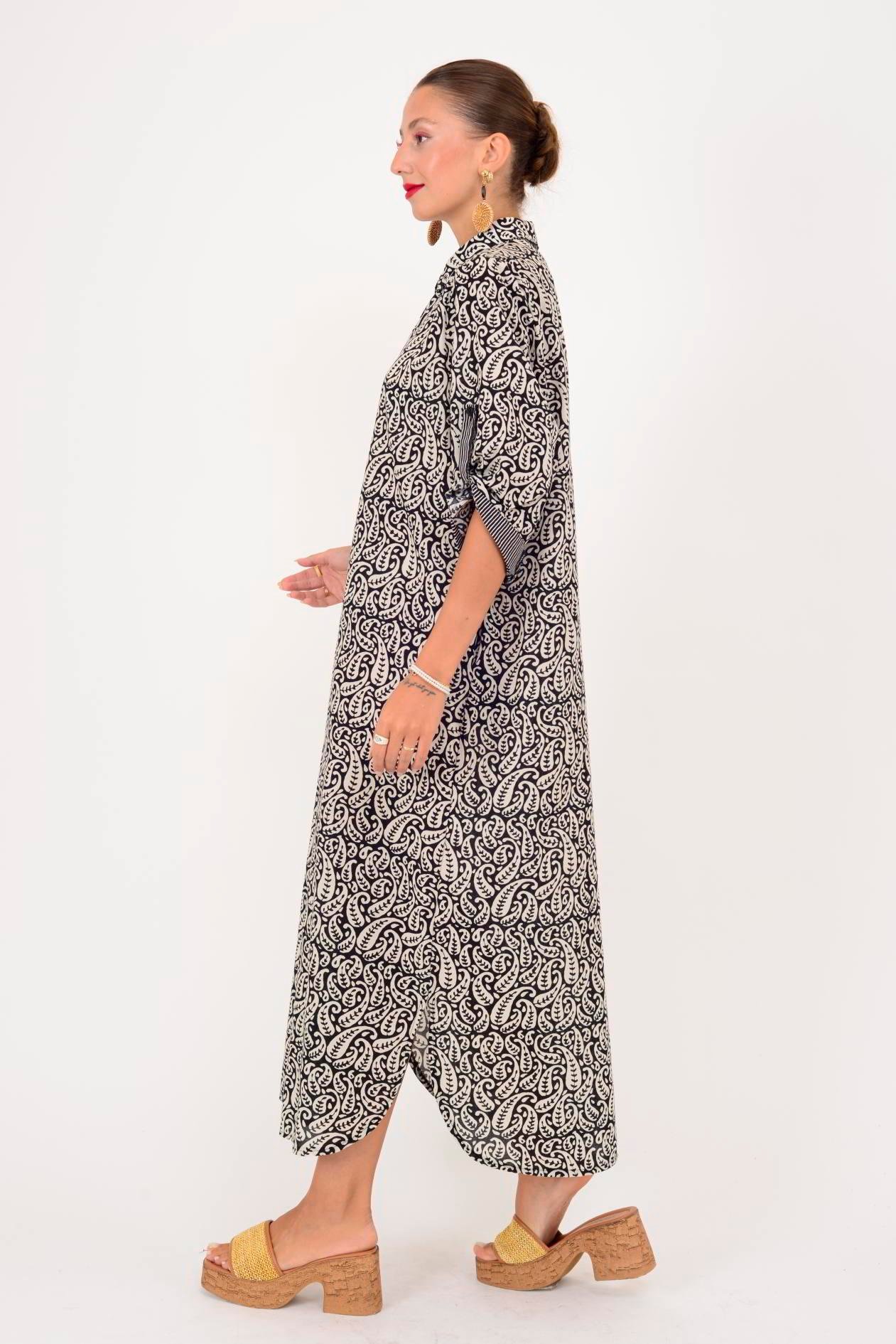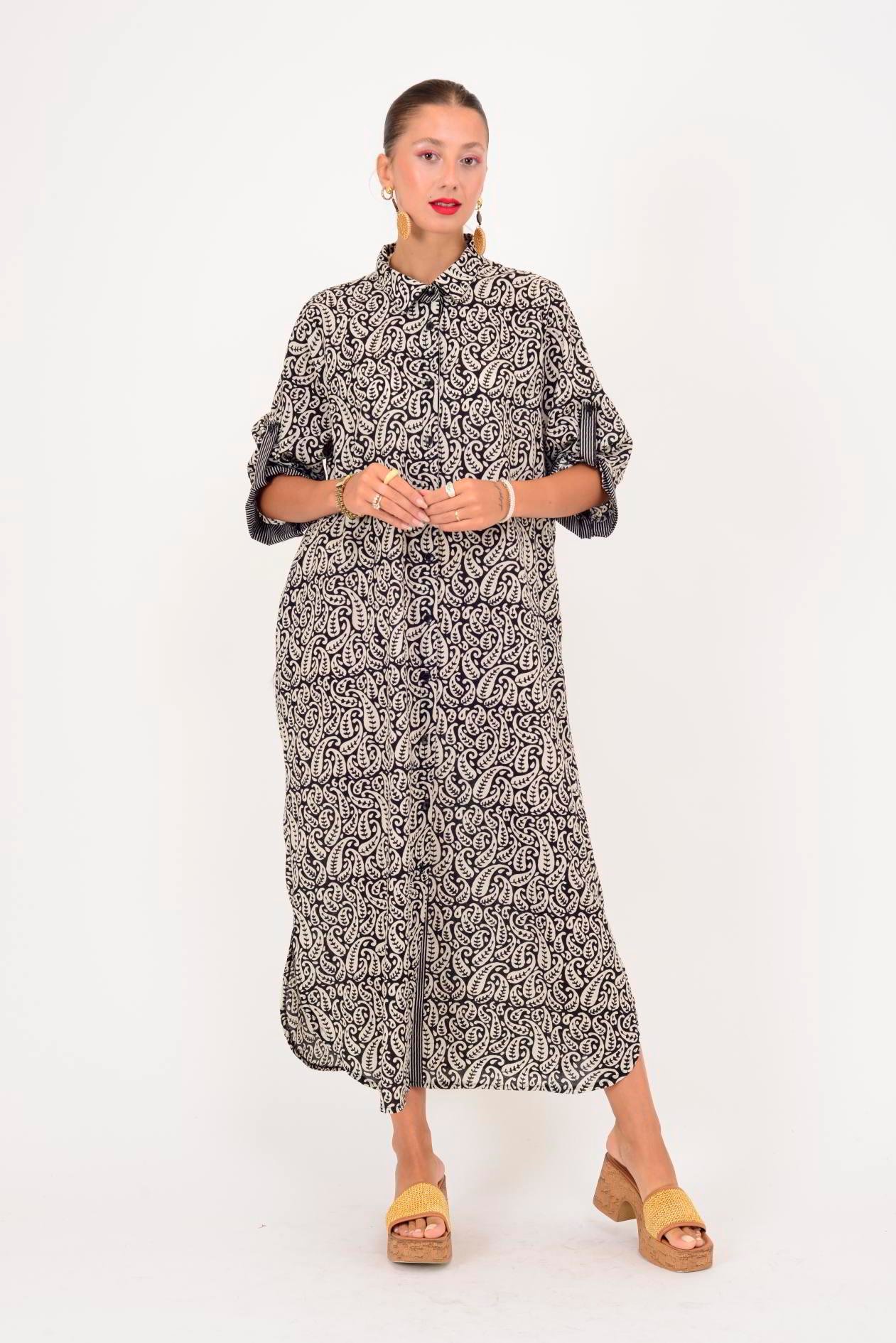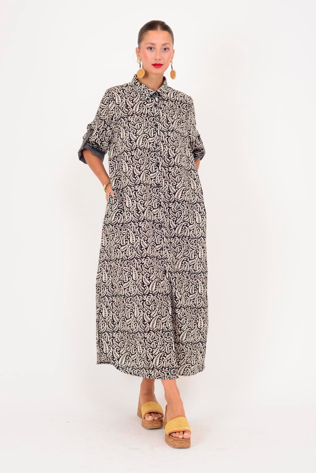 AN113 MARIN GARNİ DETAYLI ŞAL DESEN GÖMLEK ELBİSE (25Y.T.ELB.00445-B2773-V3)